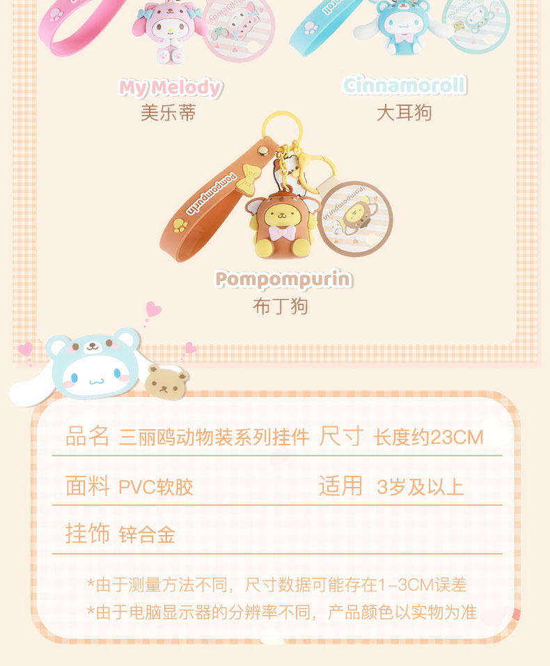三丽鸥 动物装系列挂件 钥匙扣 挂饰