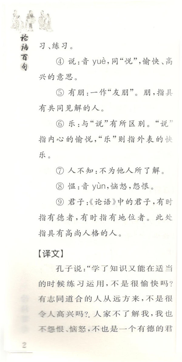 熟读百句之后,你会慢慢体会到阅读《论语》,是一件愉快的事;以孔子为师,与孔子为友,更是一种幸福。且不说半部《论语》治天下,熟读百句《论语》之后,孔子的智慧能护佑你的一生。