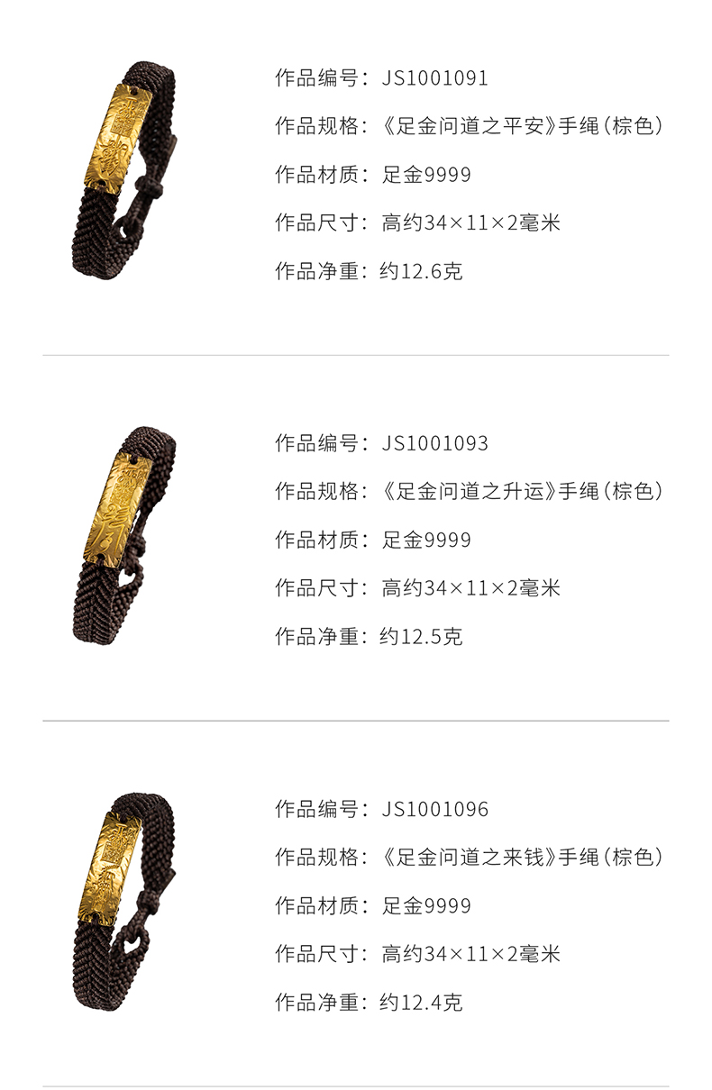 玺匠金铺《足金问道》足金9999 手绳 平安升运来钱 新年礼物