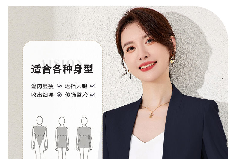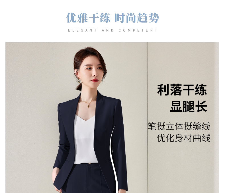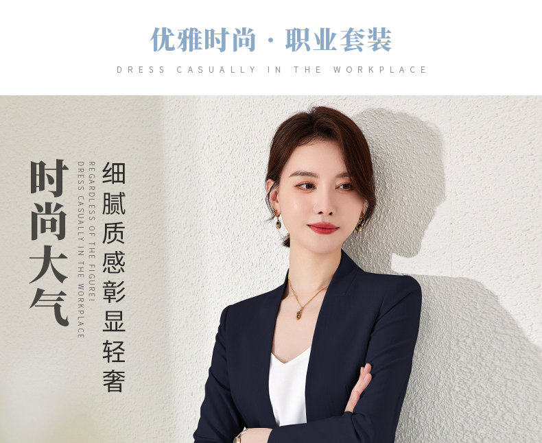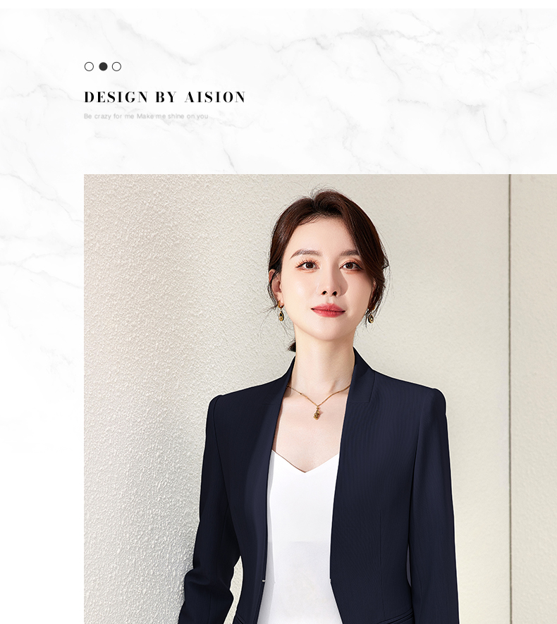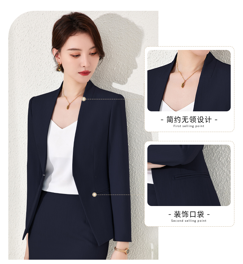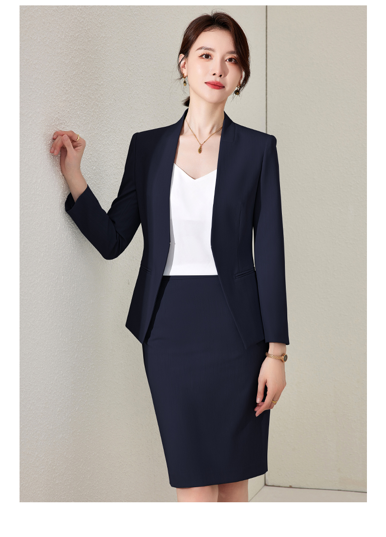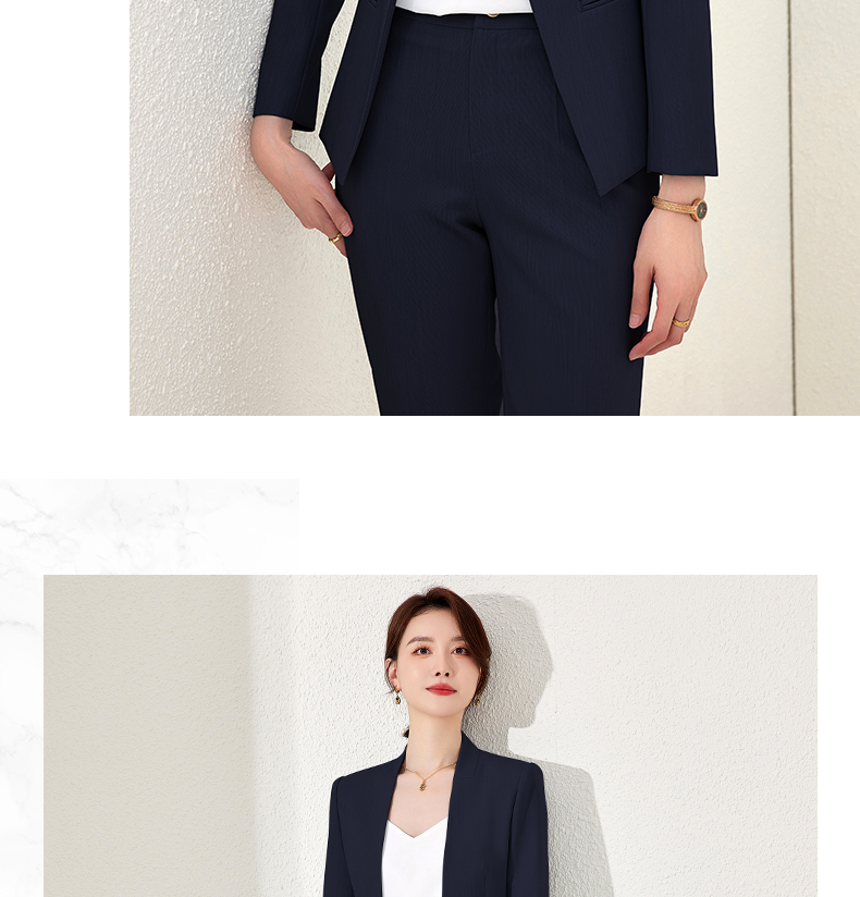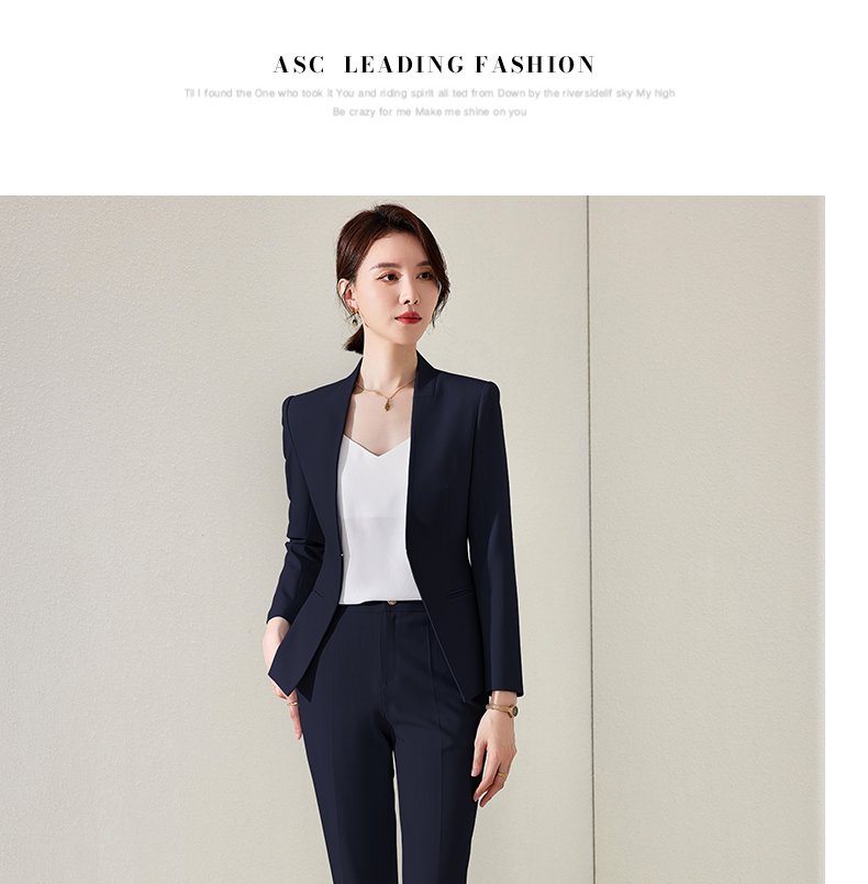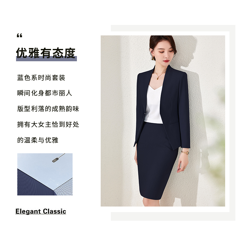 艾尚臣藏青色西装套裙气质女神范高端酒店前台接待职业工作服套装