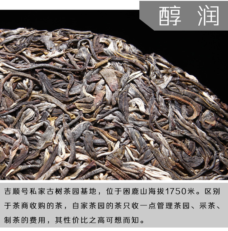 超值口粮茶-吉顺号2017年困鹿山私家古茶园 乌金普洱生茶357g