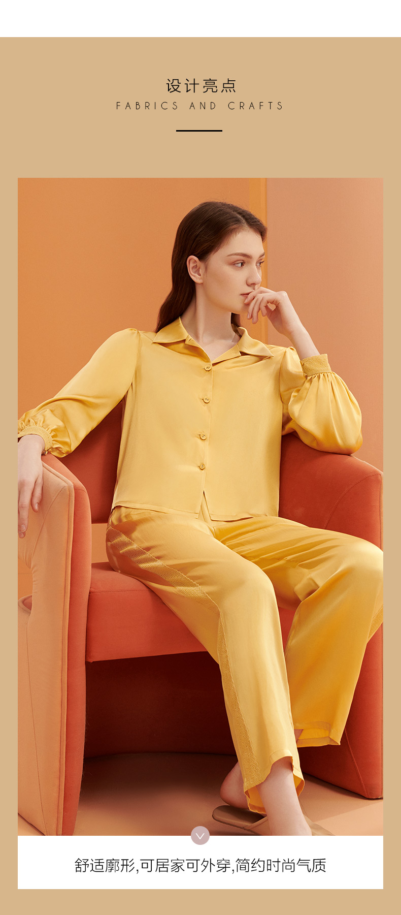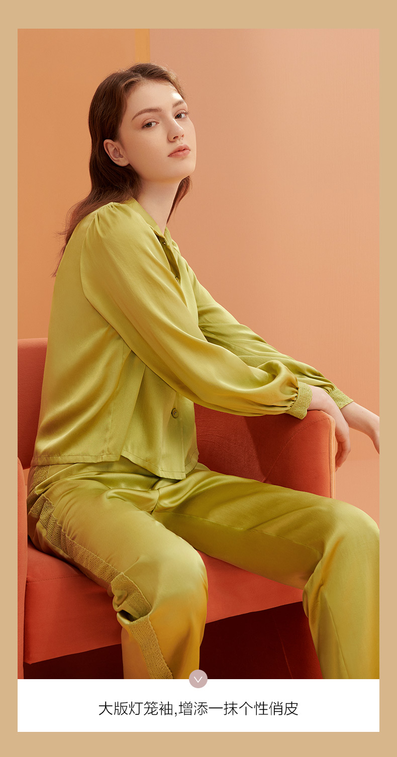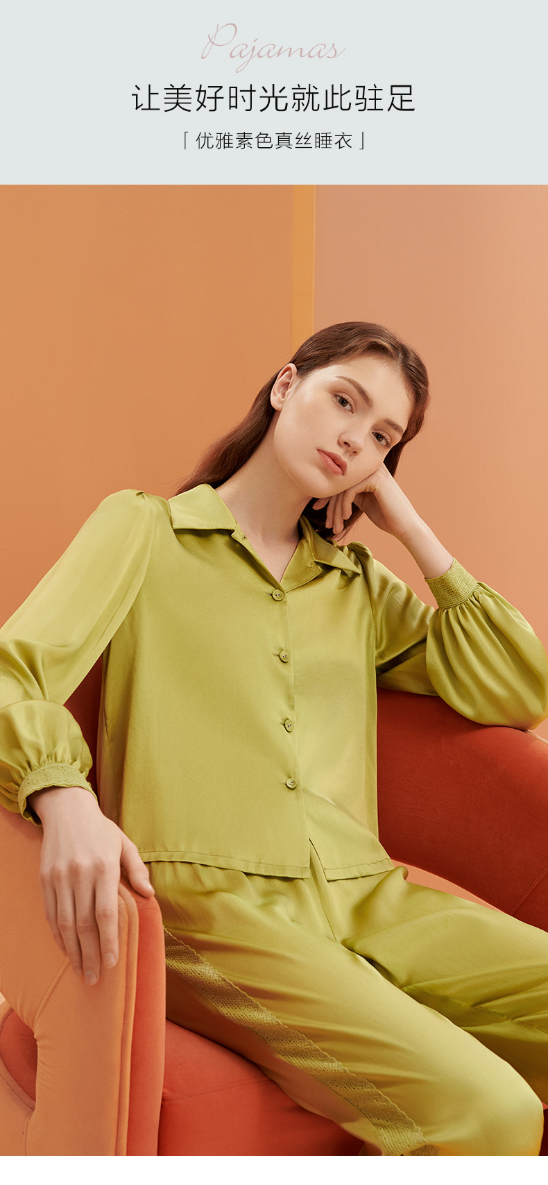 金三塔100%桑蚕丝素色灯笼袖两件套真丝睡衣家居服 YSFBC211