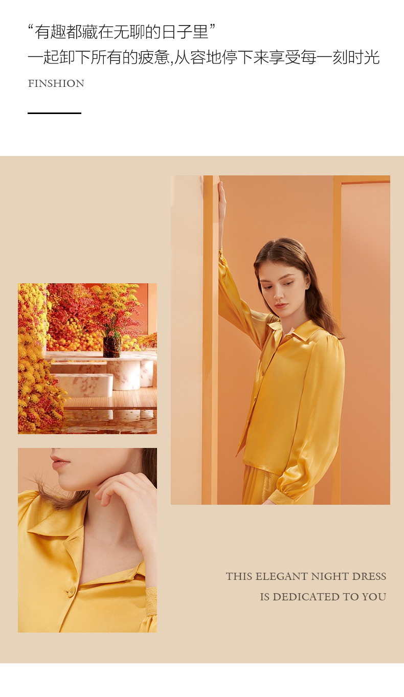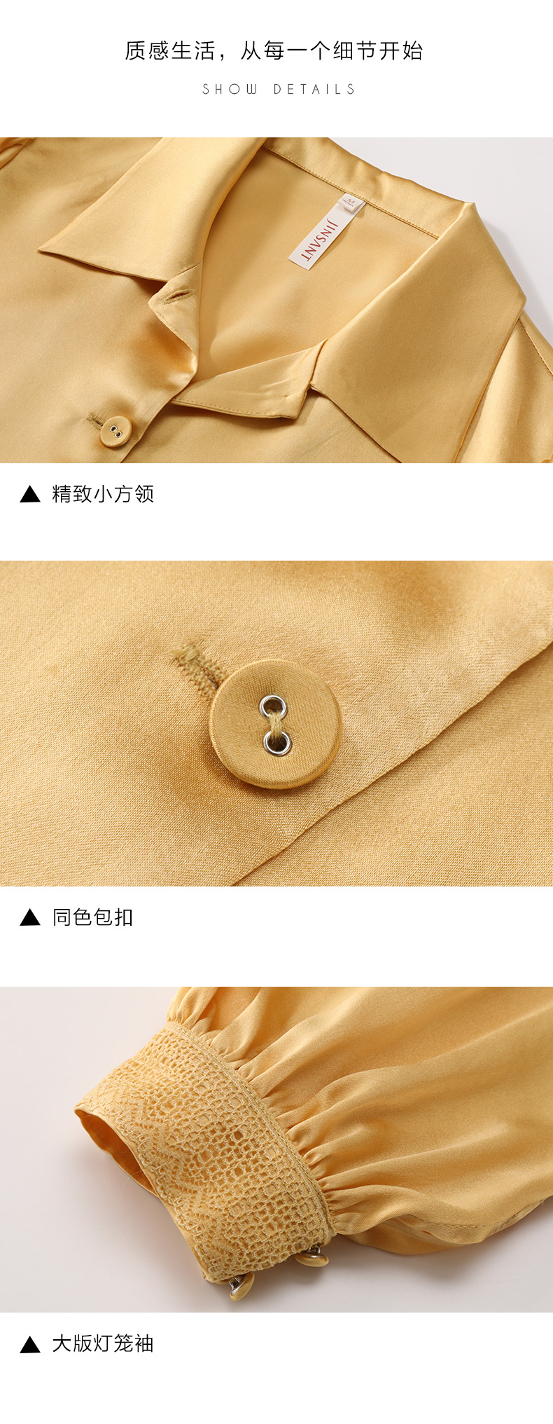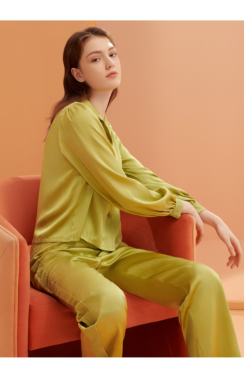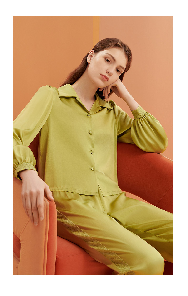 金三塔100%桑蚕丝素色灯笼袖两件套真丝睡衣家居服 YSFBC211