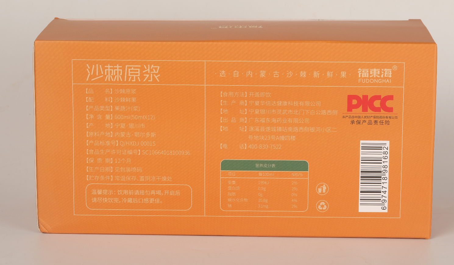 福东海 沙棘原浆600ml(50ml *12瓶 )/盒 满满VC鲜榨汁 内蒙源产沙棘 开盖即喝