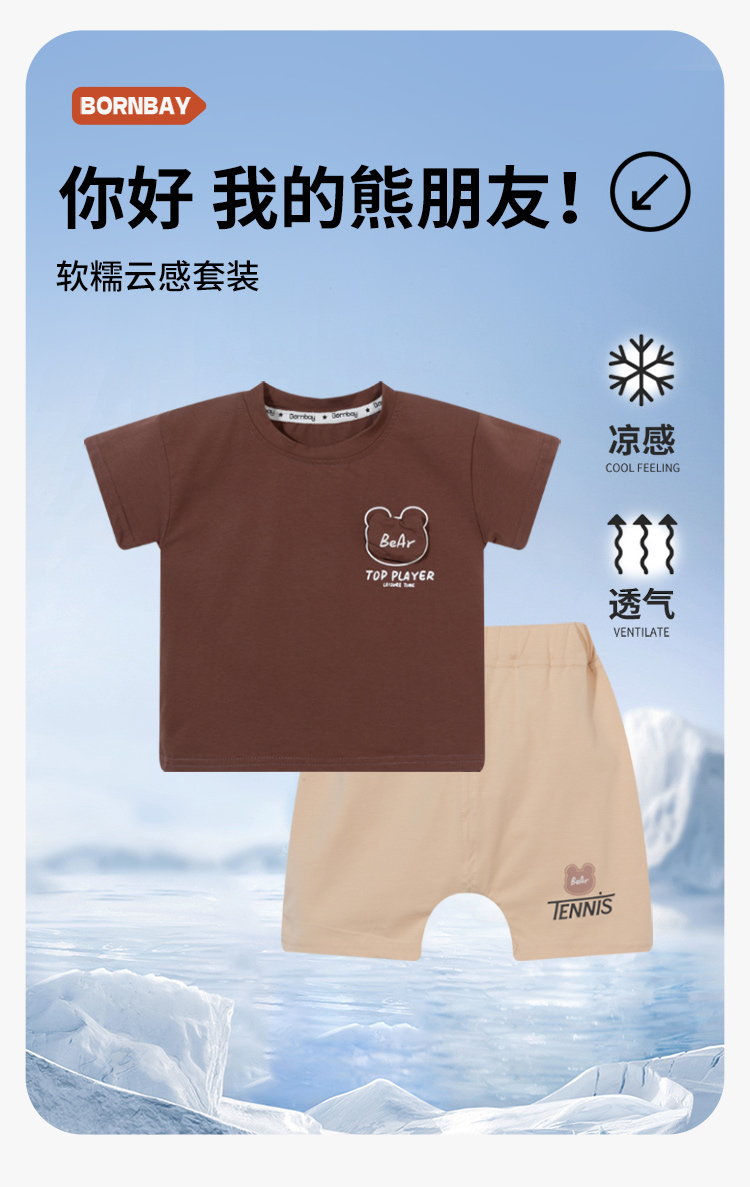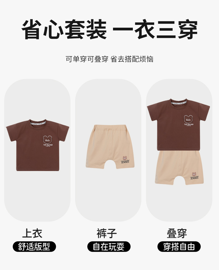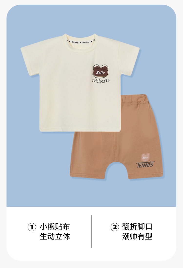 贝贝怡男童透气短袖短裤套装ZB2DT076