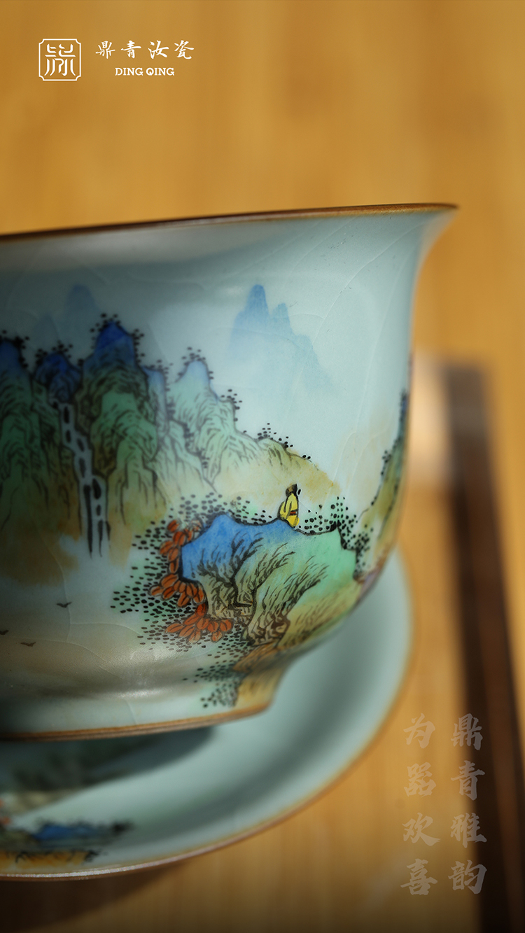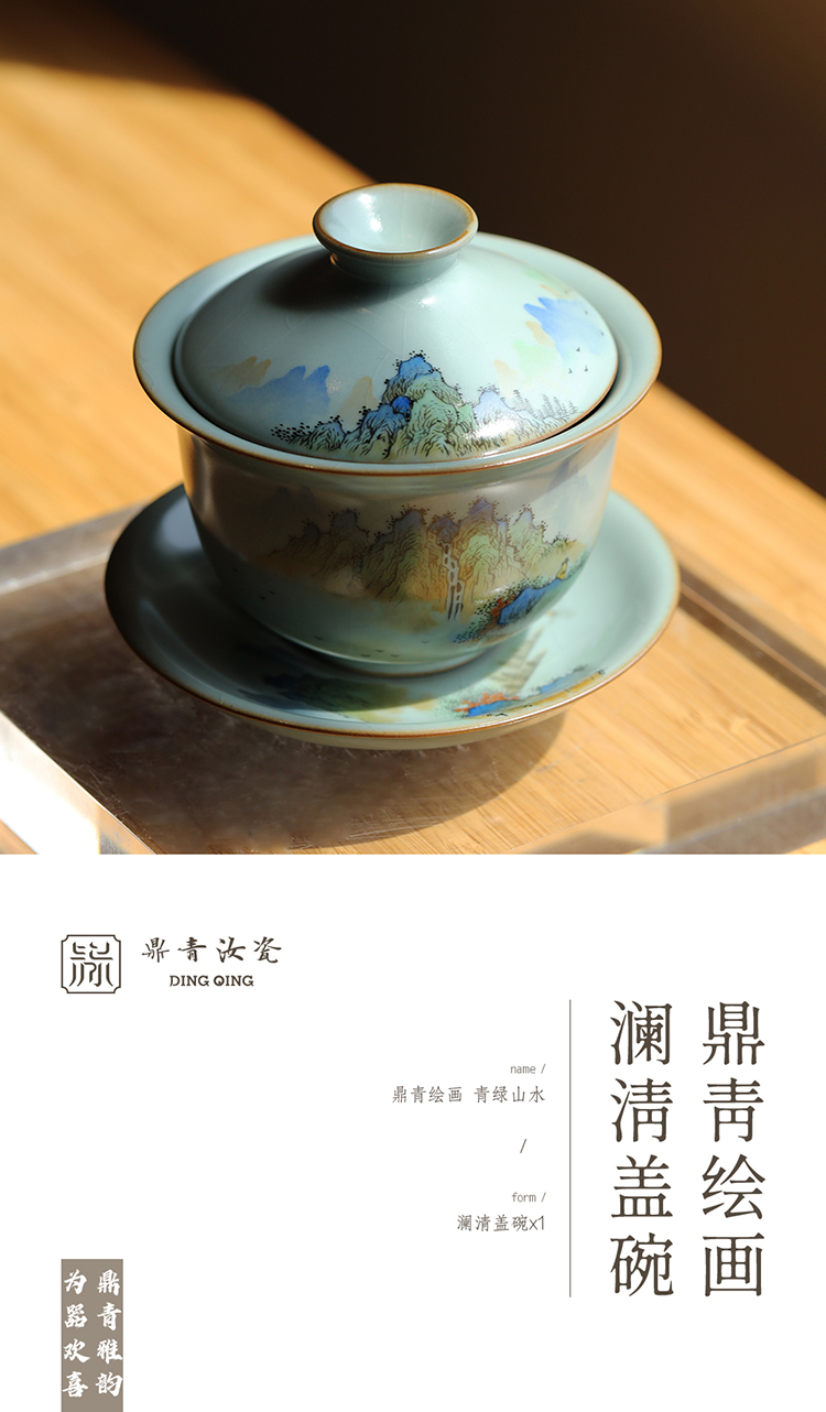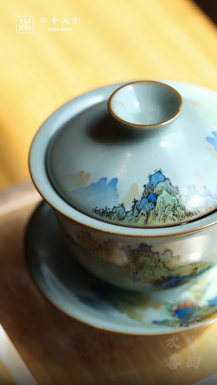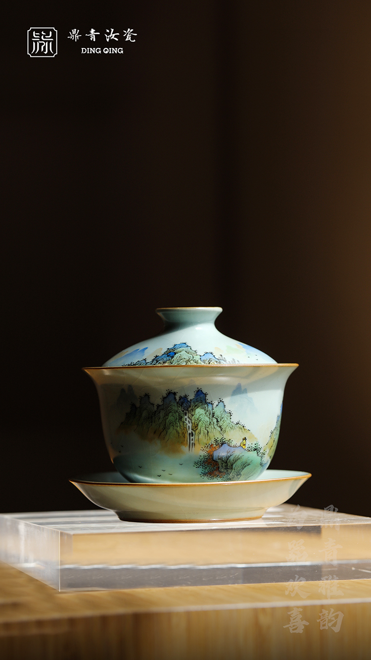 问鼎鼎青系列澜清盖碗(青绿山水)(缺货)