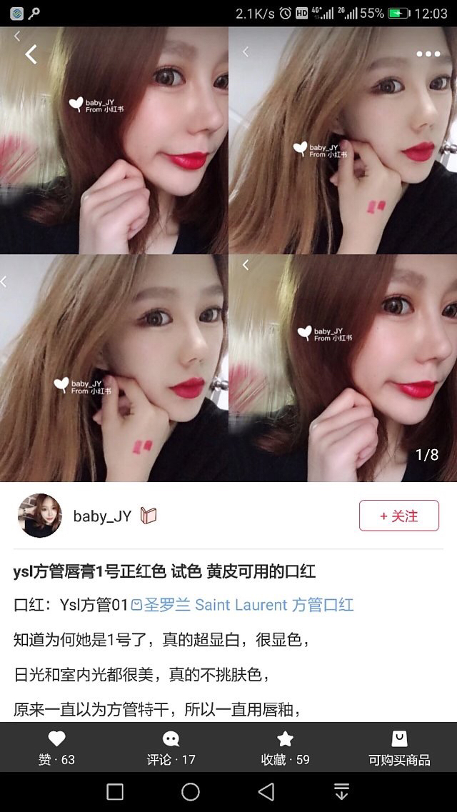 Ysl方管1号在正红色口红界名声非常响,是圣罗兰先生创造出的第一支口红,所以色号命名为1号!用到它的场合也可以根据薄涂或者厚涂来决定它的妆效,薄涂它的话是有点偏玫红调的红色,厚涂的是非常浓郁的正红色,黄皮白皮涂上它气色都会显得很好~女神必备的一款唇膏,艳压全场