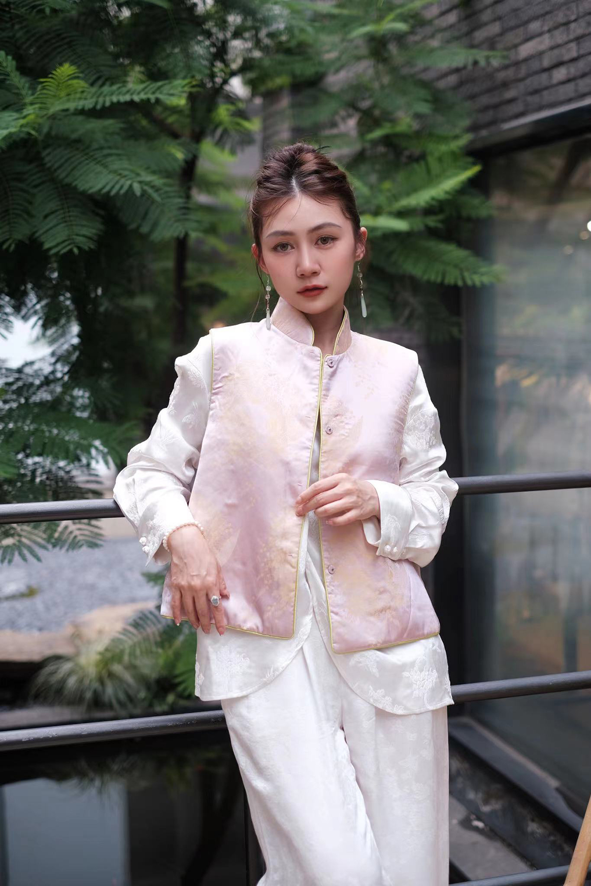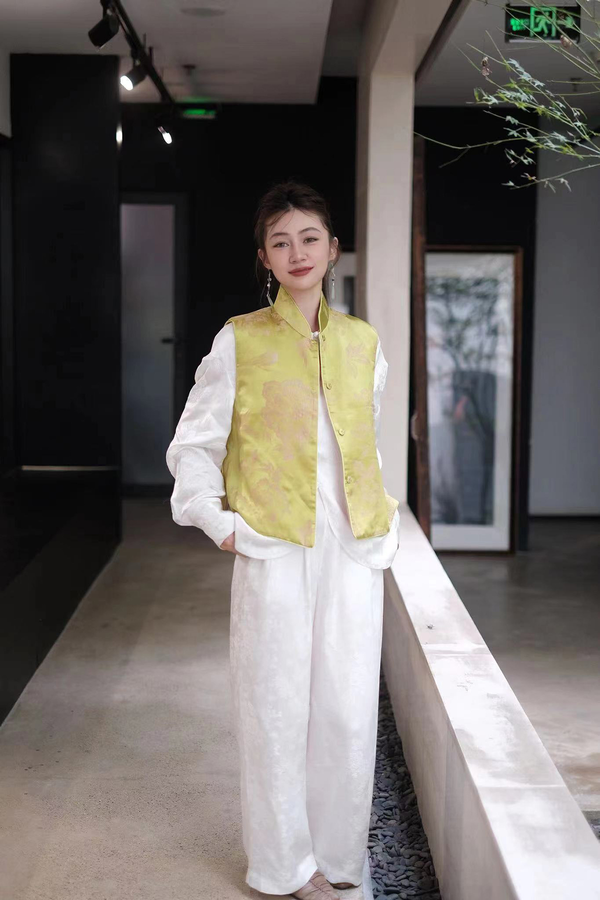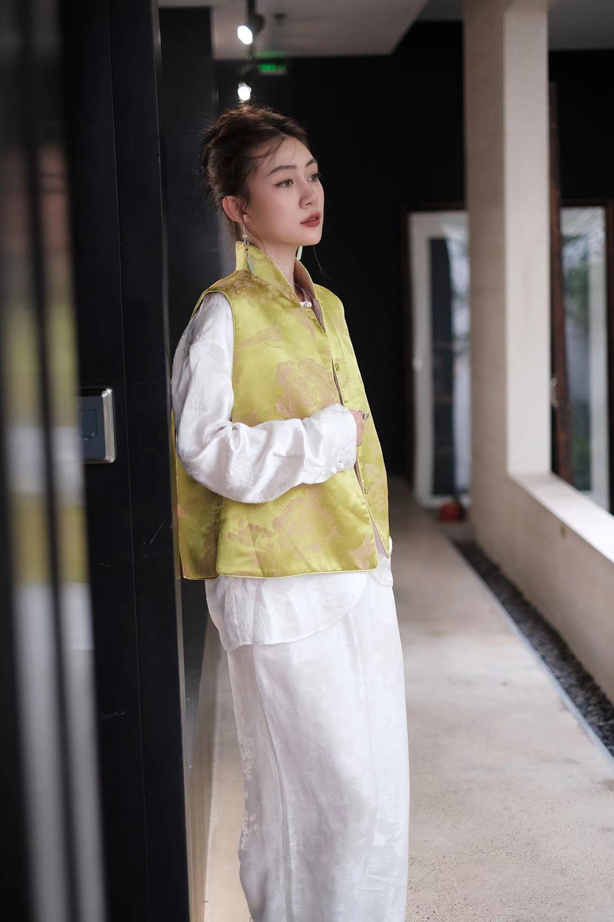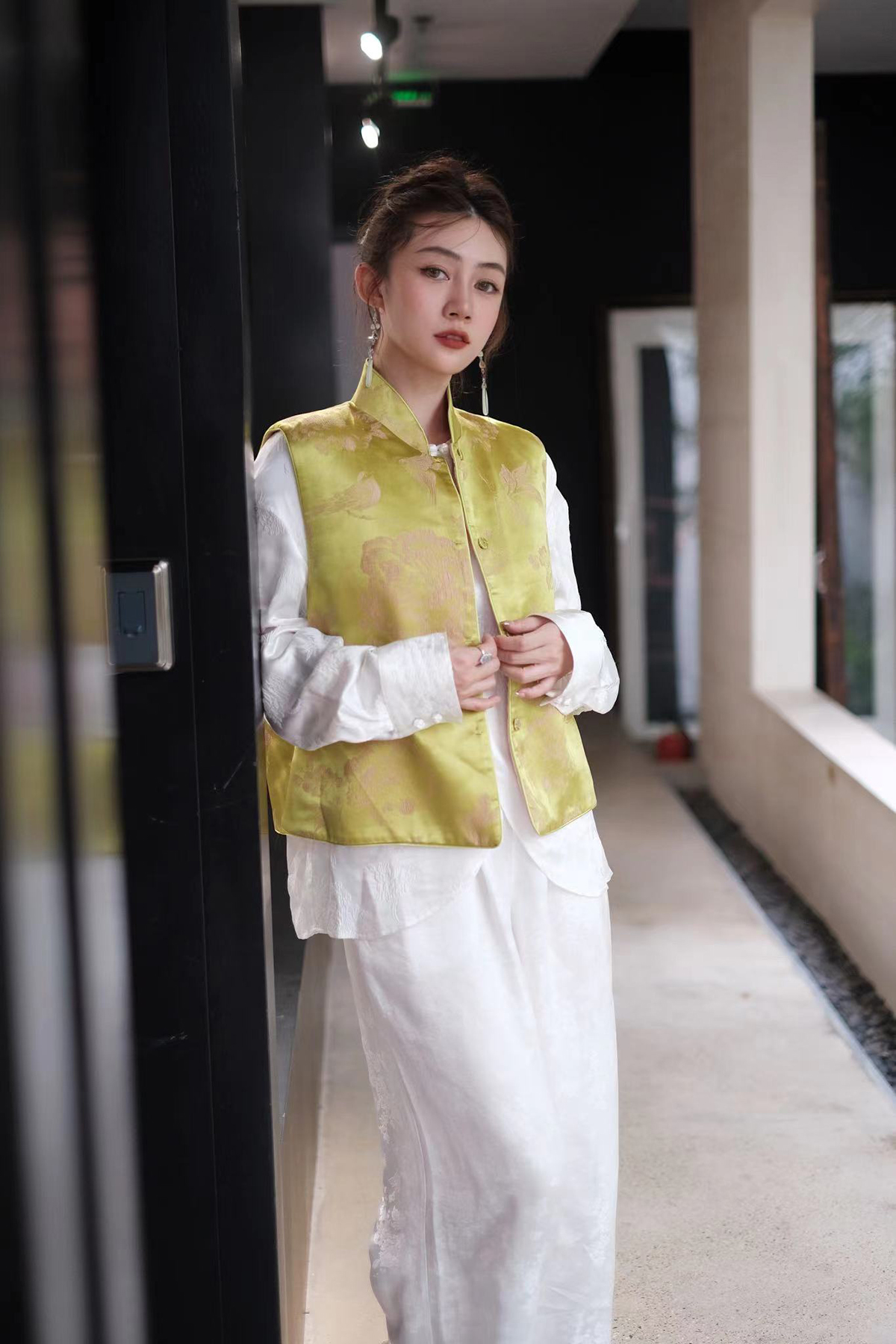 盛唐牡丹 |芙蓉翠鸟真丝提花双面穿马甲(夹棉)