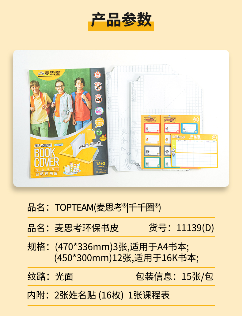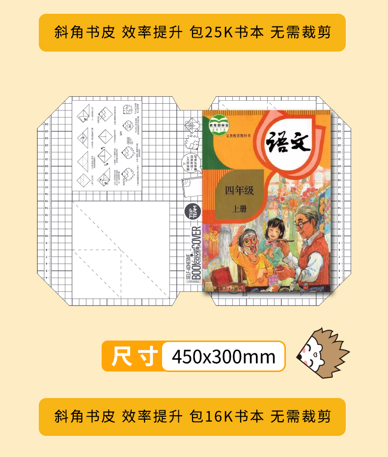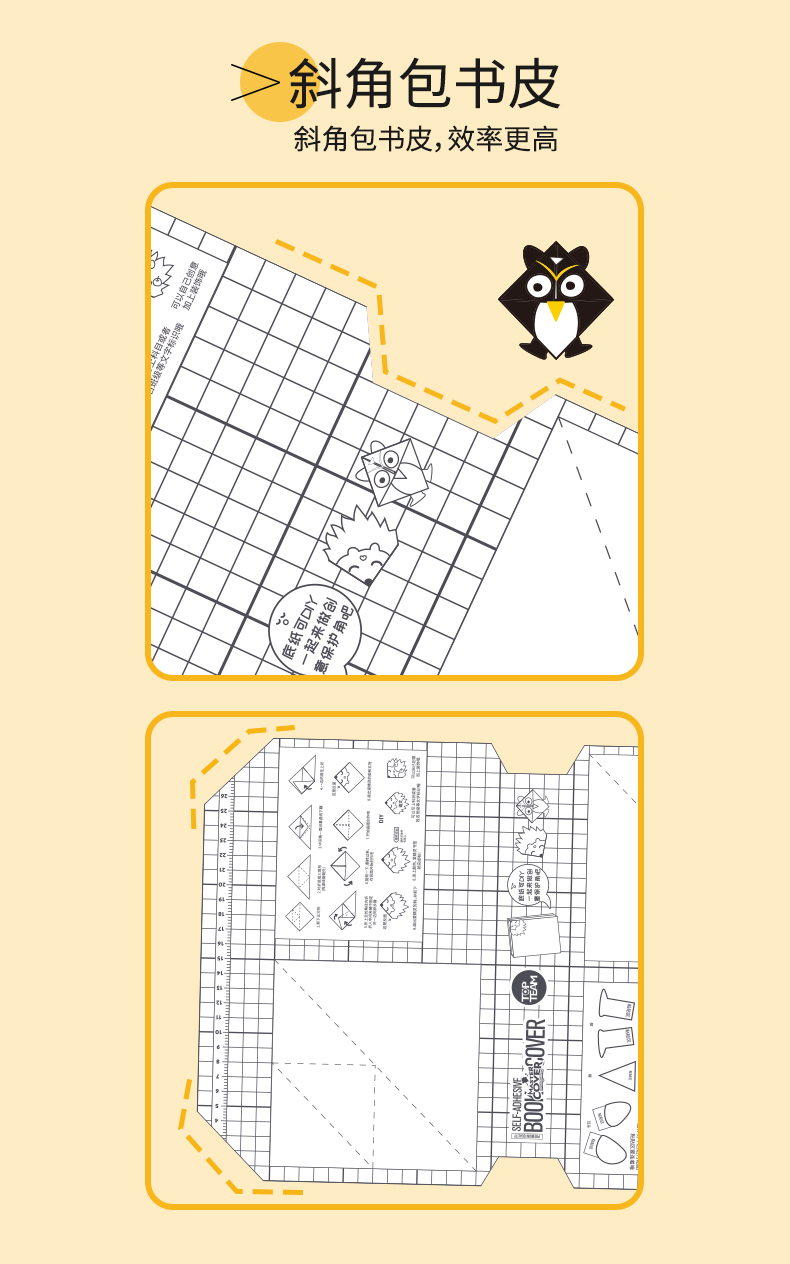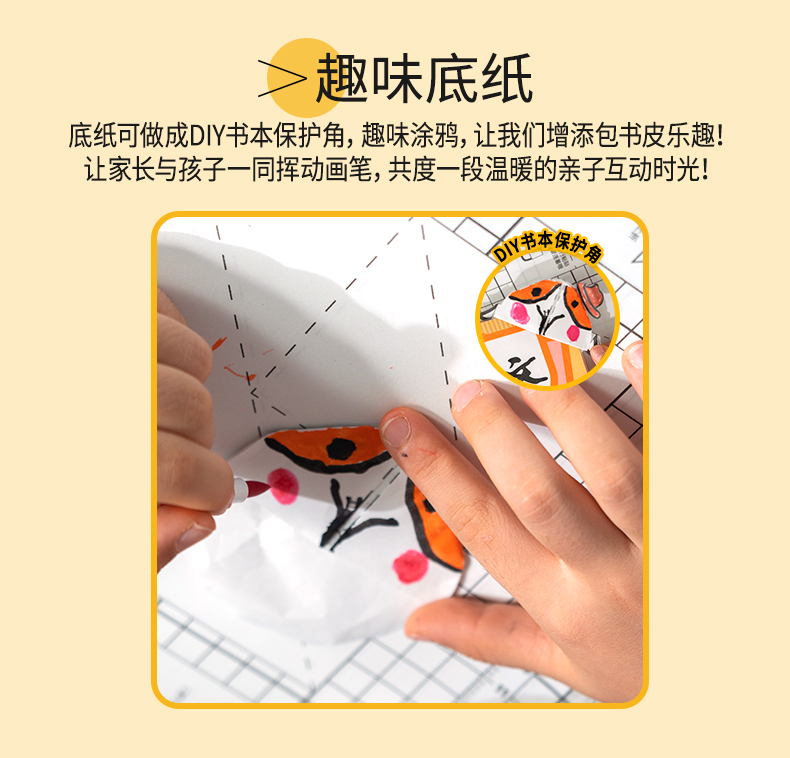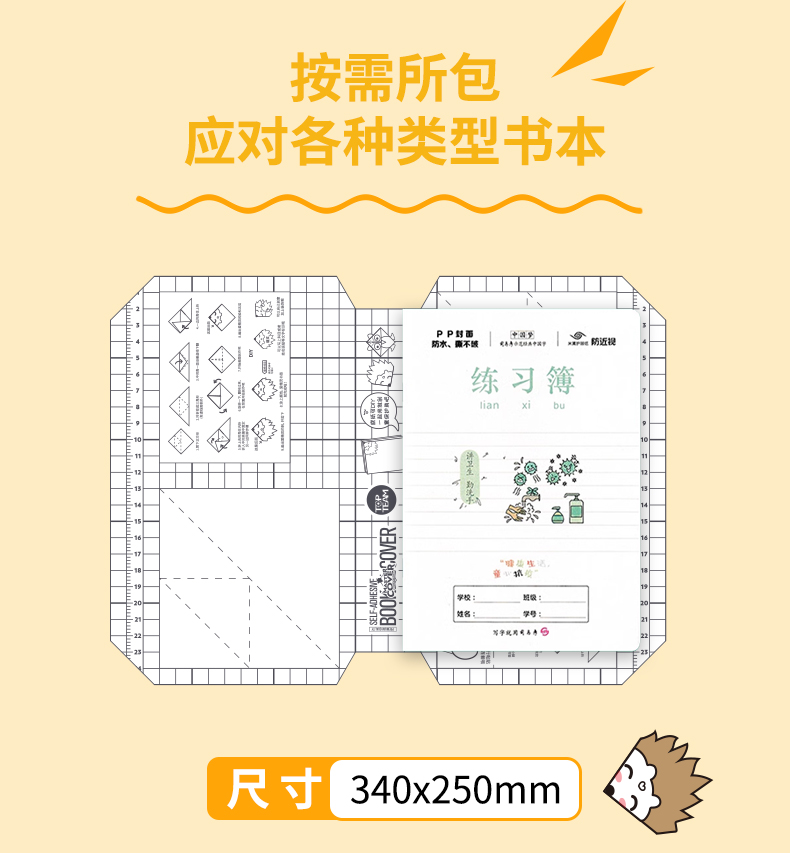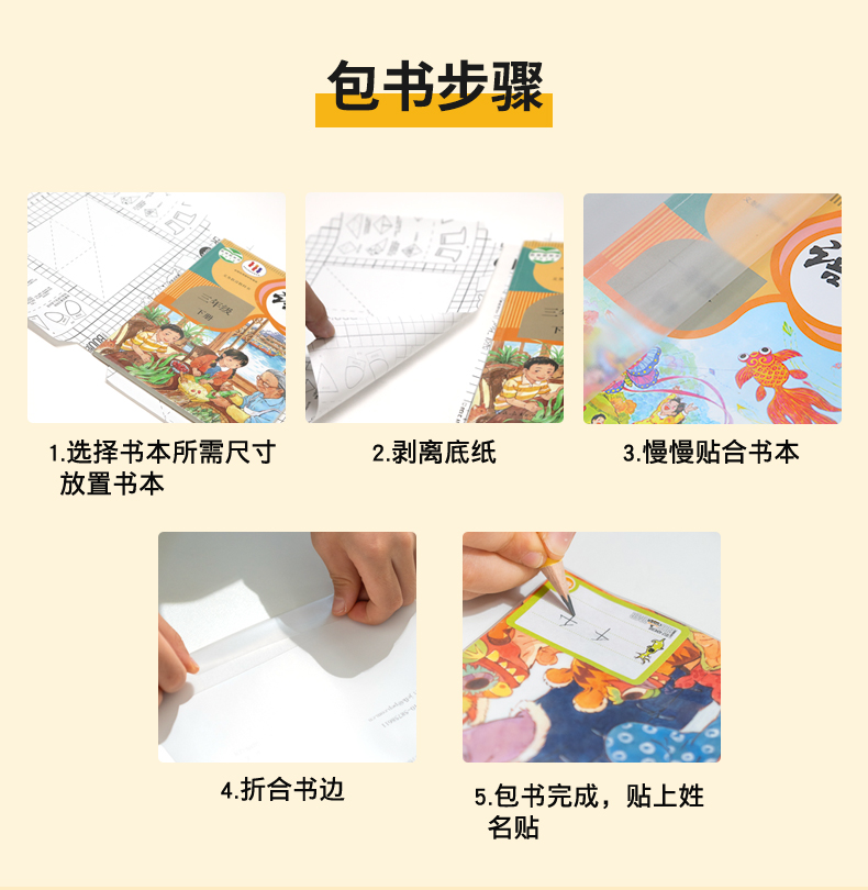 5.包书更快捷:开张平整,无需尺量,操作简单方便,让孩子们轻松养成爱书习惯。