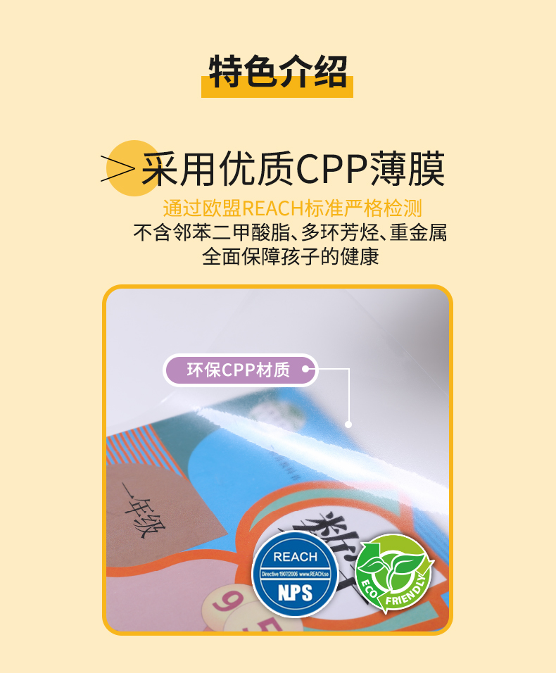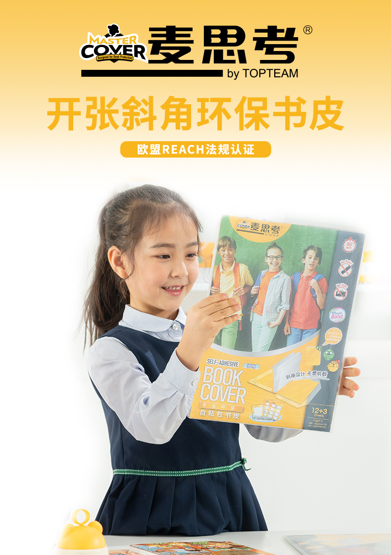 采用符合欧盟和国家标准的环保特殊新材料, 柔软亲肤,5秒钟包好一本书。