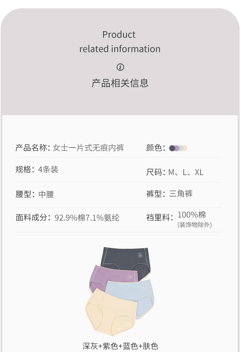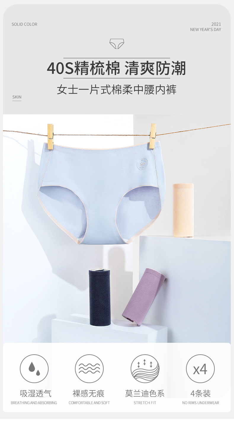 雅黛丽女士内裤2021年新款棉质中腰三角裤舒适透气无痕短裤女裤头