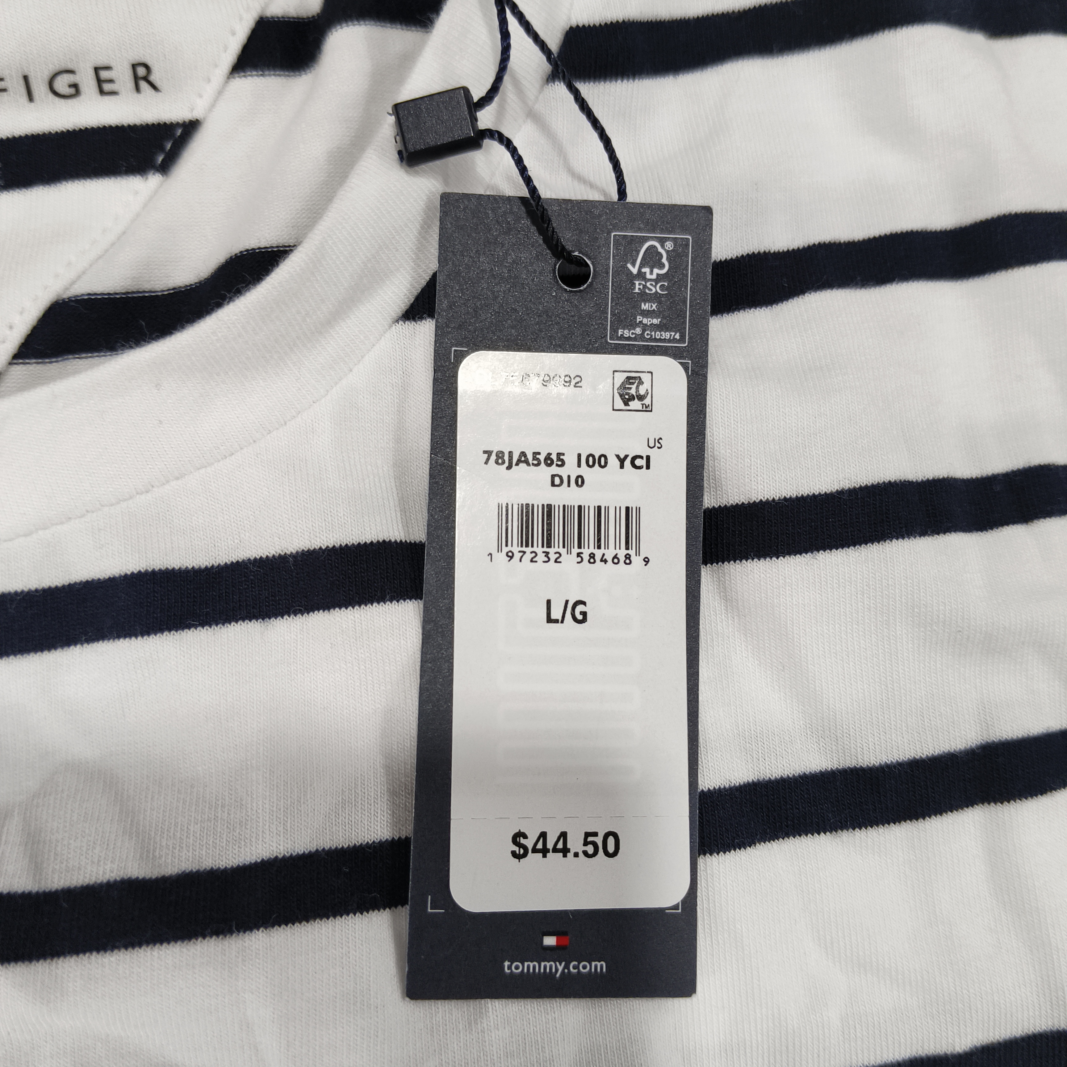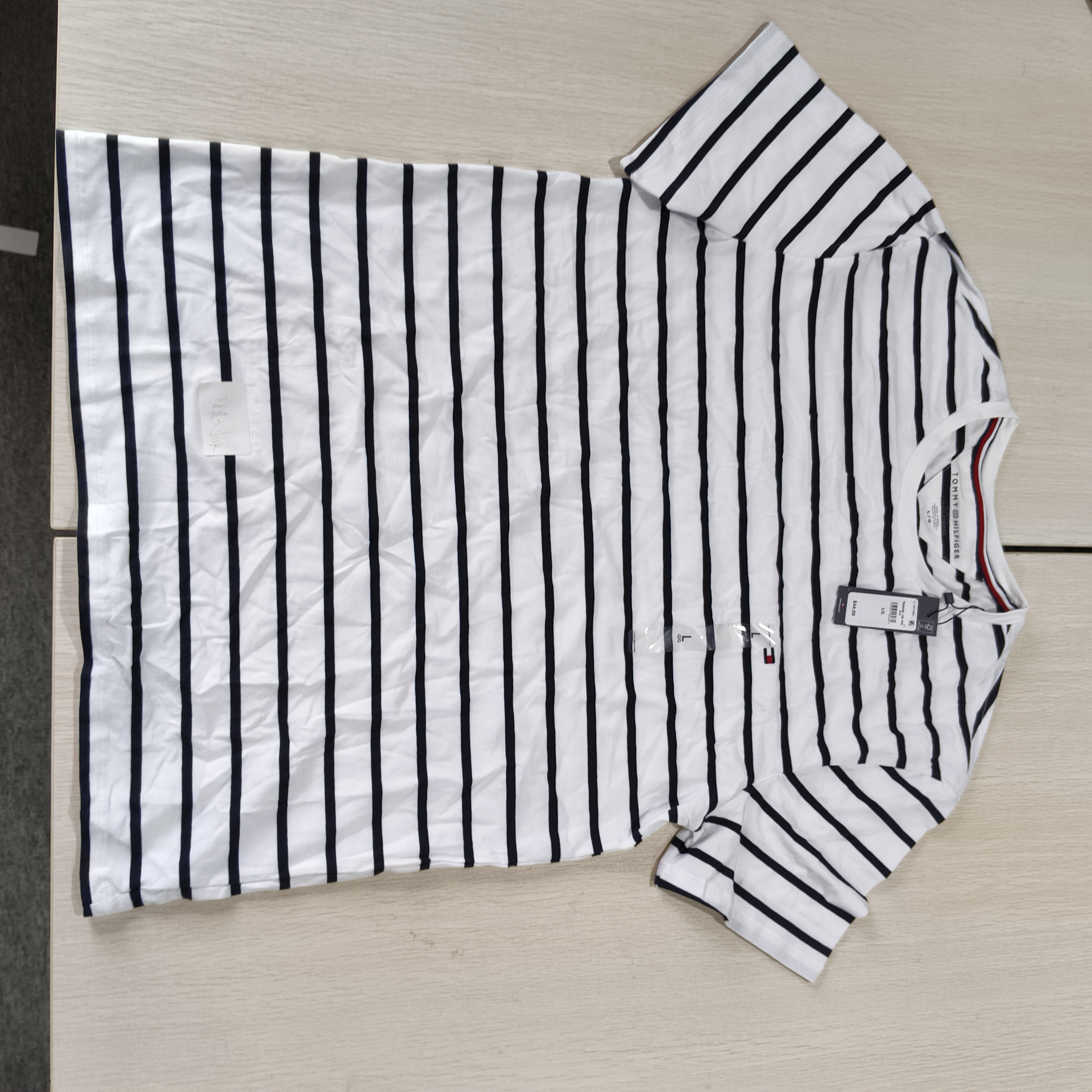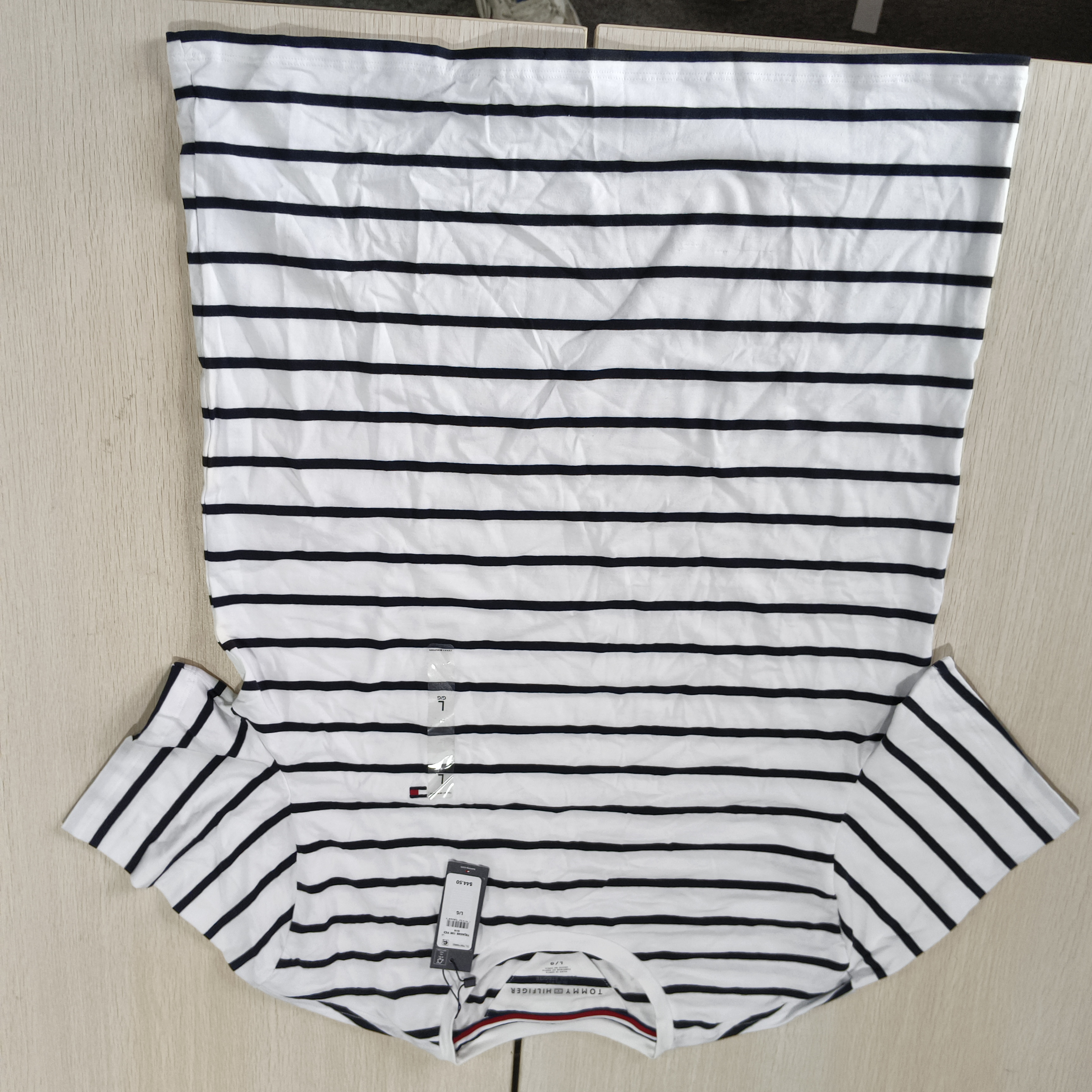 瑕疵Tommy Hilfiger/汤米 男士休闲条纹刺绣小标圆领修身短袖T恤