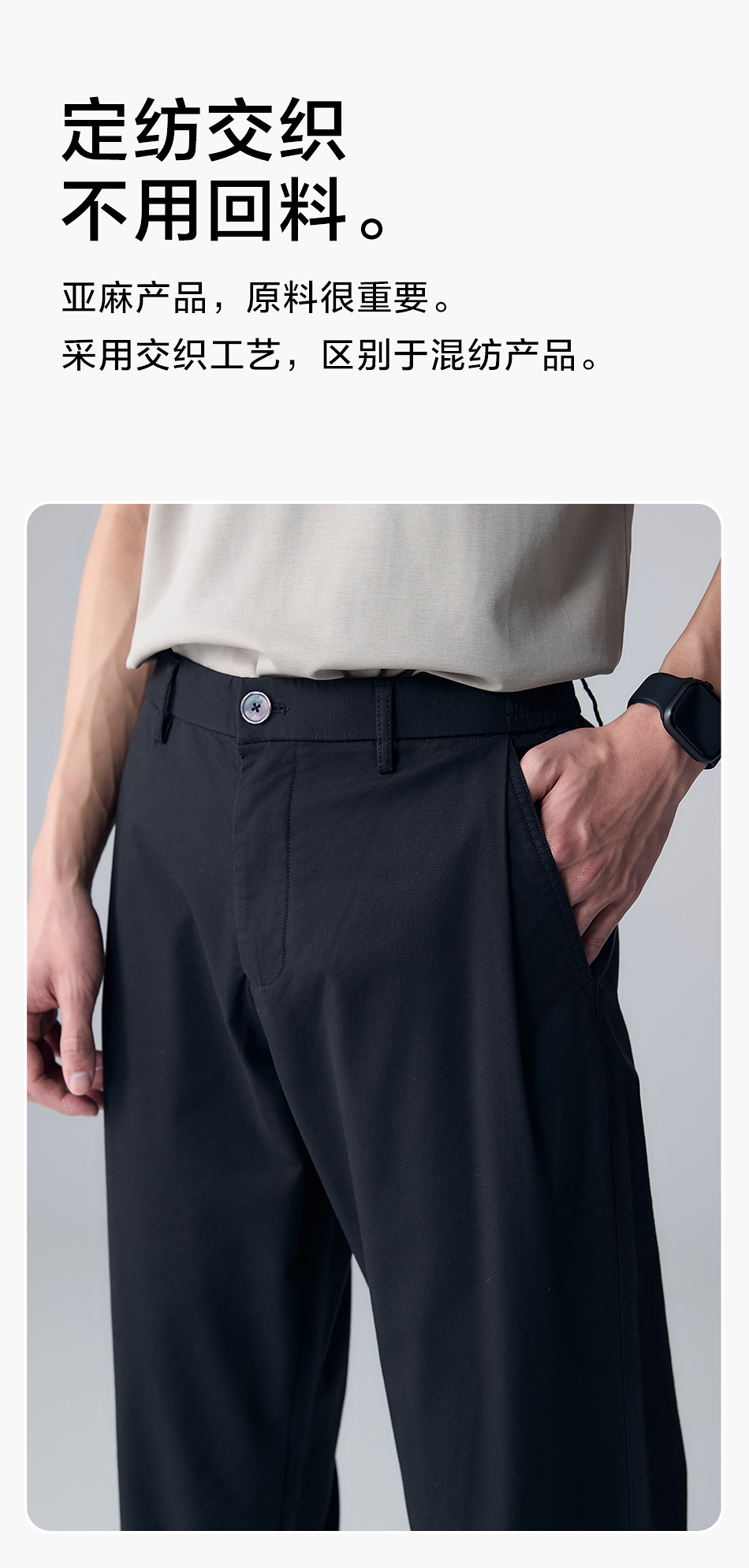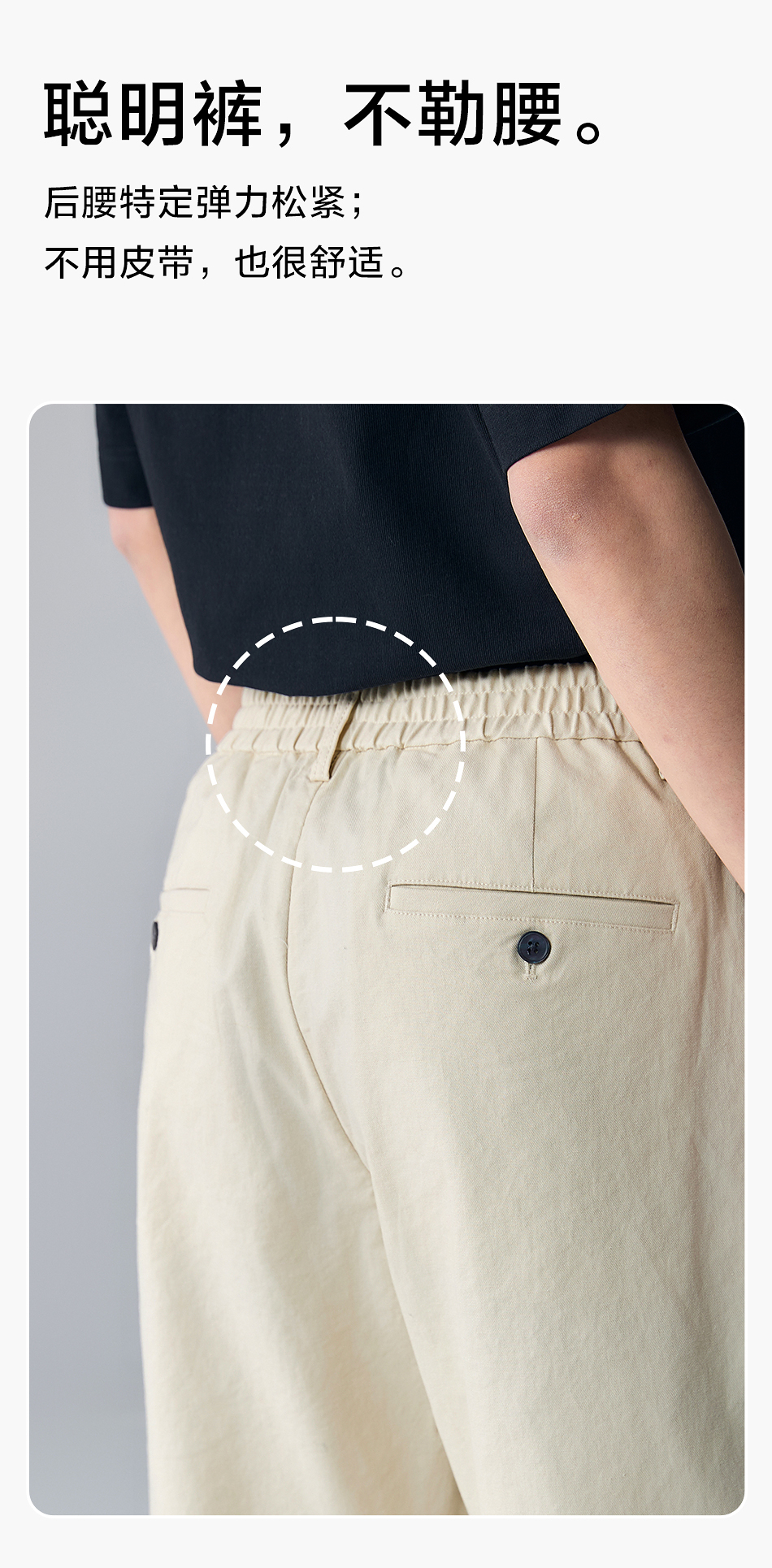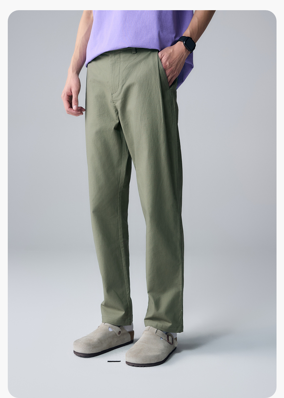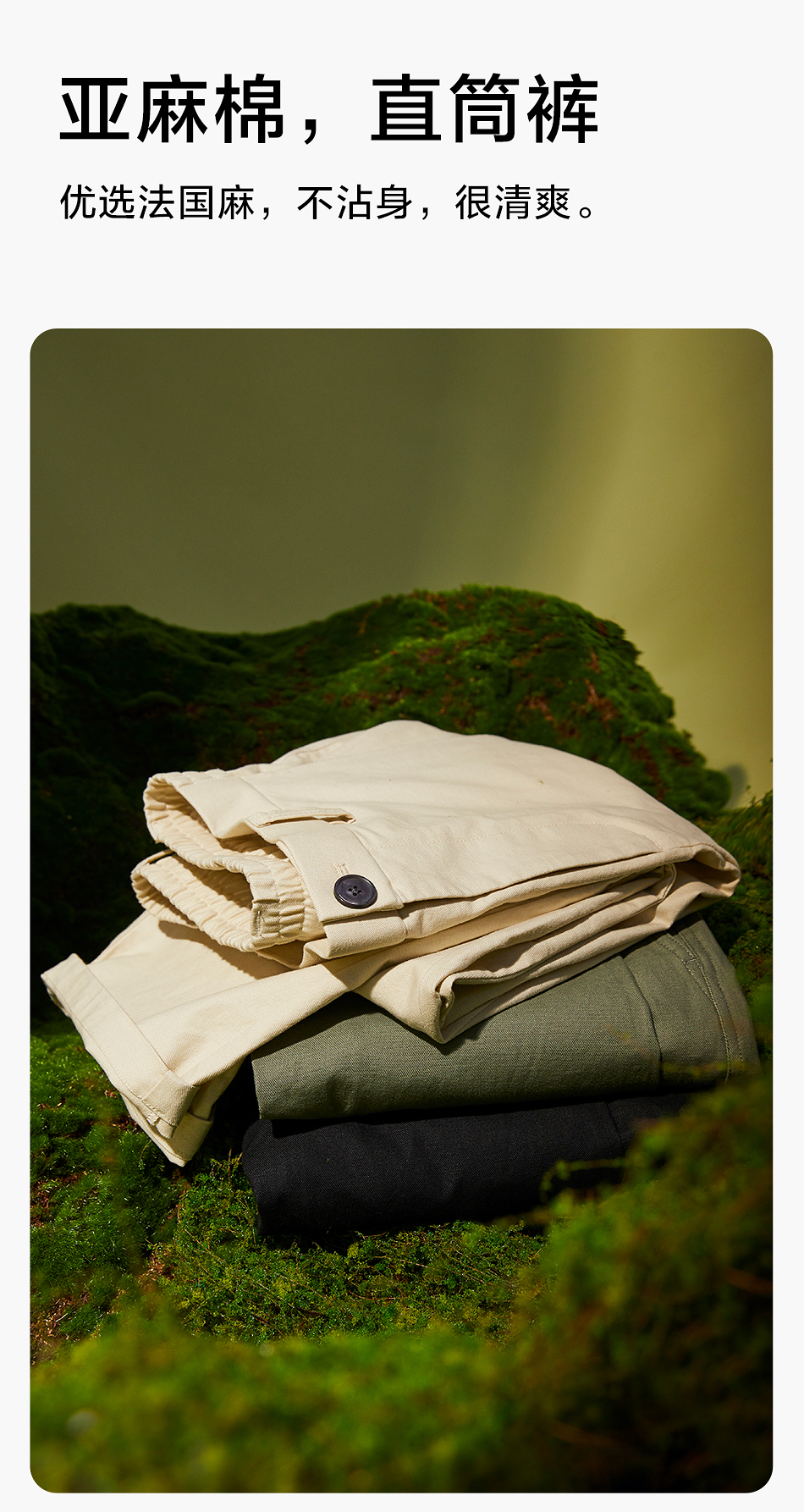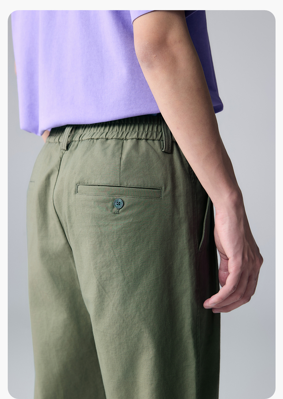 棉仓352818011-弹力棉麻松紧腰单褶直筒裤