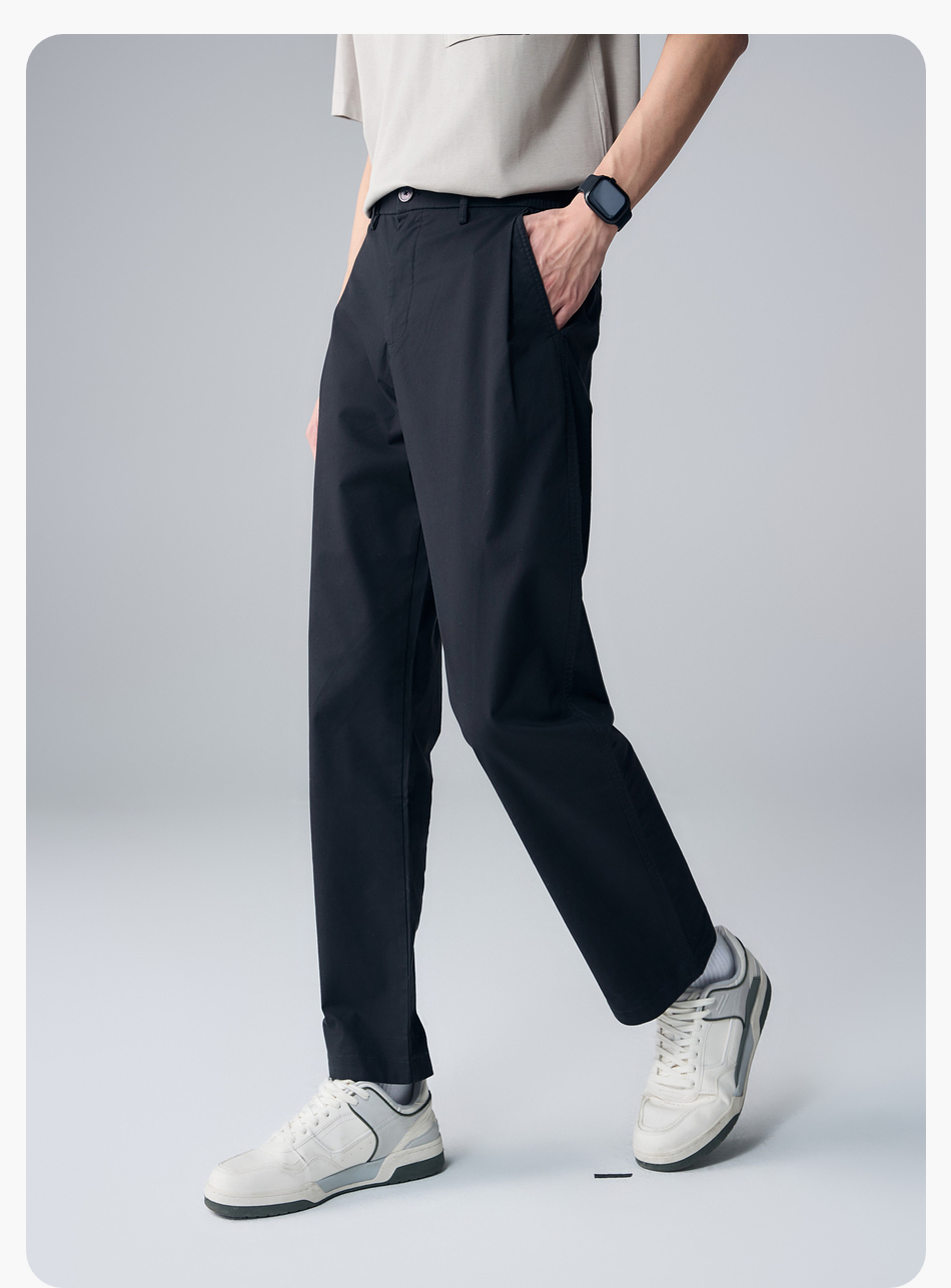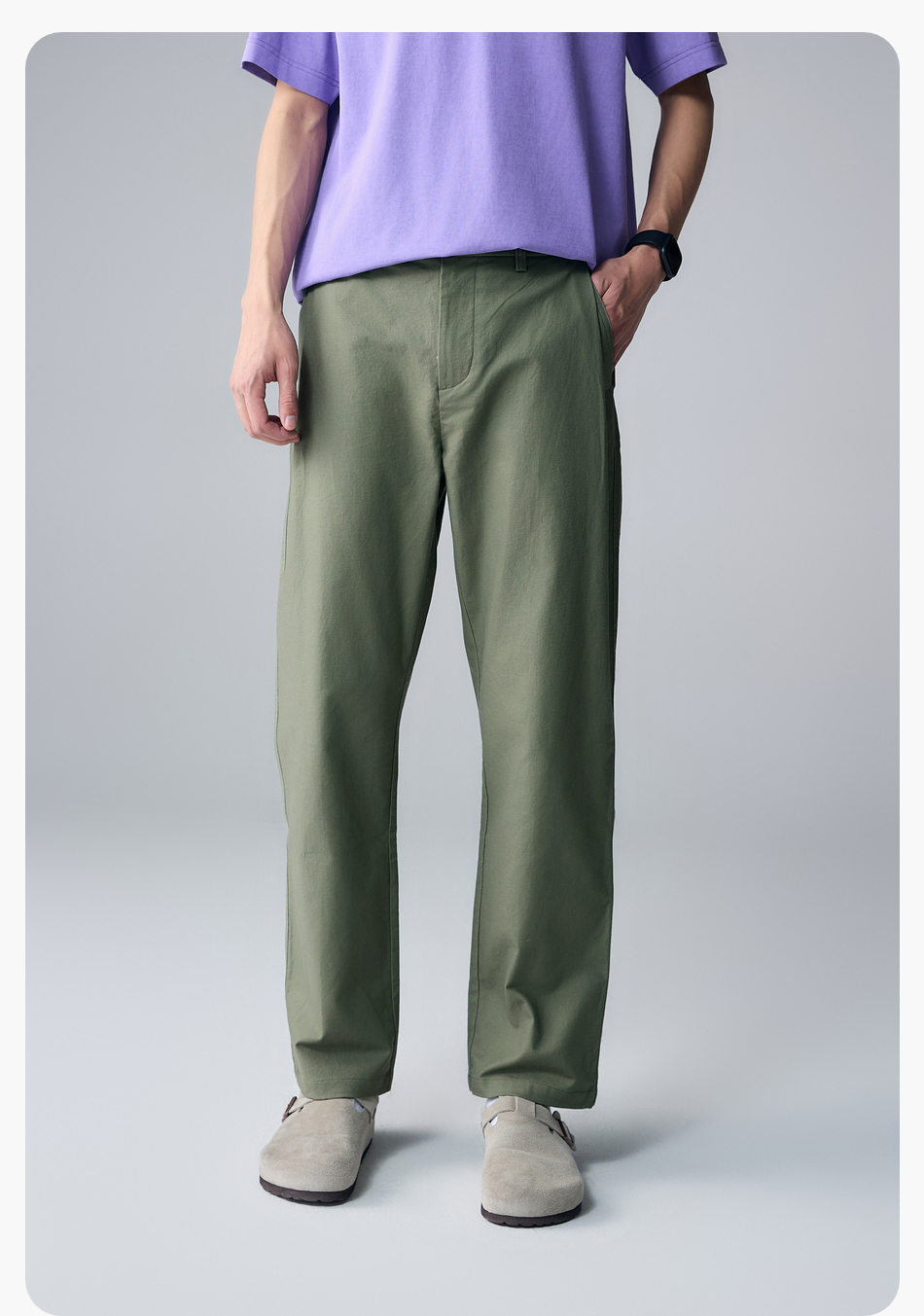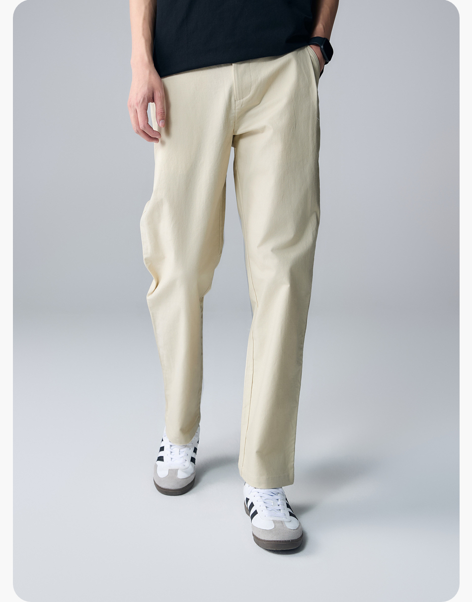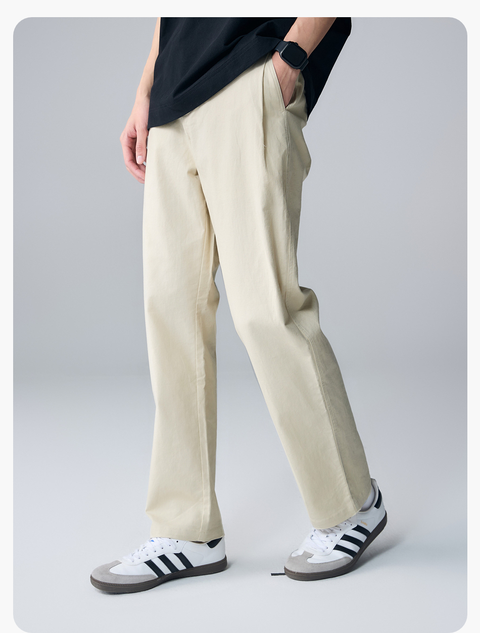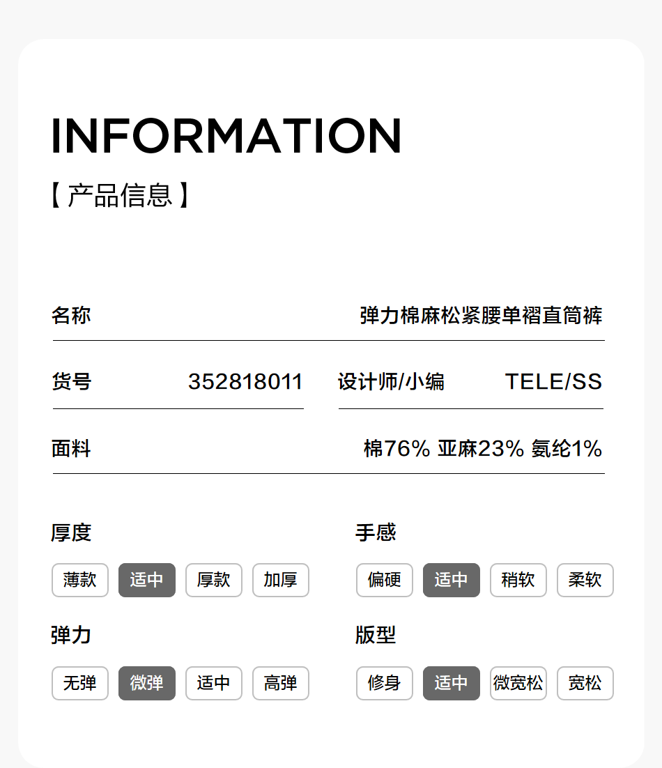 棉仓352818011-弹力棉麻松紧腰单褶直筒裤