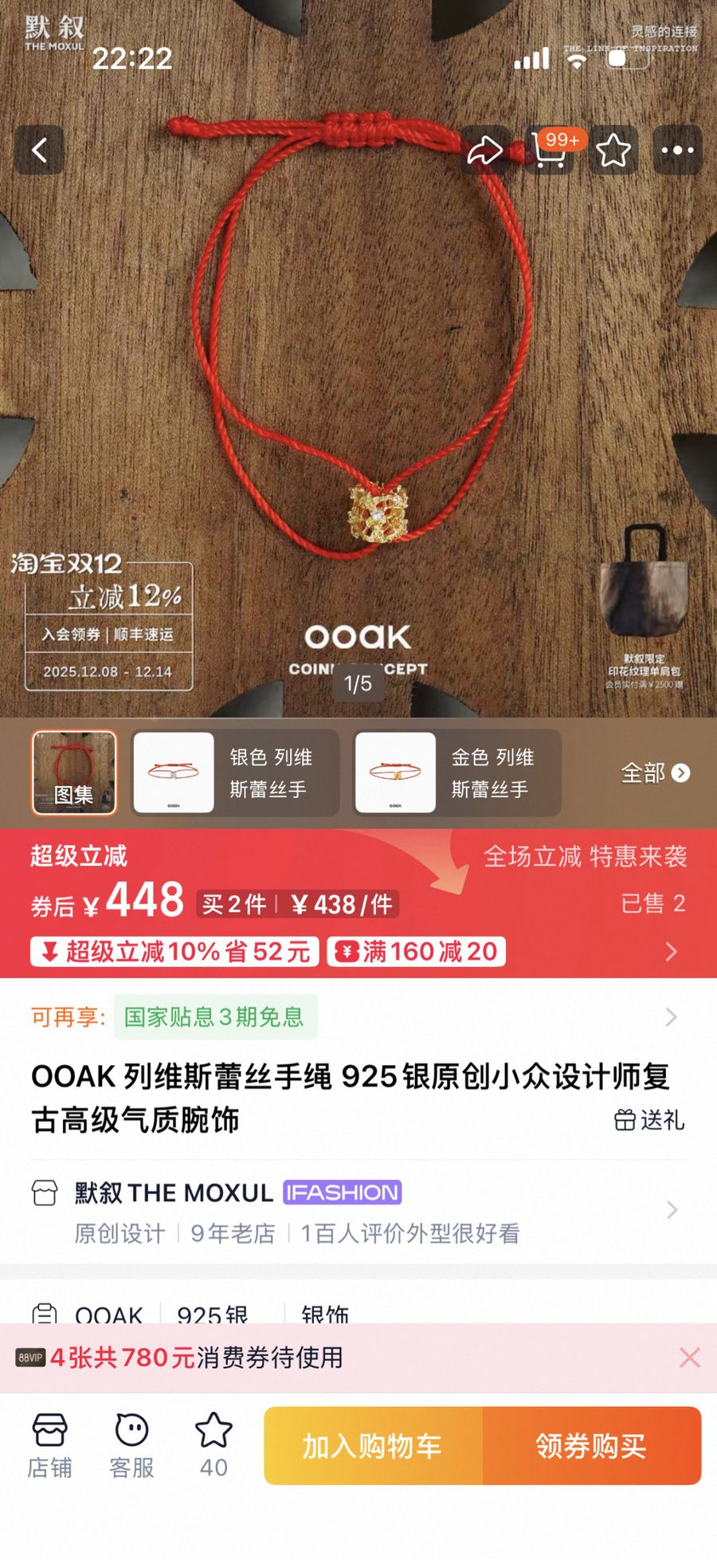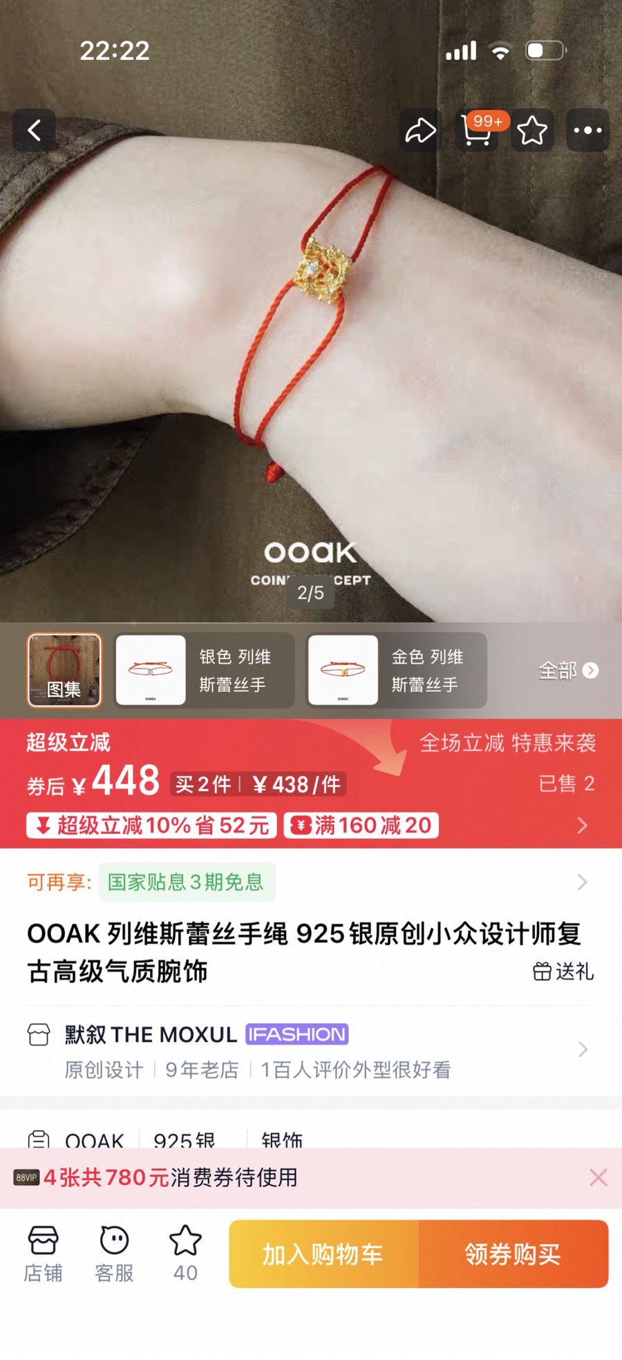 新年小红绳来咯~纯元 OOA*K 蕾丝纯银 S925 通体镀 18K 真金平安扣小红绳!