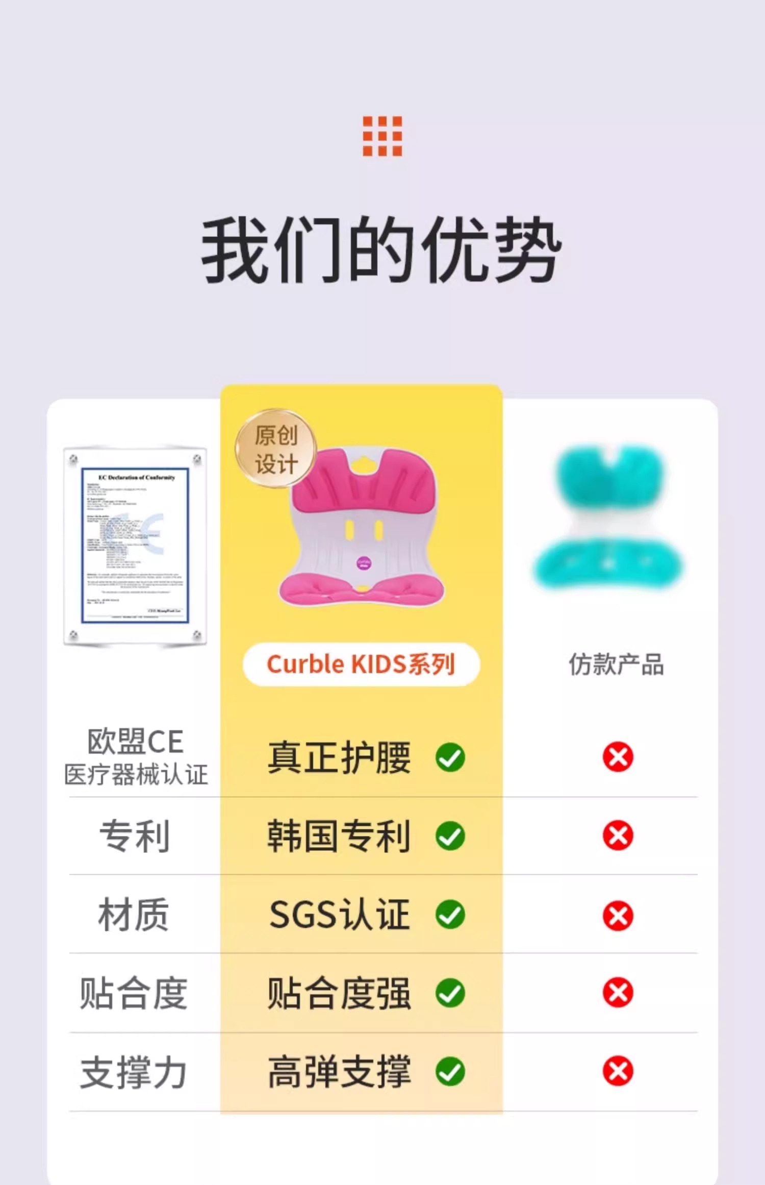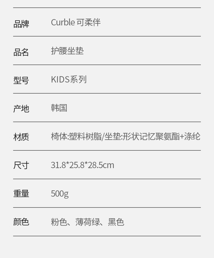 Curble kids儿童护腰矫姿椅防驼背靠垫腰部支撑垫椅子靠背垫