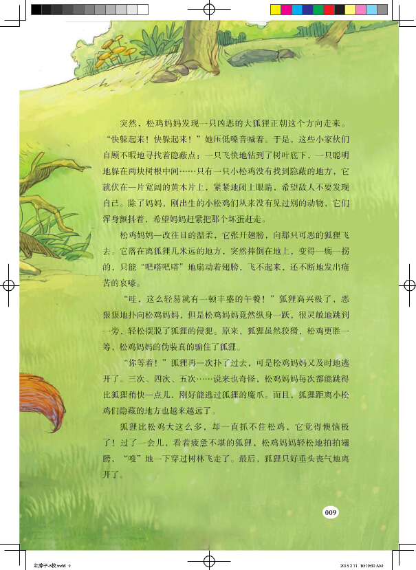 《红脖子》的主人翁是一只强健、智慧、勇敢的雄松鸡,它从出生到有了自己的妻子、孩子,经历了大自然的无数的考验:“疯狂月”没有害死它,“饥饿月”没有饿死它,“雪花月”没有冻死它……红脖子就是这么顽强。可是,它最终还是死在了猎人的“圈套”里,在大自然面前,红脖子的生命是脆弱的,尽管如此,红脖子没有认输,它勇敢地为之拼搏、战斗,使生命绽放出最夺目的光彩。