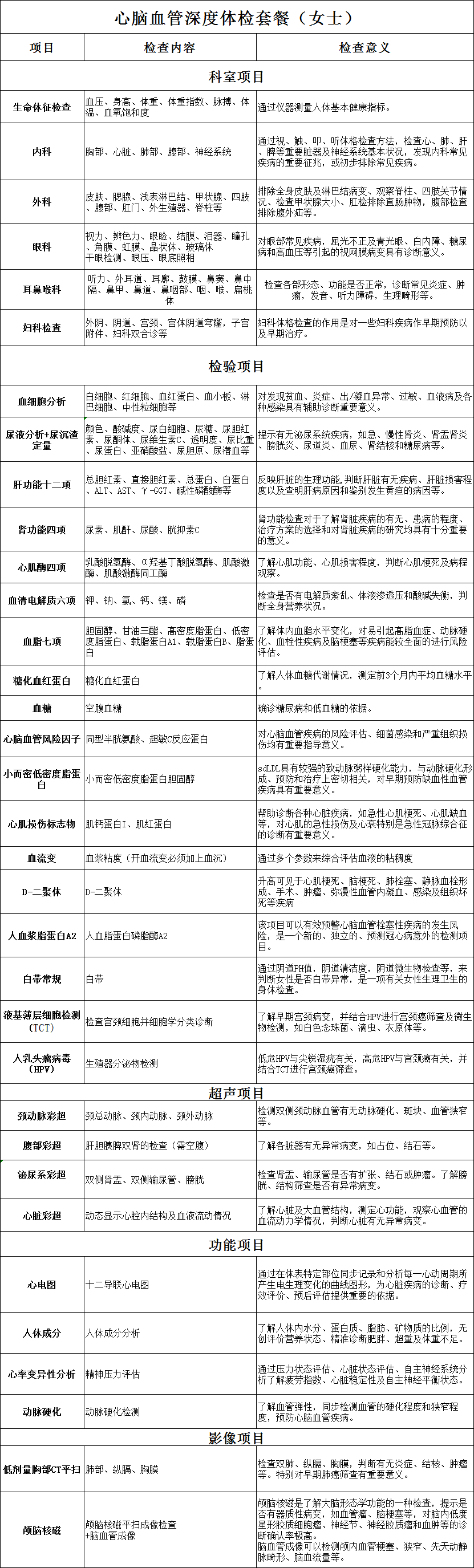心脑血管深度体检套餐(女性)