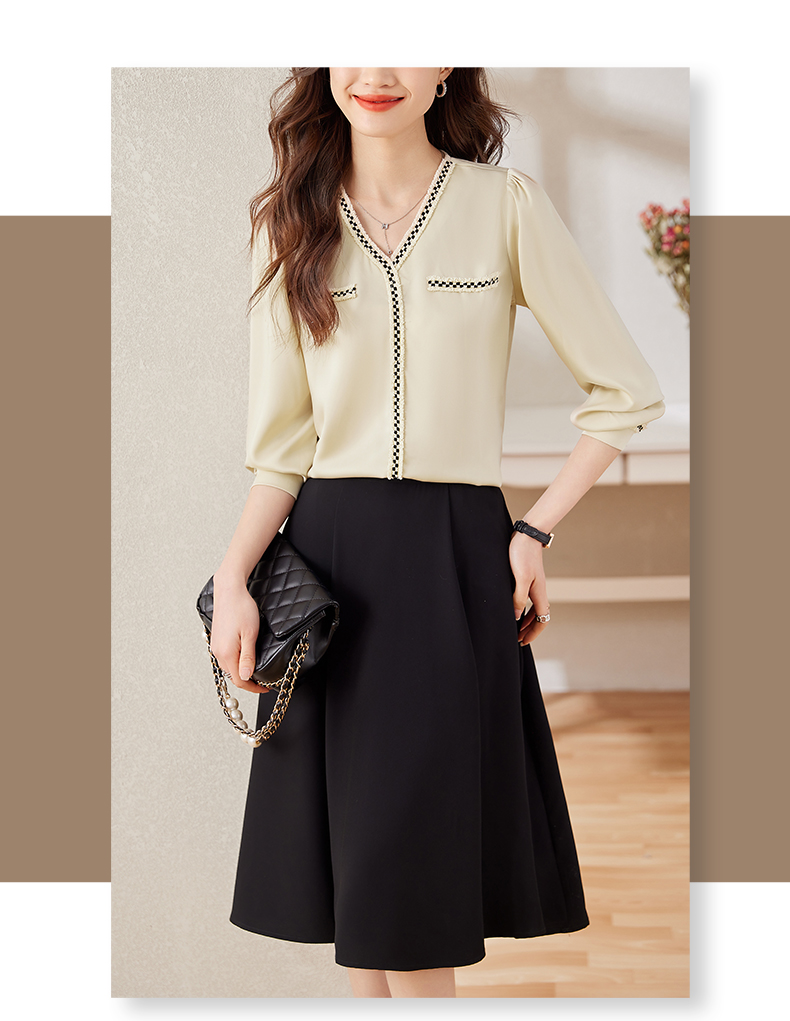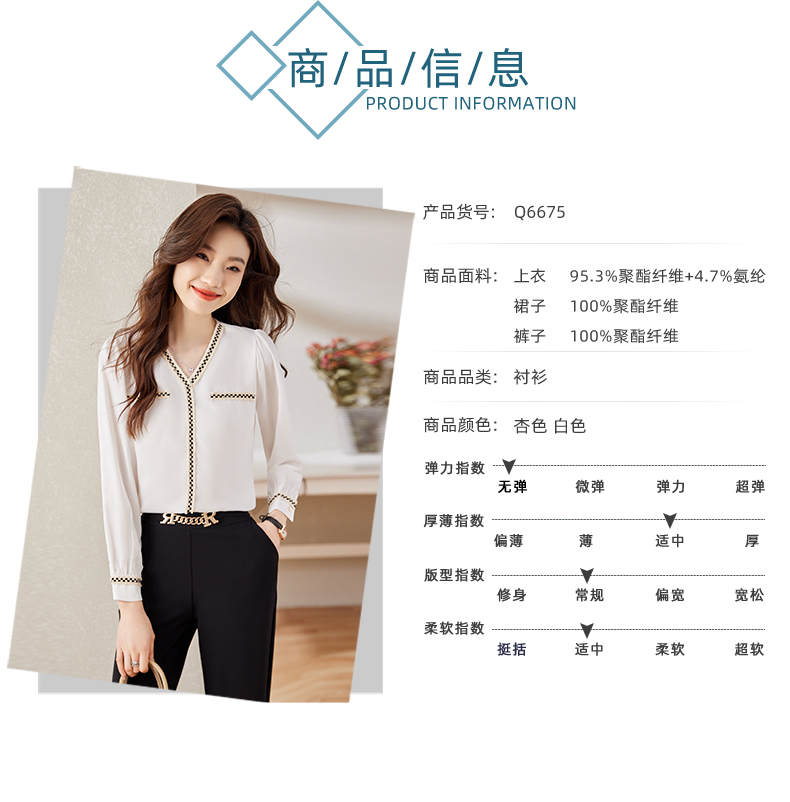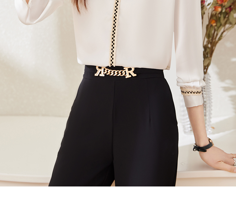 v领职业通勤衬衫高腰半身裙子休闲裤两件套装女