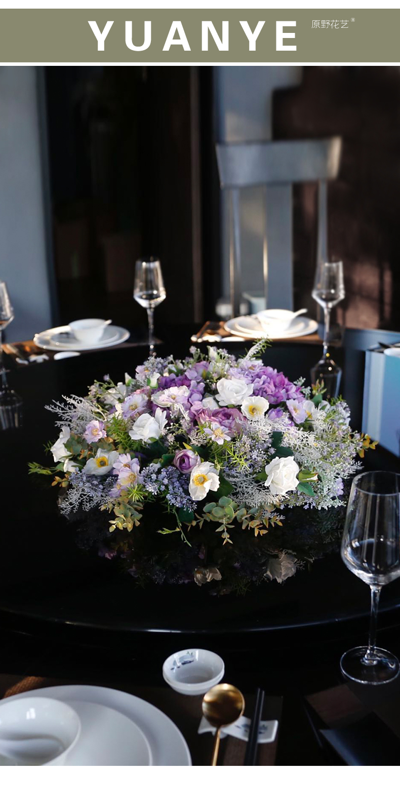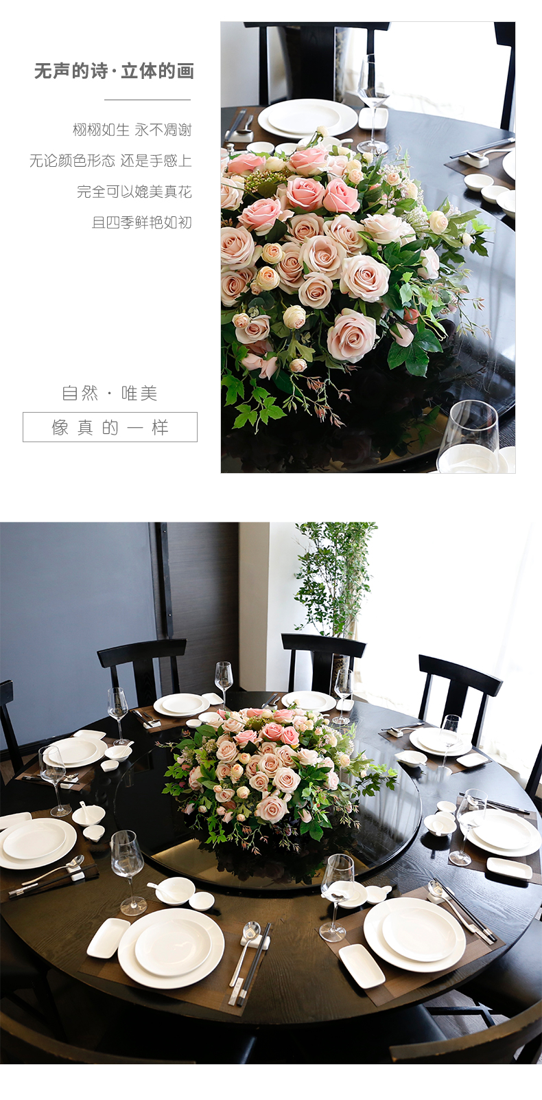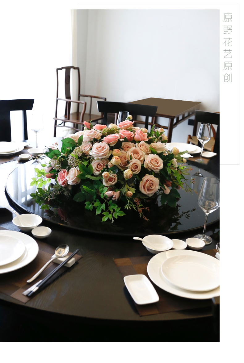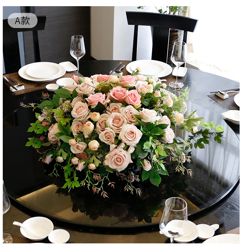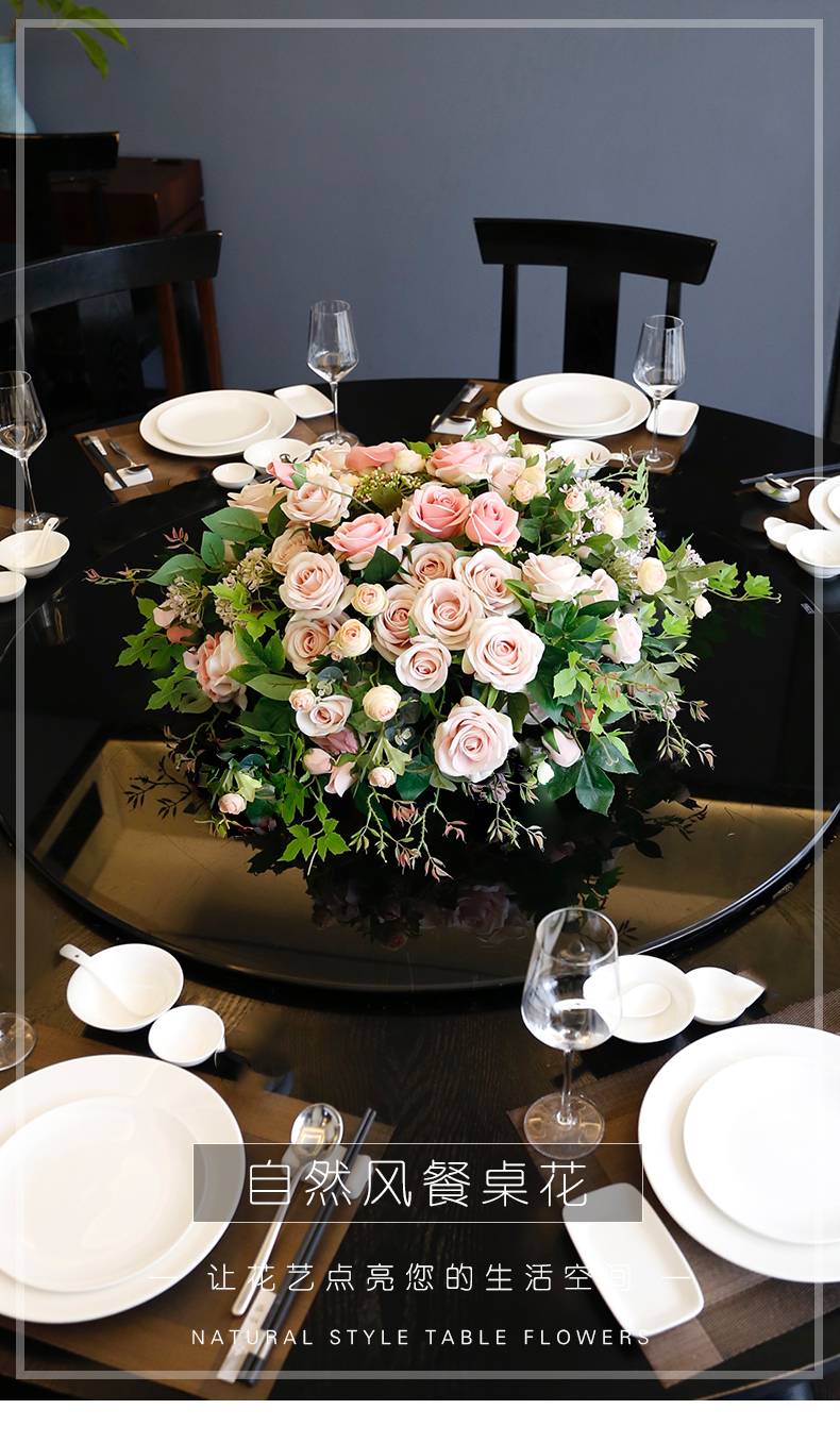 酒店餐桌花饭店餐厅包厢大圆桌中间转盘摆花高端仿真花装饰花摆设