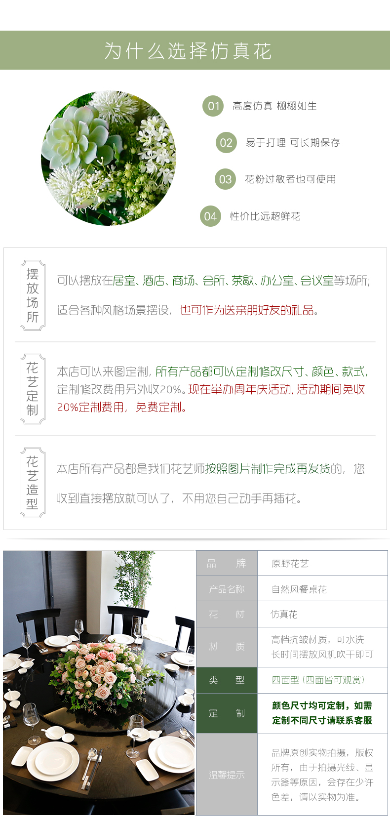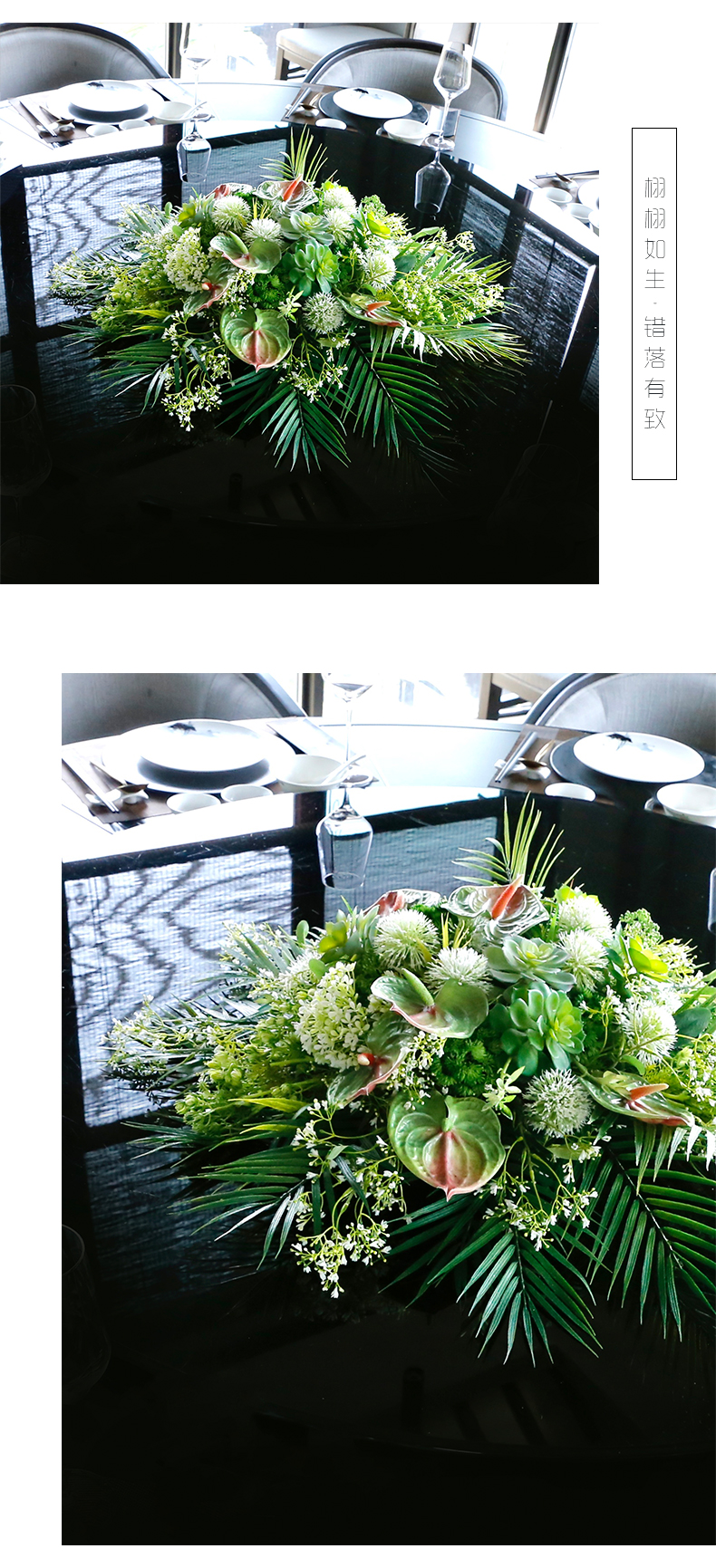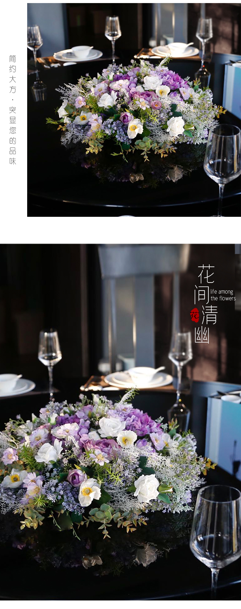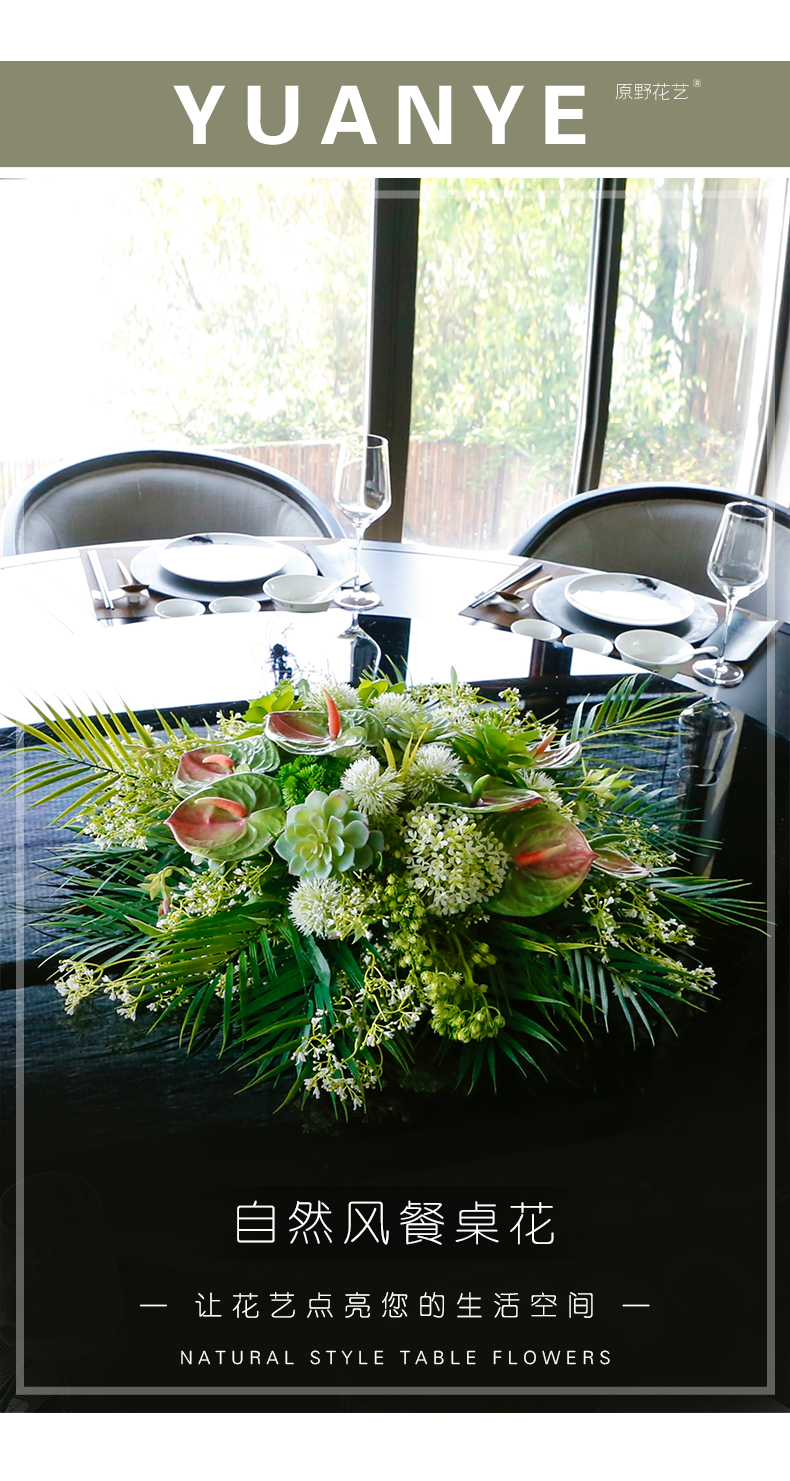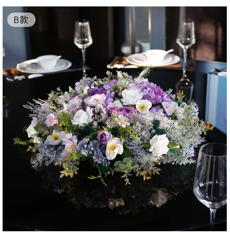 酒店餐桌花饭店餐厅包厢大圆桌中间转盘摆花高端仿真花装饰花摆设