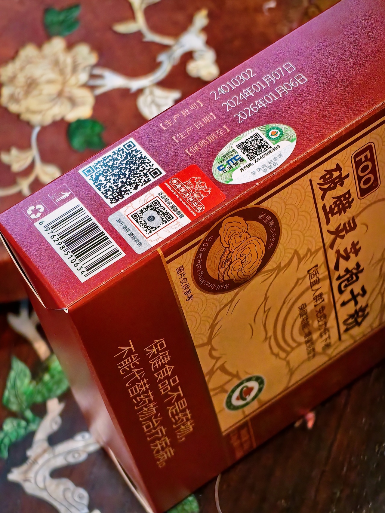 宝芝林特意甄选长白山下“灵芝第一村”的灵芝。长白山是鸭绿江、松花江、图们江三大水系的发源地,水质天然、纯净,含有丰富的矿物质营养,再加上火山多次喷发,形成了富含有机质和微量元素的土壤,再以天然椴木为培养基,一木一芝精心培育,有机种植,严格管控。而且地处北纬40度,无霜期短,昼夜温差大,使得灵芝生长周期较长,营养积累时间久,灵芝品质更是优秀!等到7-9月灵芝成熟,会升腾起如烟似雾的褐色粉末,工人便会选取优质饱满的头道孢子粉,再采用超低温气流破壁技术,去除外层坚硬、不易被吸收的孢壁,让有效活性能更好的可以被食用吸收。宝芝林灵芝孢子粉,不混合普通灵芝粉,全程不添加香精、色素、防腐剂,而且无农药、无公害、无人工合成物,是国家认证的有机产品,还有经过食品药监局批准的蓝帽子保健食品标签,可以放心喝!