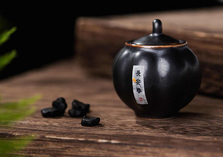 香饼窖藏醇化1年以上,使香料的香气充分融合,装入小瓷罐,才有我们眼前这「长安香」。