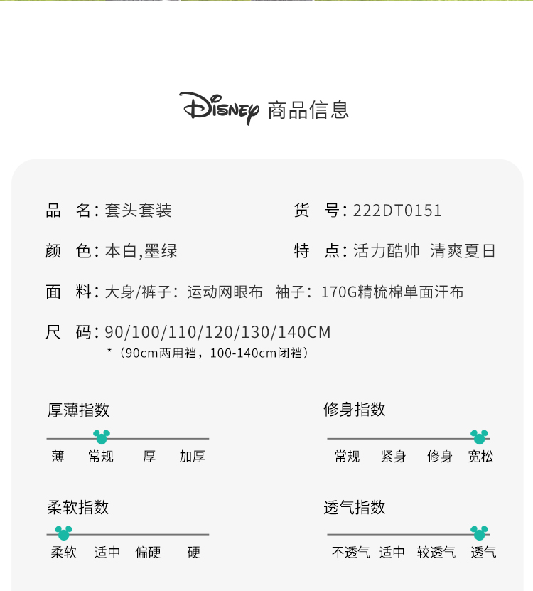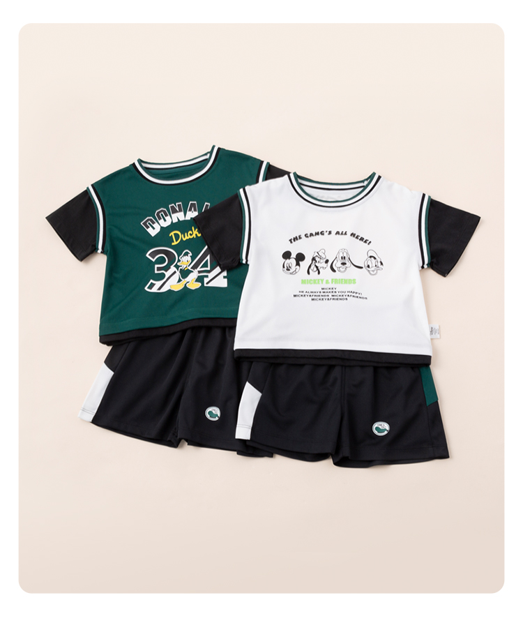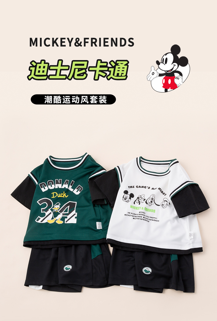 【商场同款】迪士尼童装 拼接假两件短袖套头套装夏季男童潮酷运动风套装222DT0151
