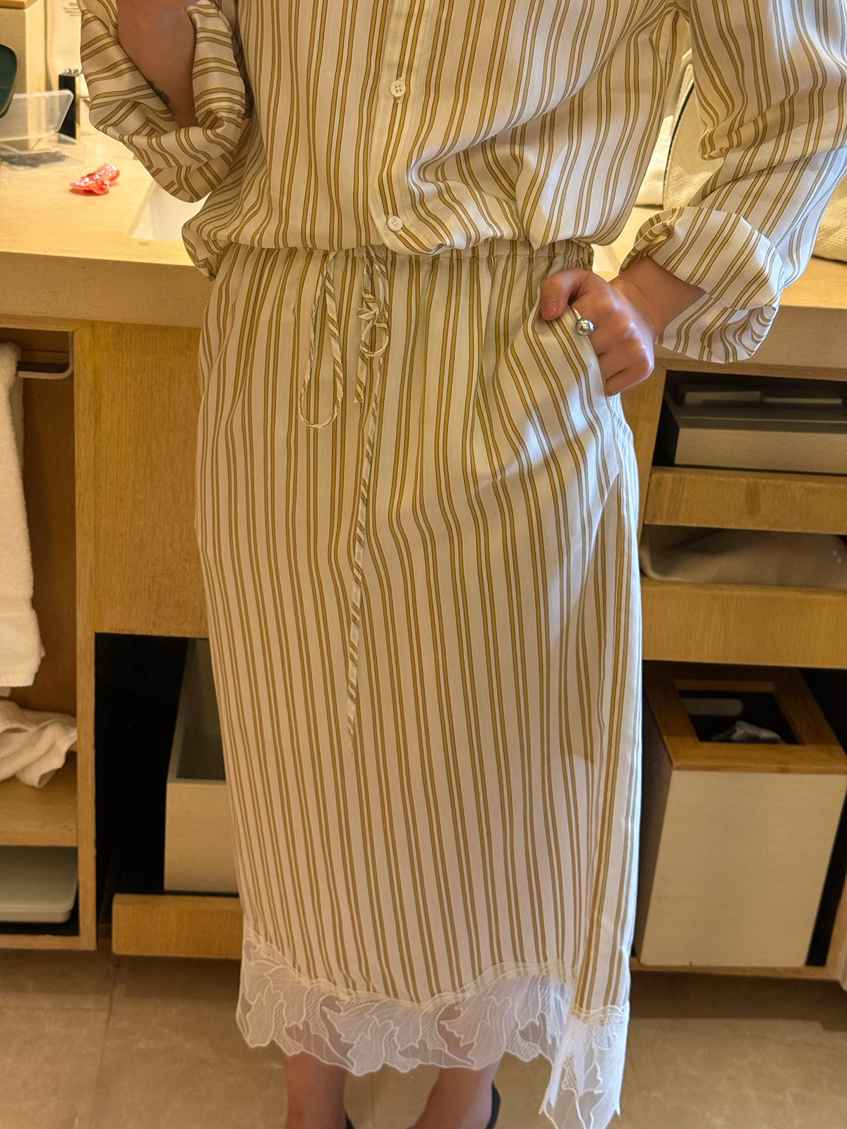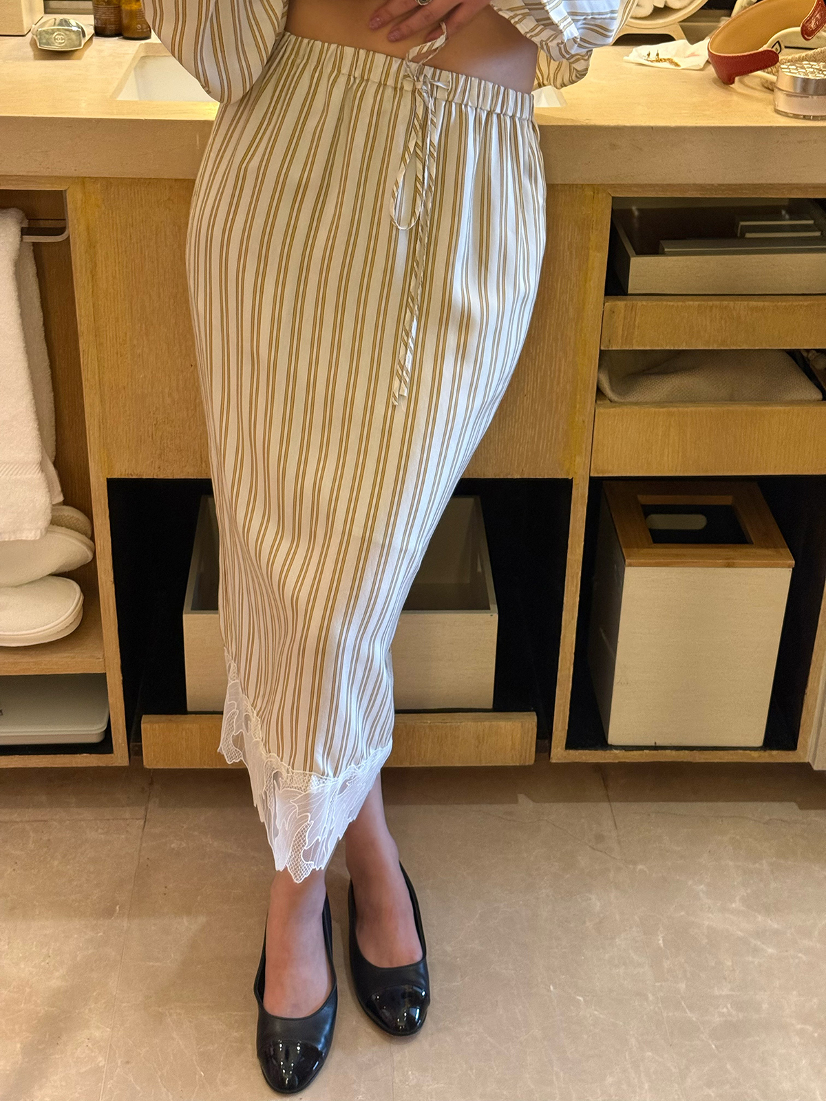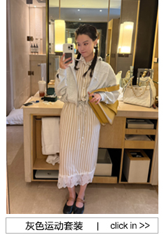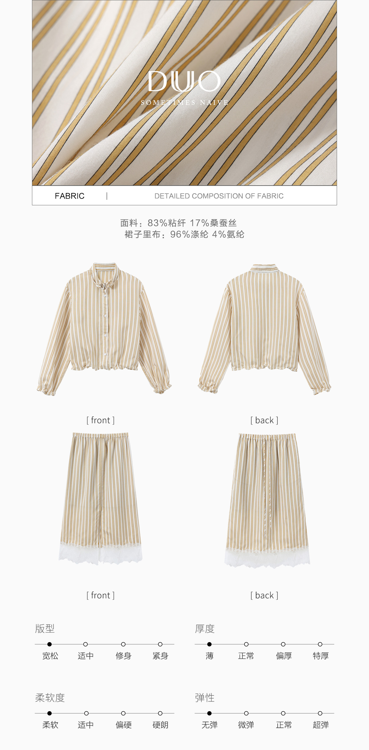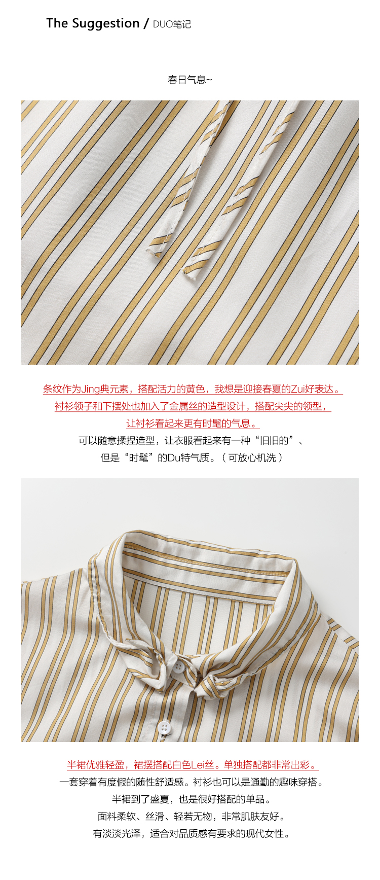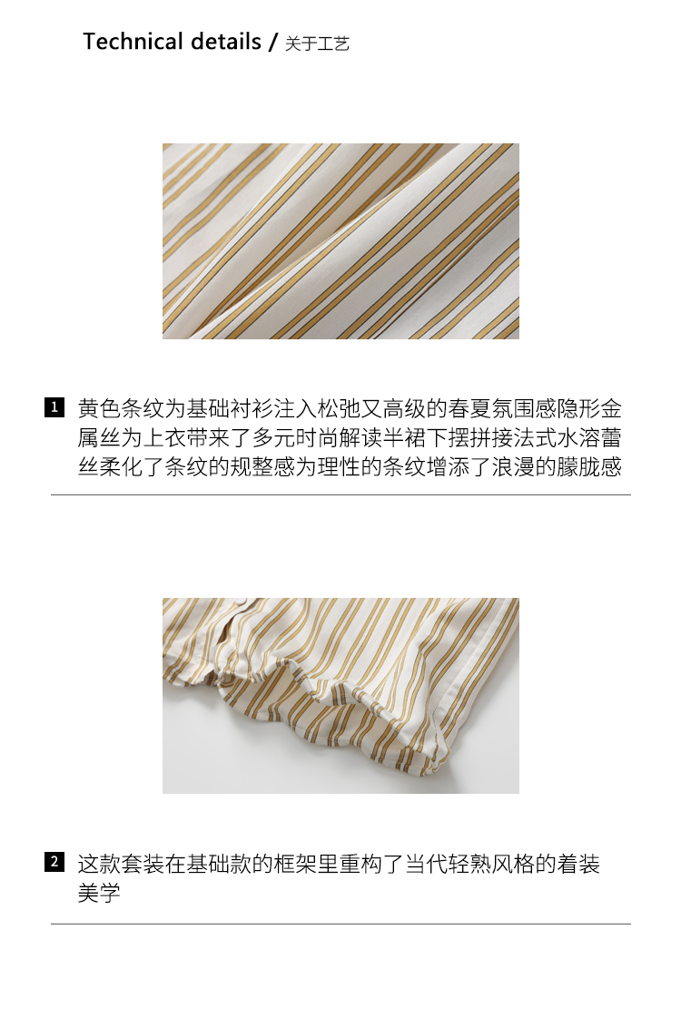 DUO智仙生 黑标 智性恋黄色条纹明媚丝质衬衫和花边蕾丝裙套装