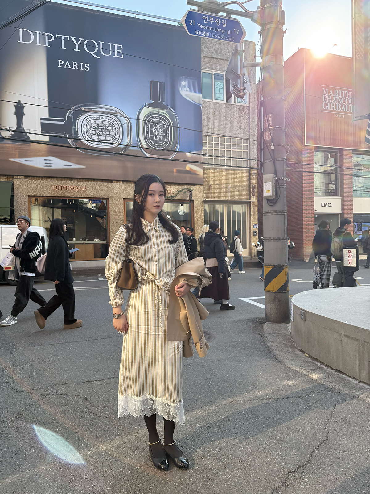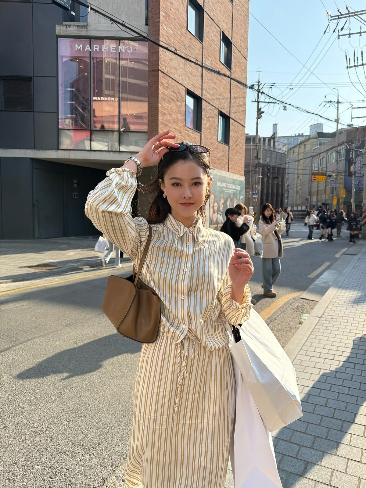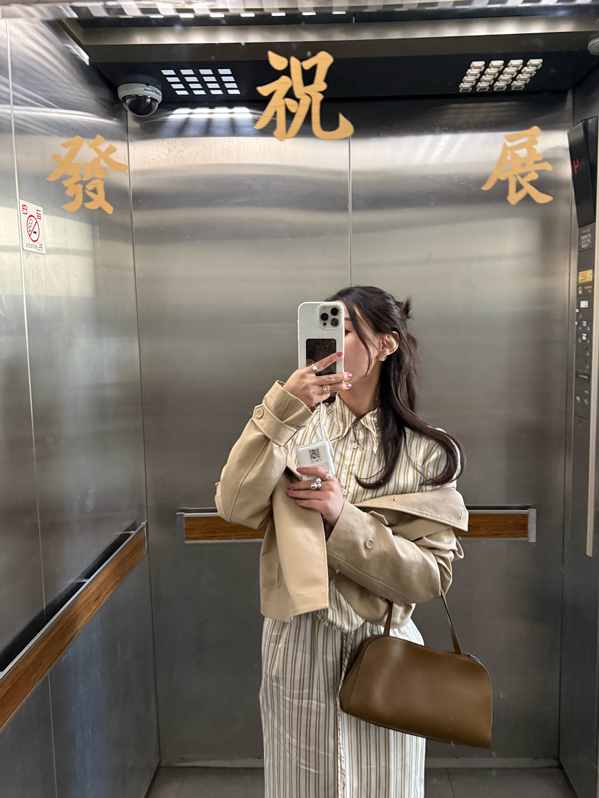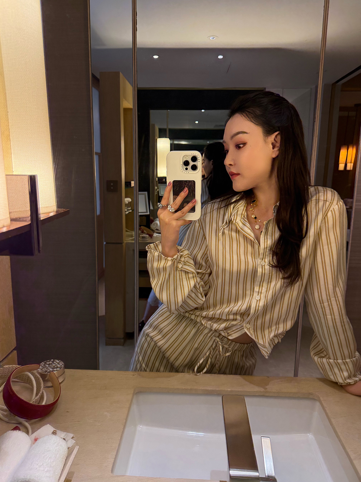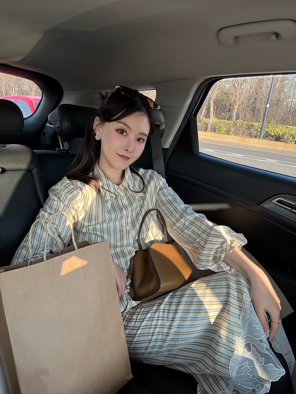 DUO智仙生 黑标 智性恋黄色条纹明媚丝质衬衫和花边蕾丝裙套装
