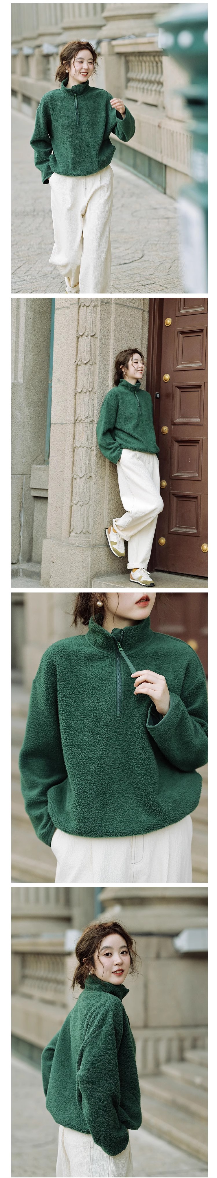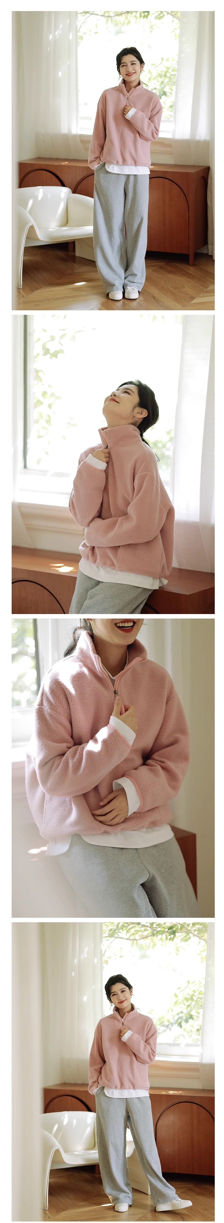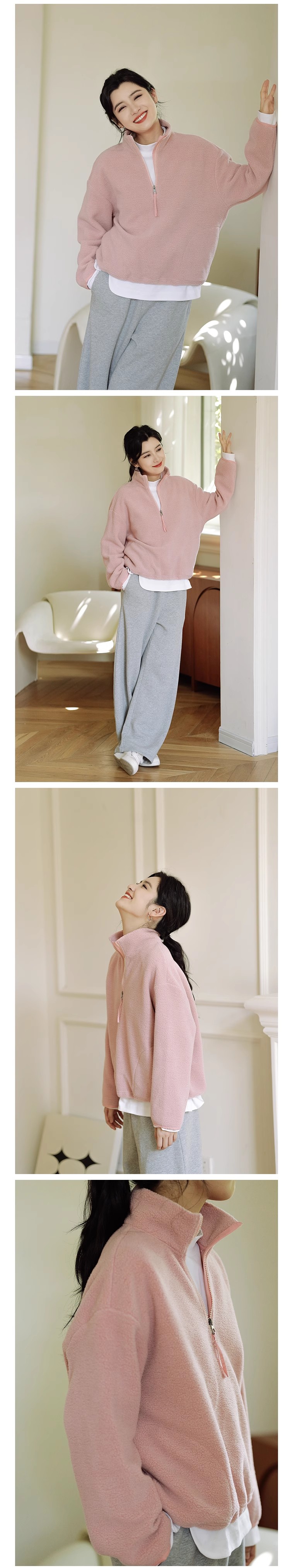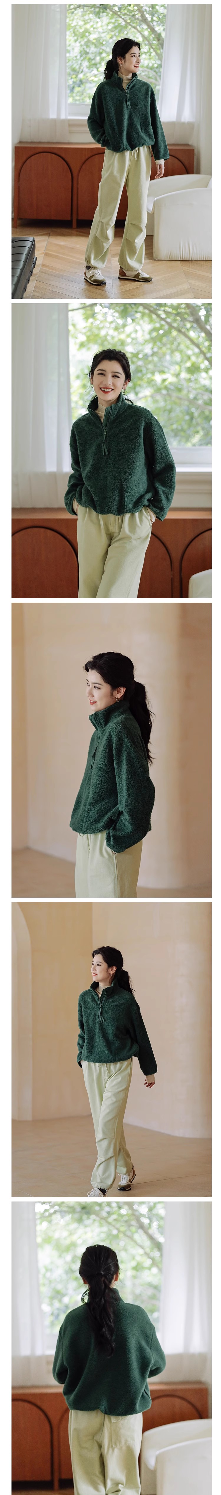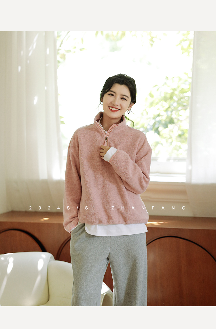 绽放756朵/糯米团卫衣羊毛感摇粒绒2024减龄高领半拉链插袋外套