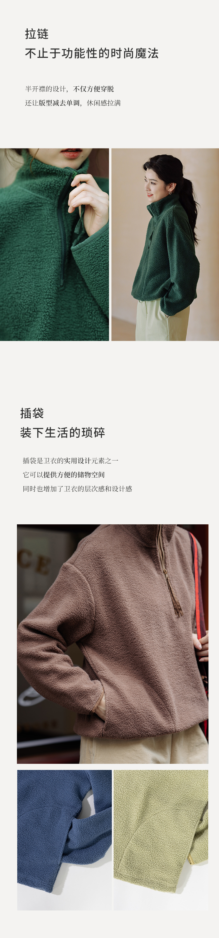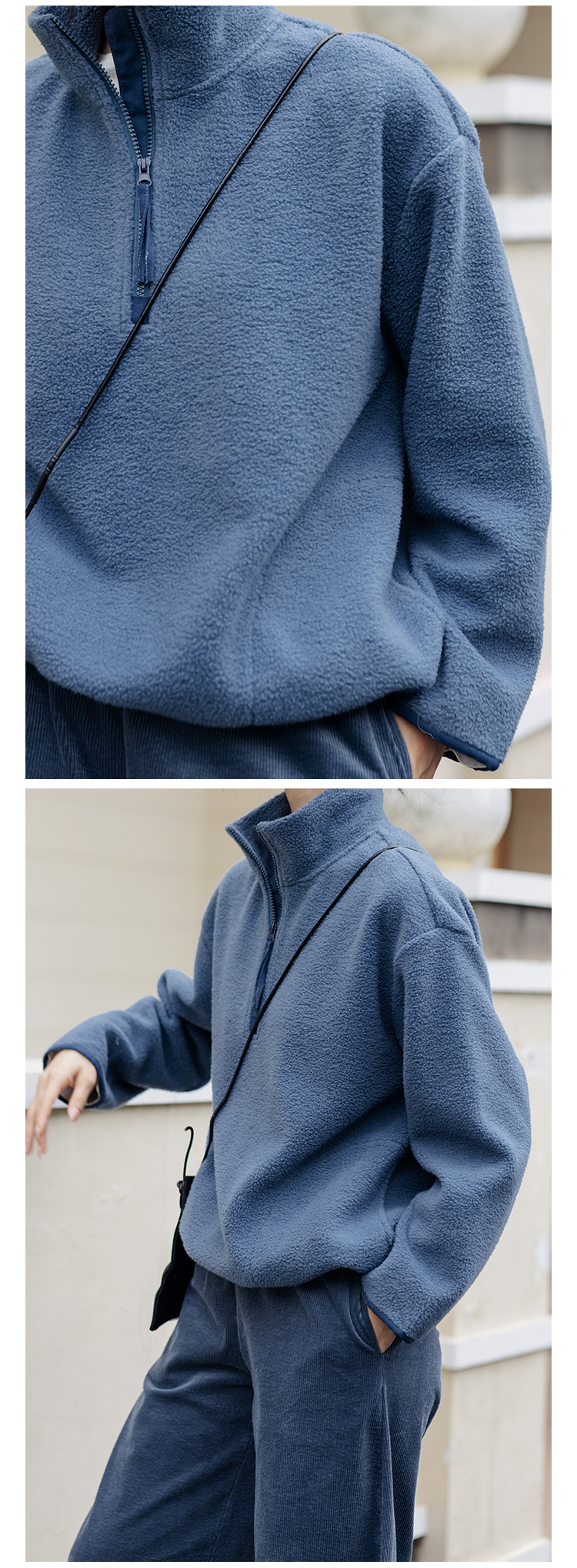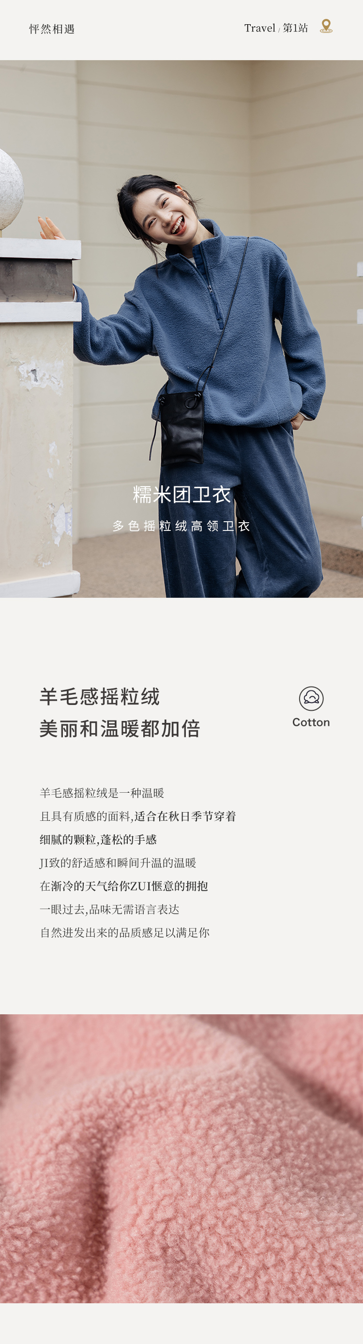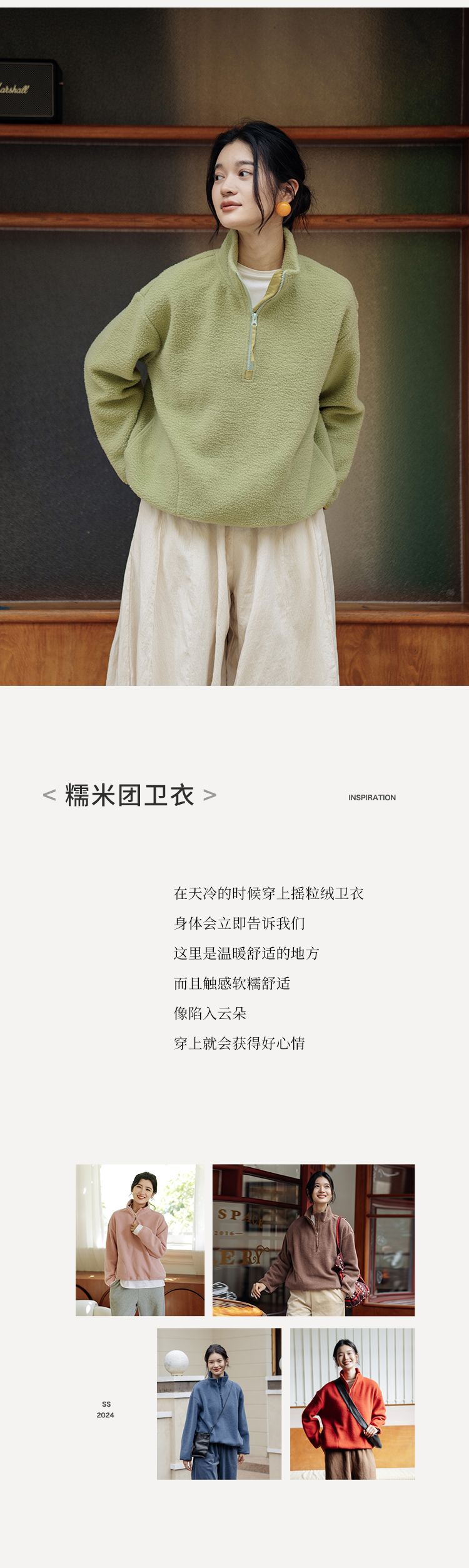 绽放756朵/糯米团卫衣羊毛感摇粒绒2024减龄高领半拉链插袋外套