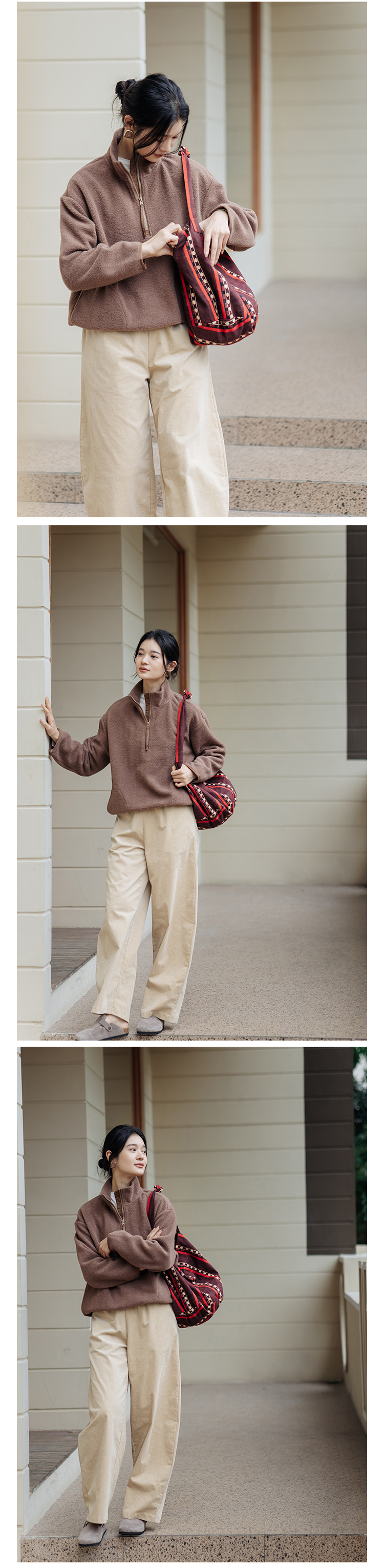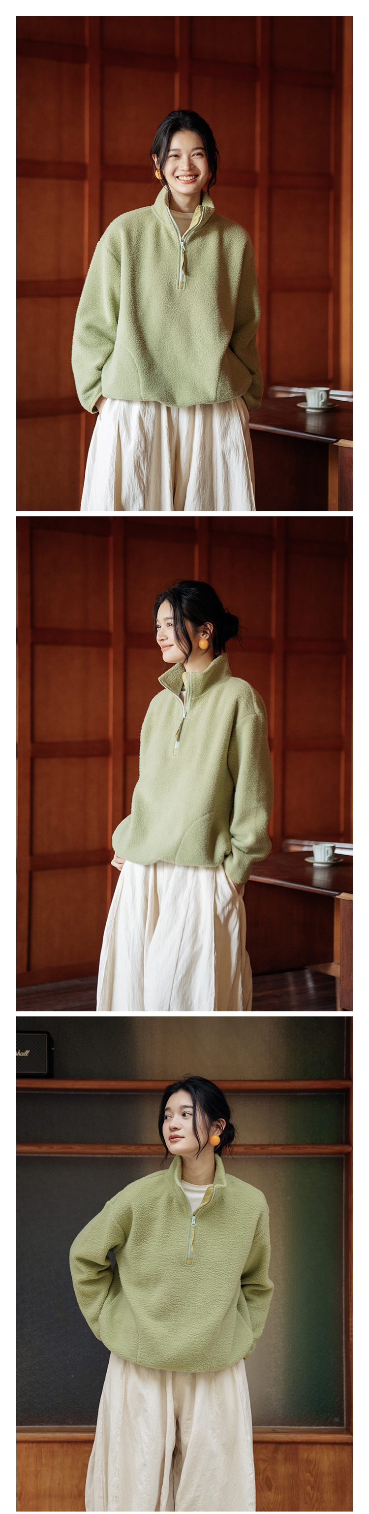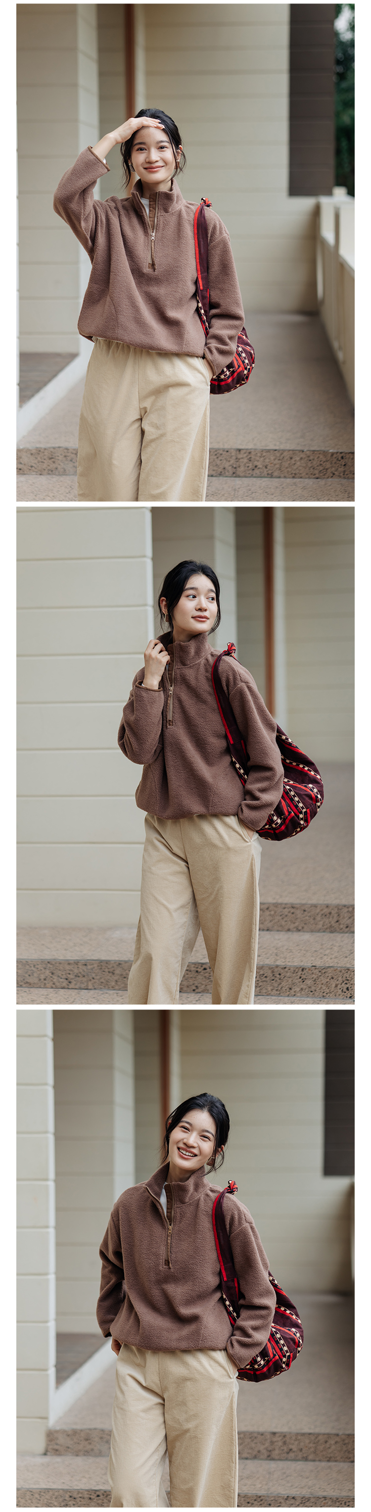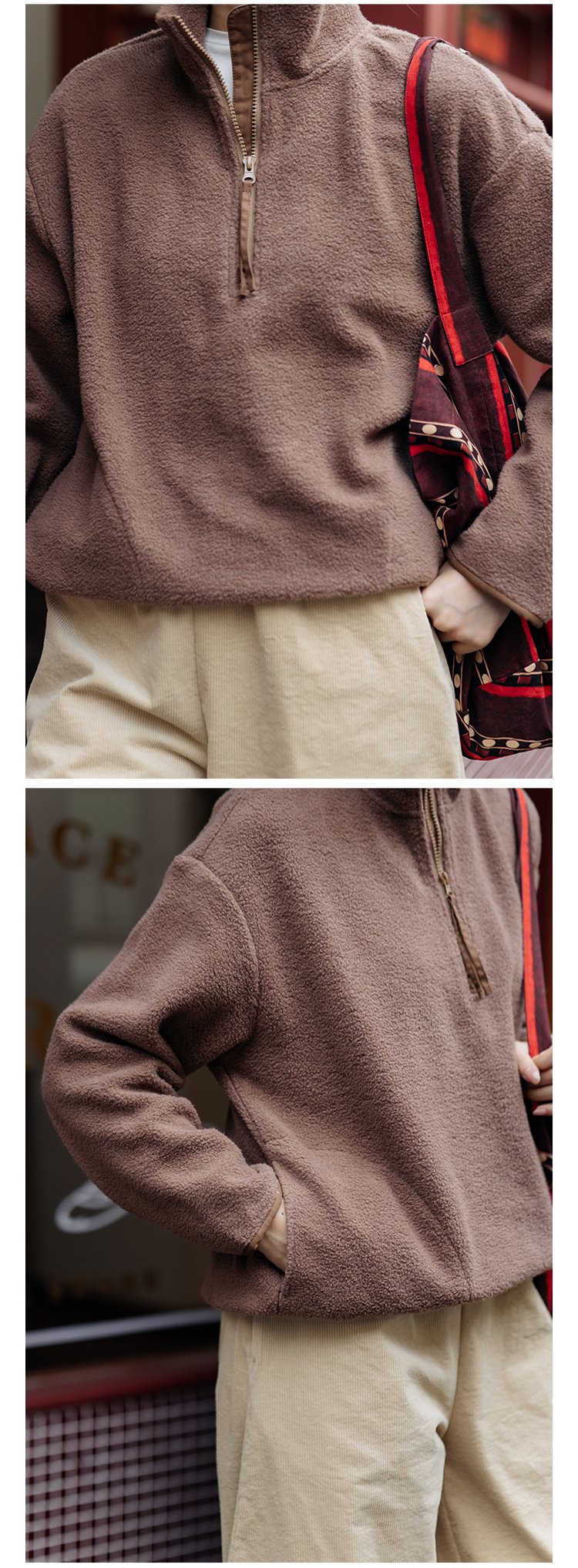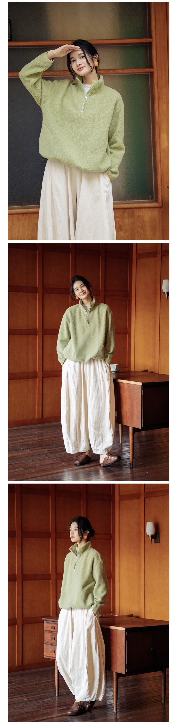 绽放756朵/糯米团卫衣羊毛感摇粒绒2024减龄高领半拉链插袋外套