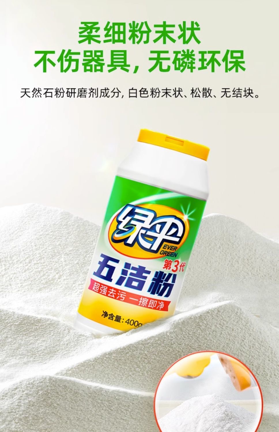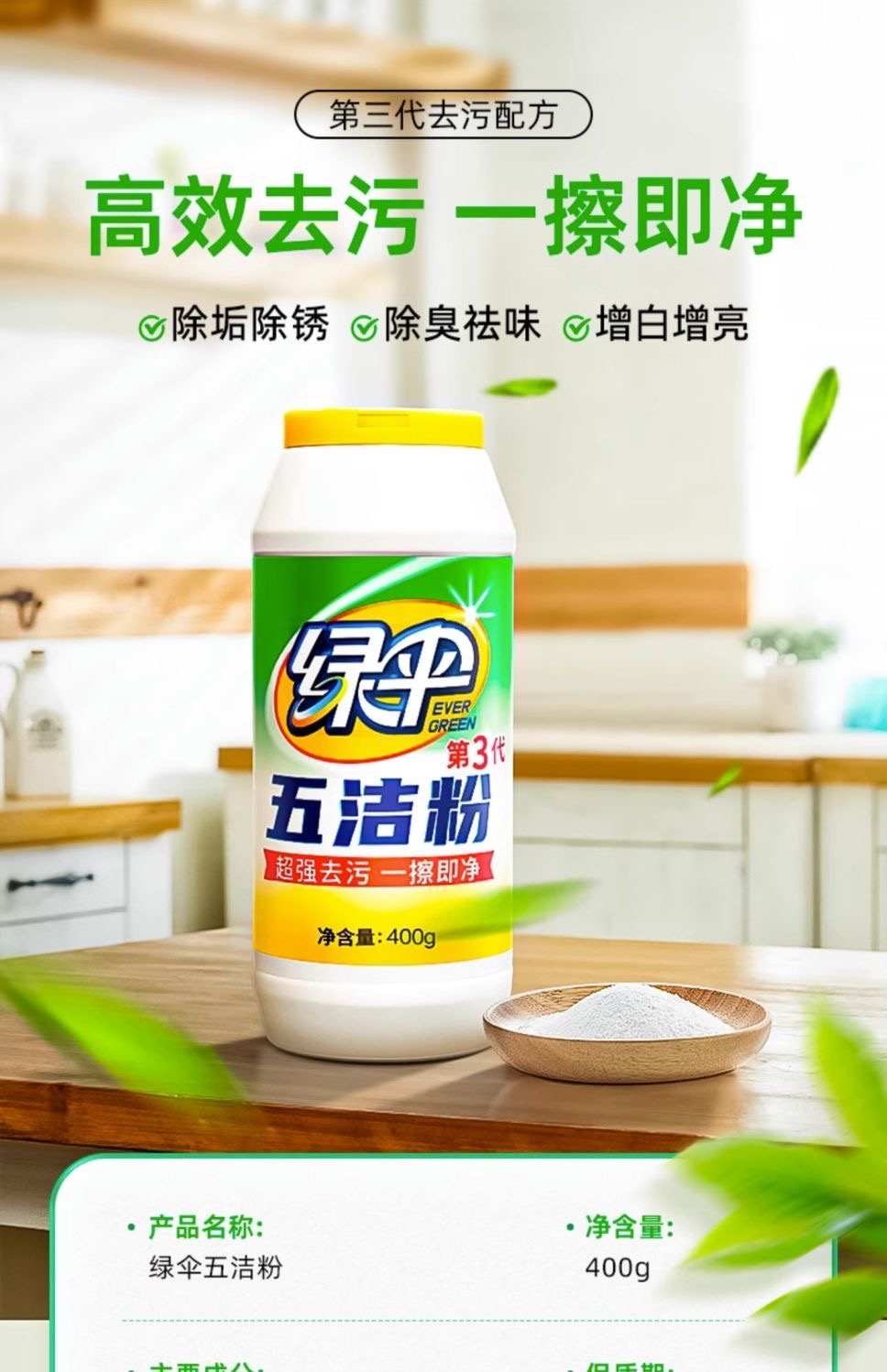 绿伞五洁粉400g瓶厨房去油锅底除锈多功能清洁粉
