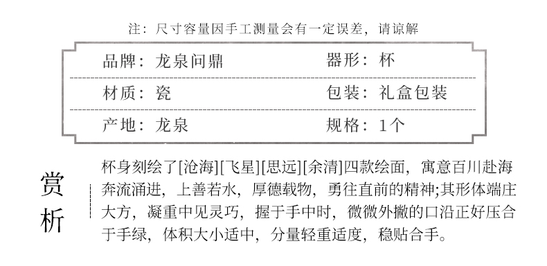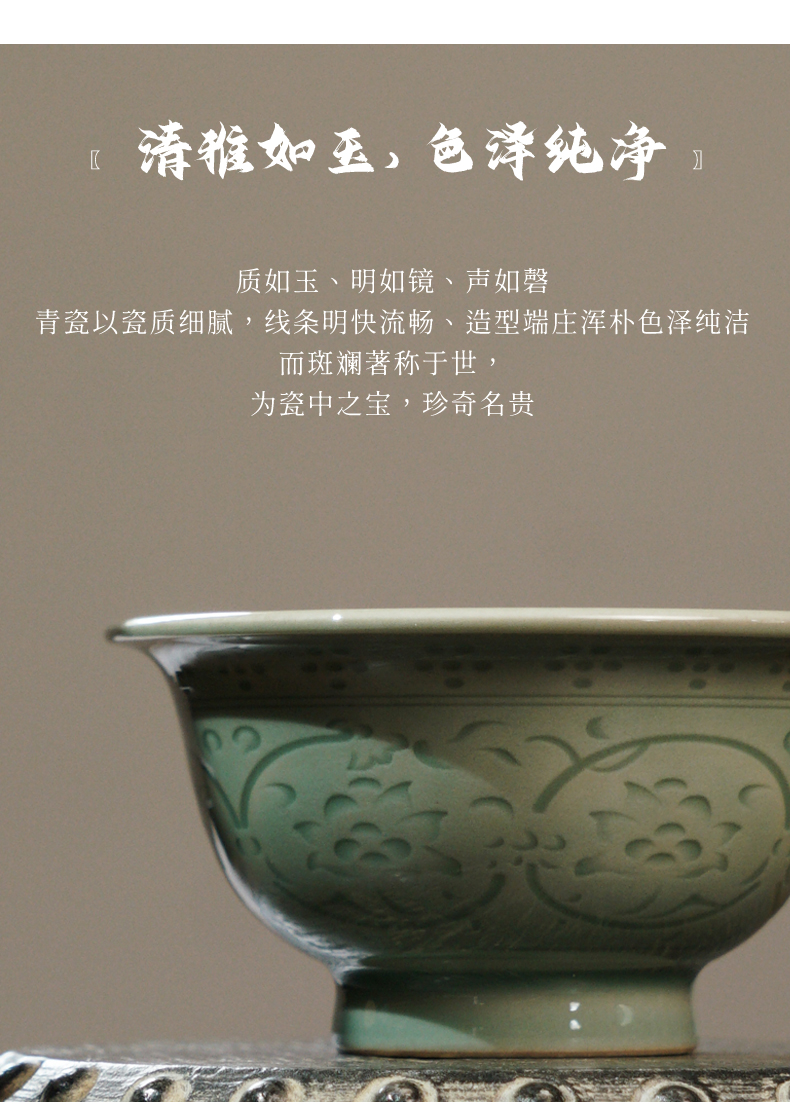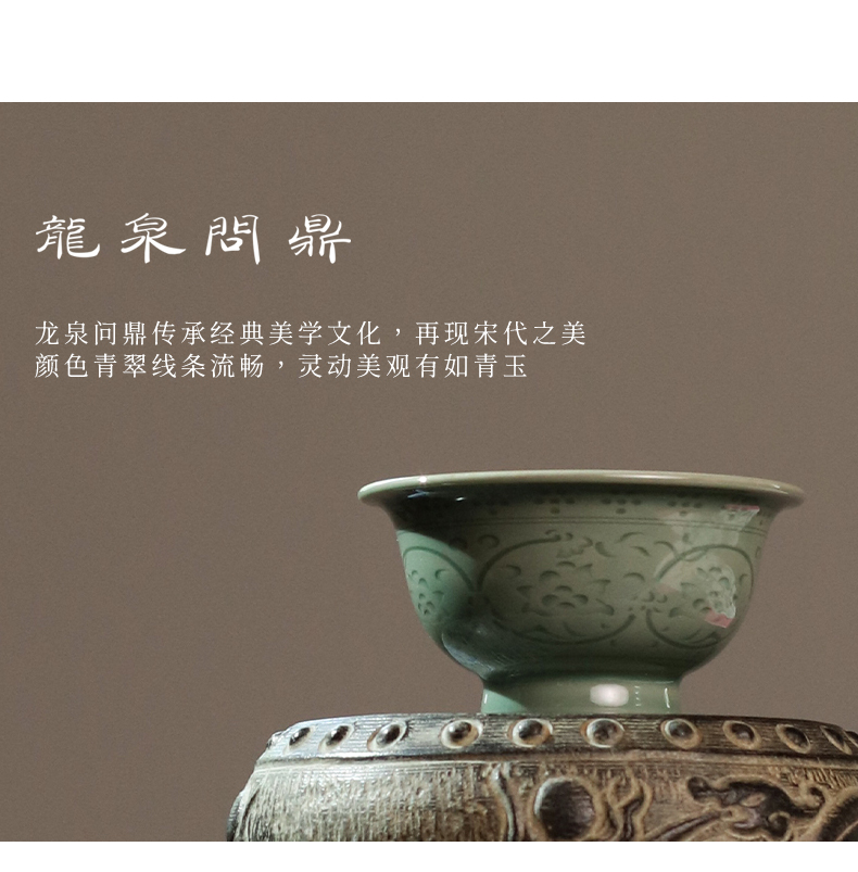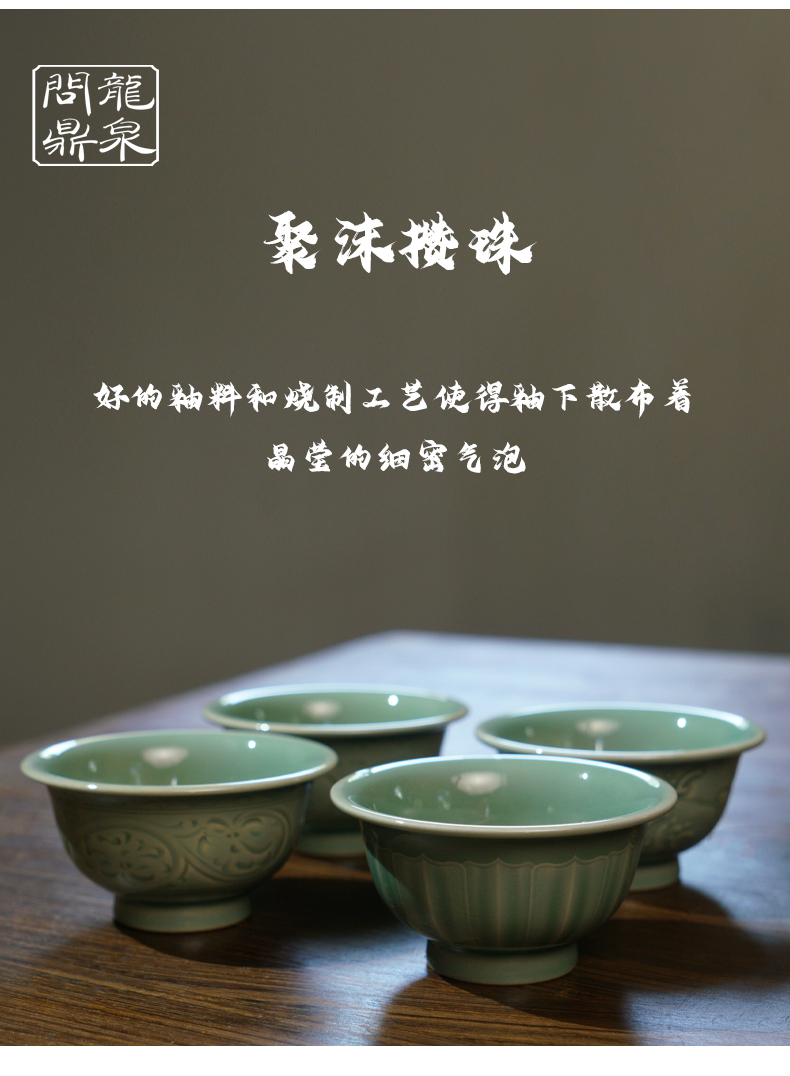 龙泉问鼎梅子青刻绘压手杯(缺货)