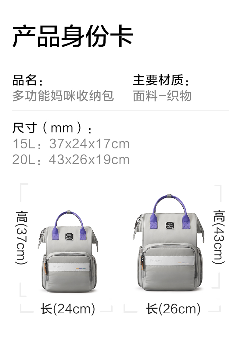 babycare妈咪包母婴包手提双肩大容量外出遛娃轻便斜挎多功能背包3系妈咪包