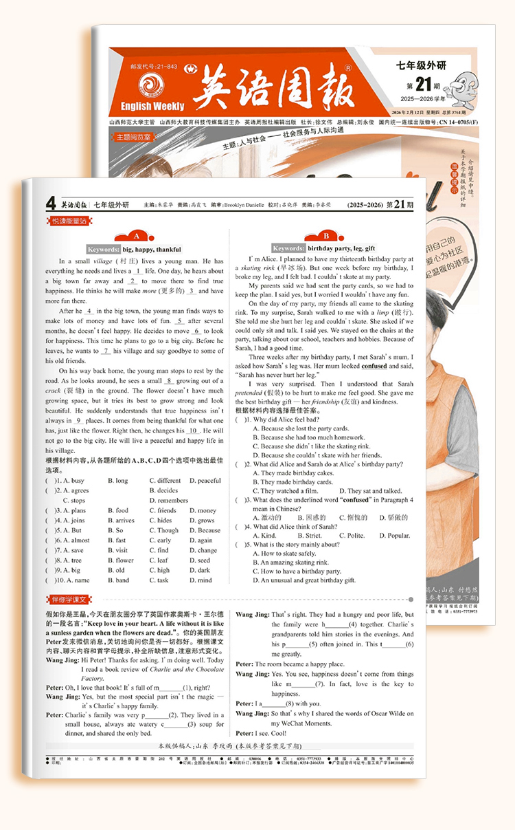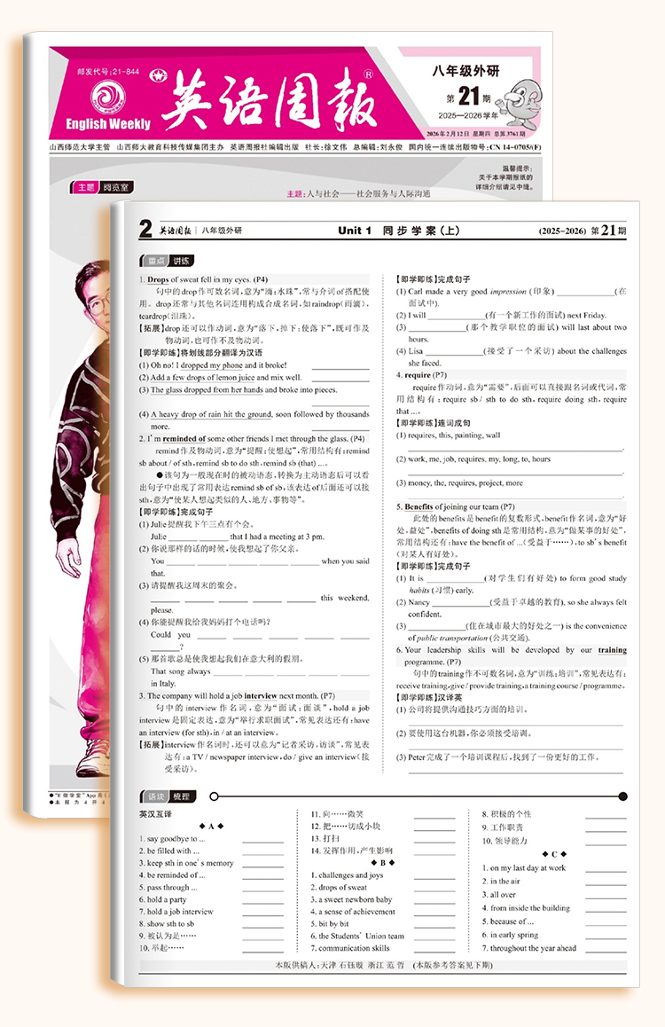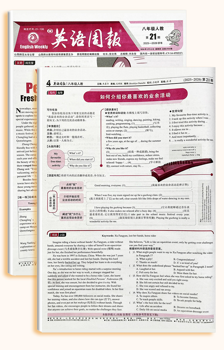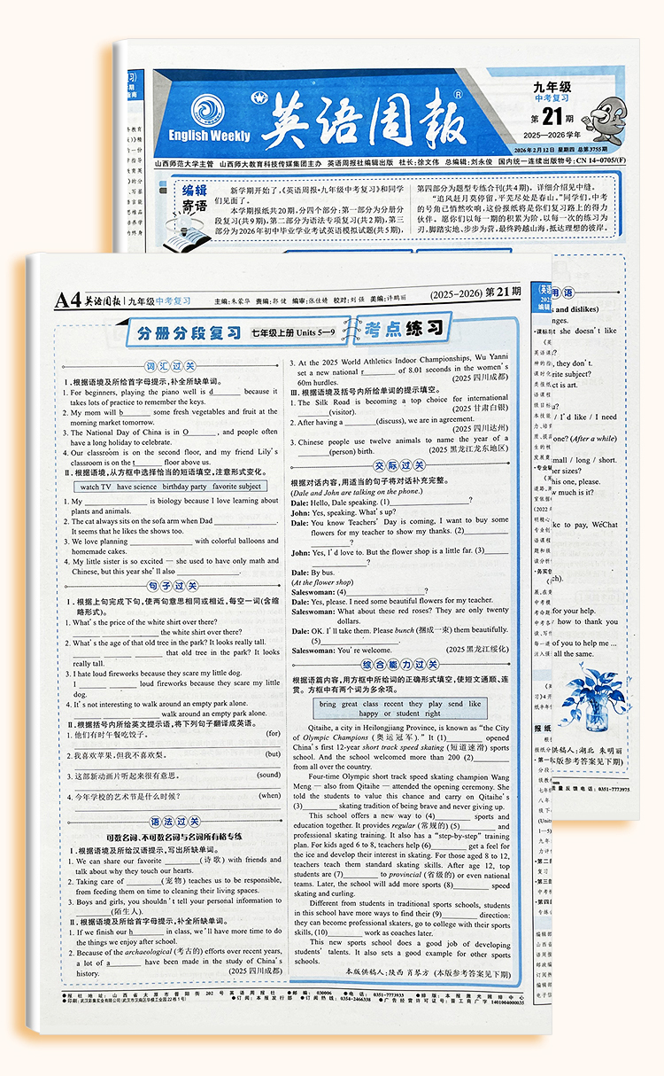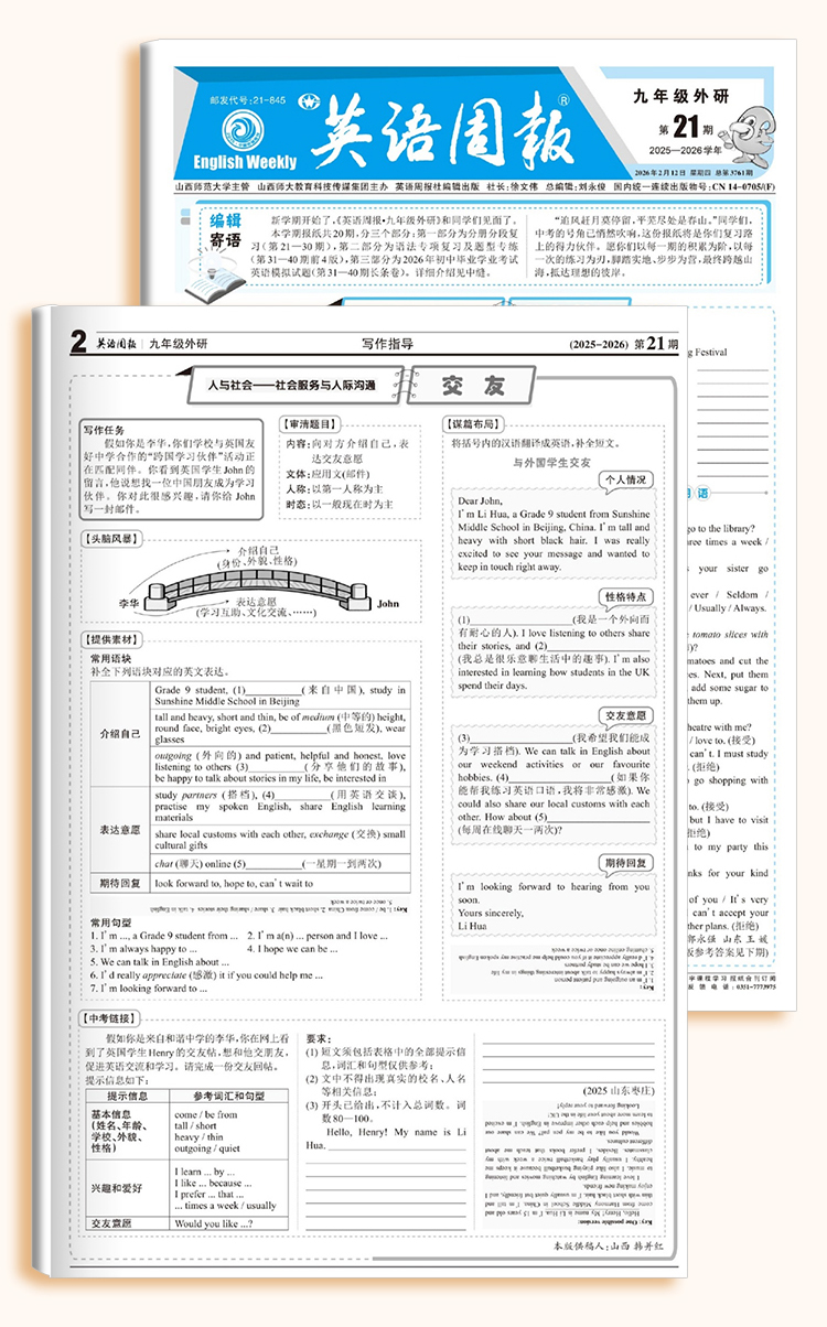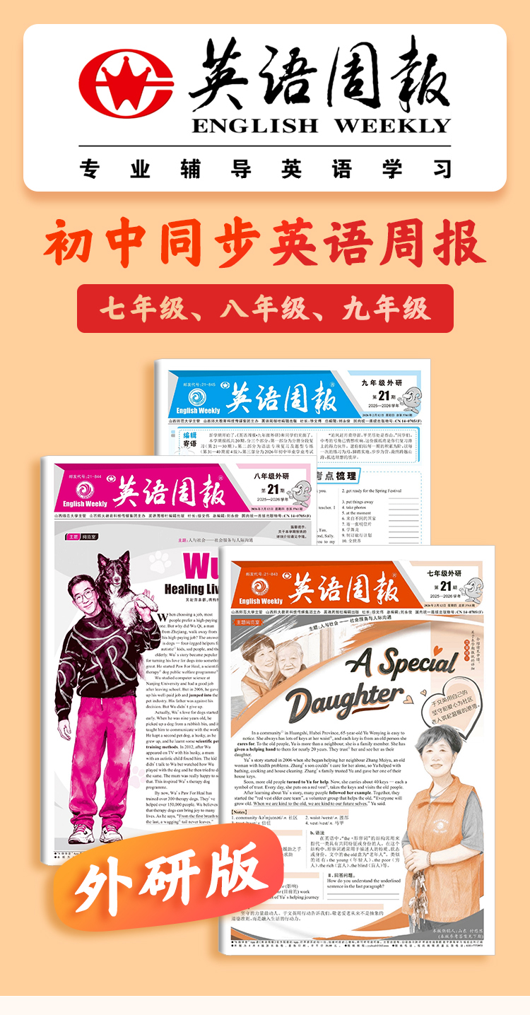 《英语周报》 七八九年级高一高二2026年春季学期 人教版外研版初高中英语练习