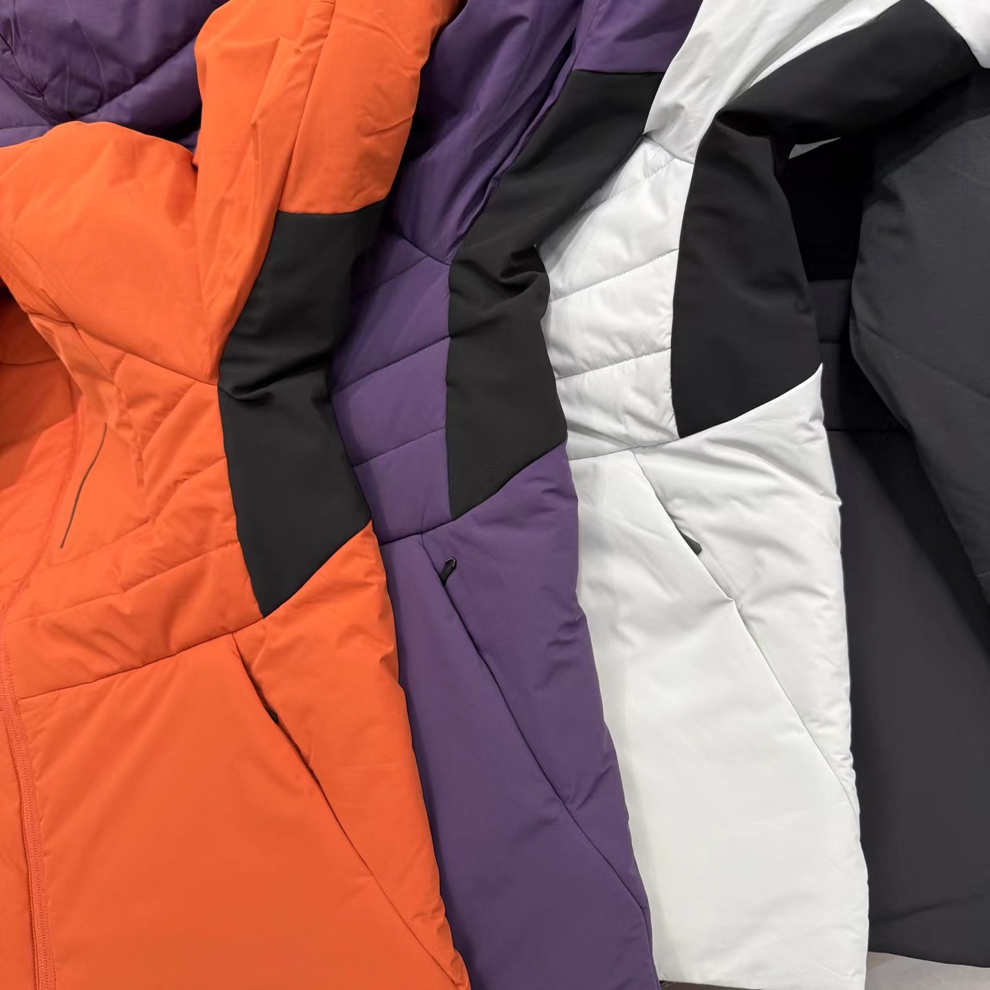 功能性3防面料 落肩排骨棉设计 ,胸口压胶拉链,挺阔有型 不软塌 不起皱 超厚实 一件过冬 整理剪裁压线既有设计特点 连帽可调节能够紧锁头部热量 ,两侧拉链口袋 简约款式 大方百搭 ,腋下黑色拼接撞色有设计感年轻活力