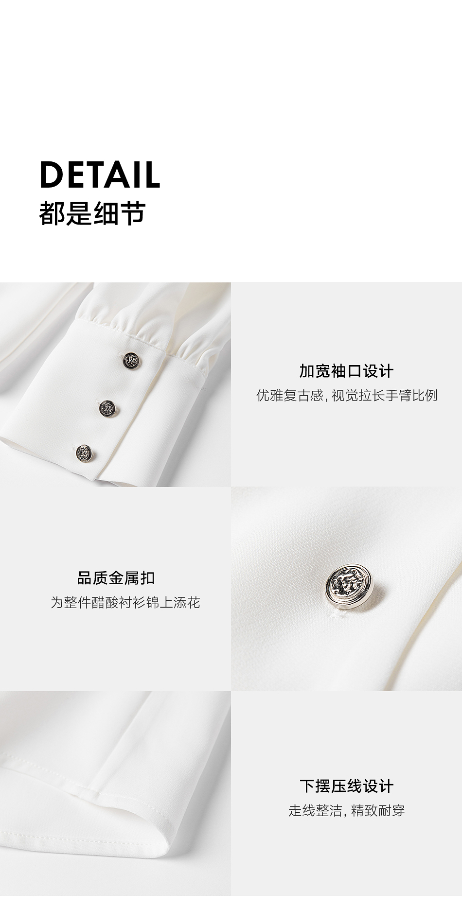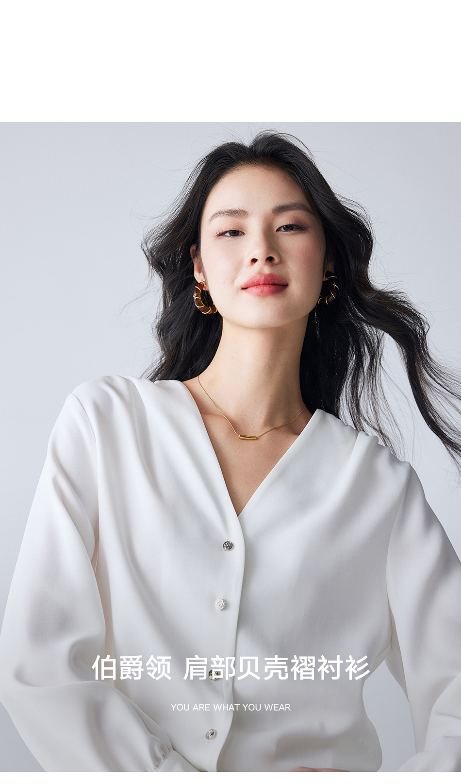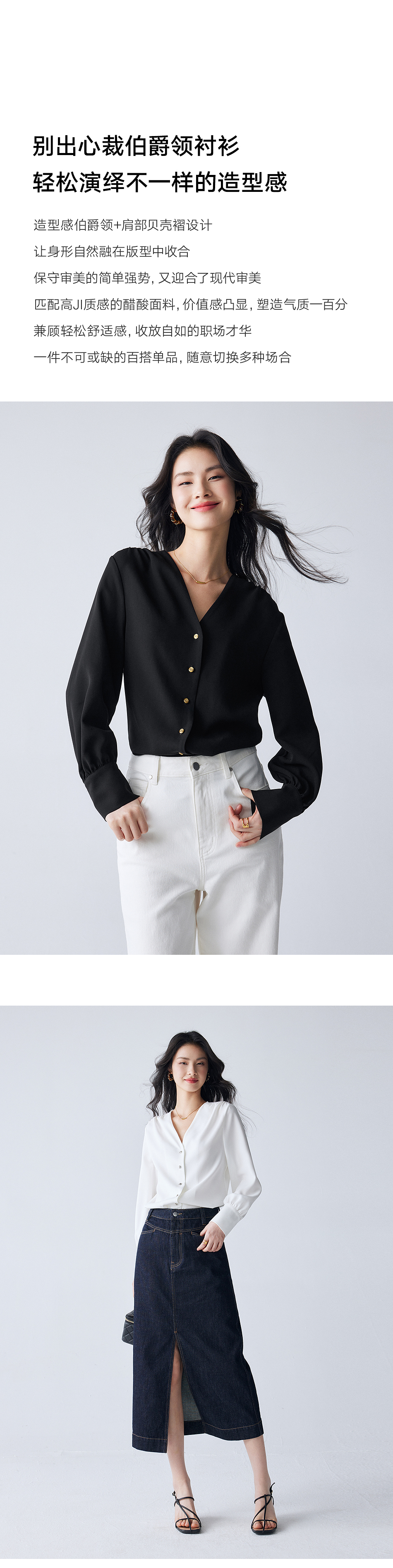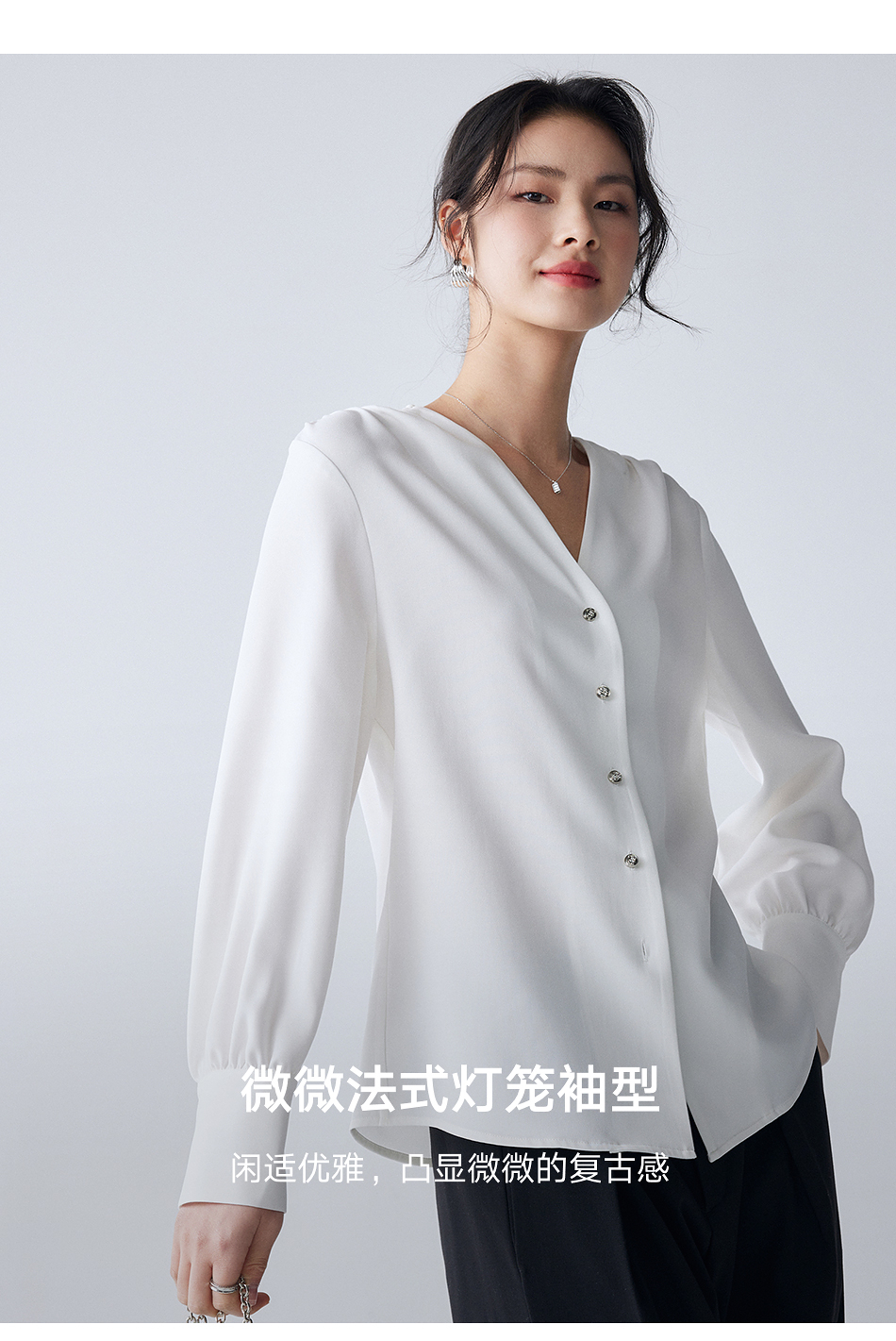 棉仓352604004伯爵领肩部贝壳褶醋酸衬衫女设计感春秋气质宽松灯笼袖衬衣