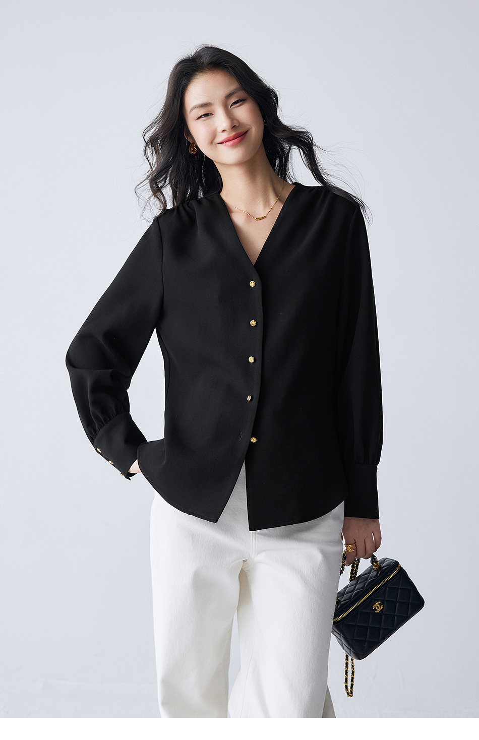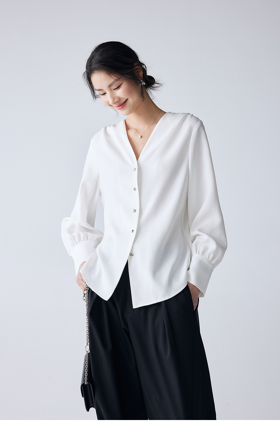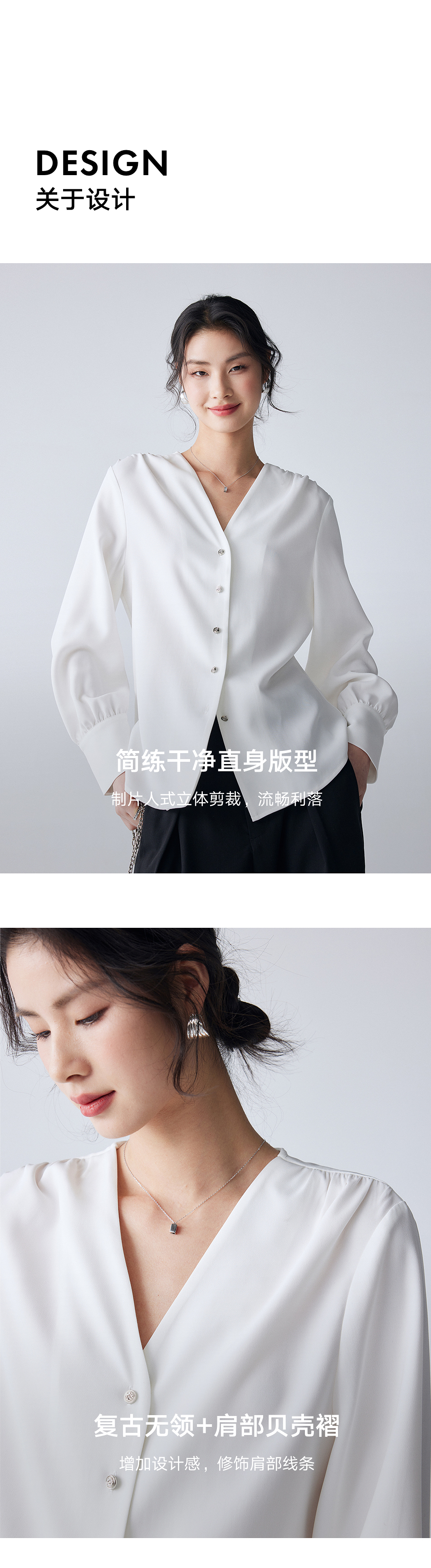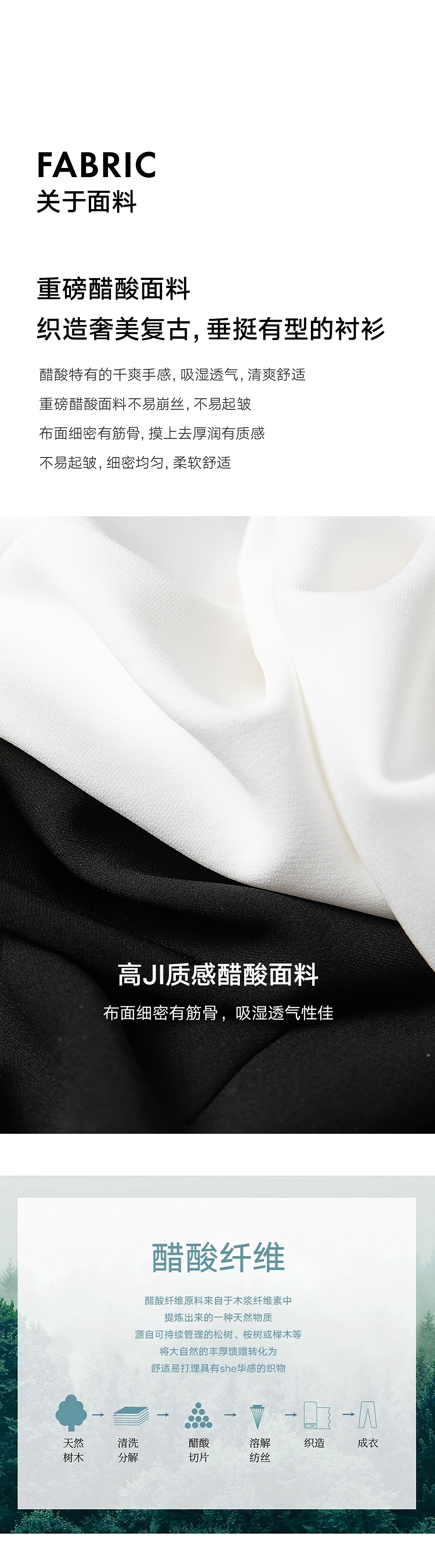 棉仓352604004伯爵领肩部贝壳褶醋酸衬衫女设计感春秋气质宽松灯笼袖衬衣