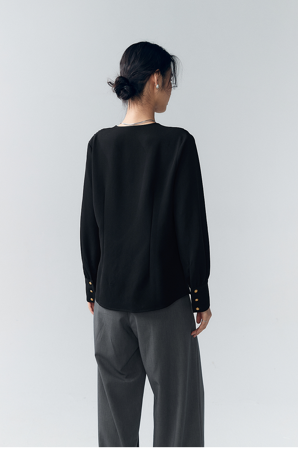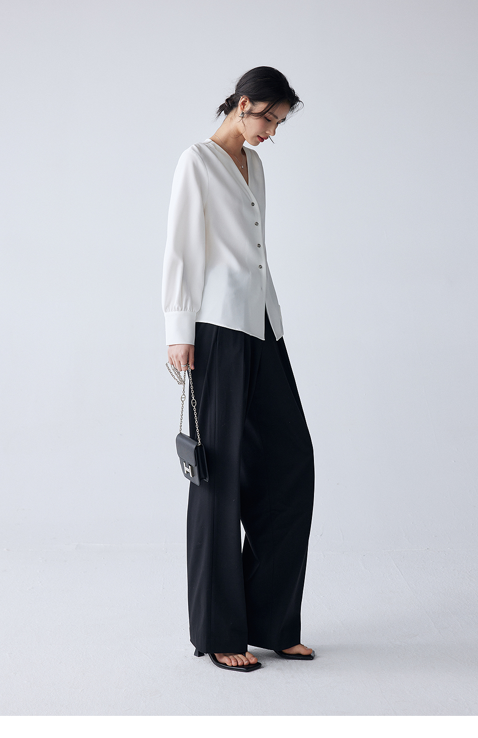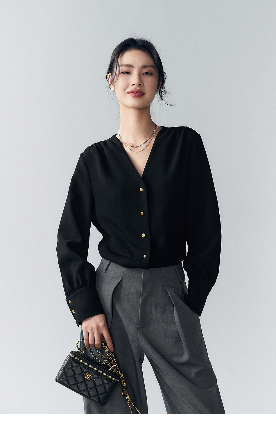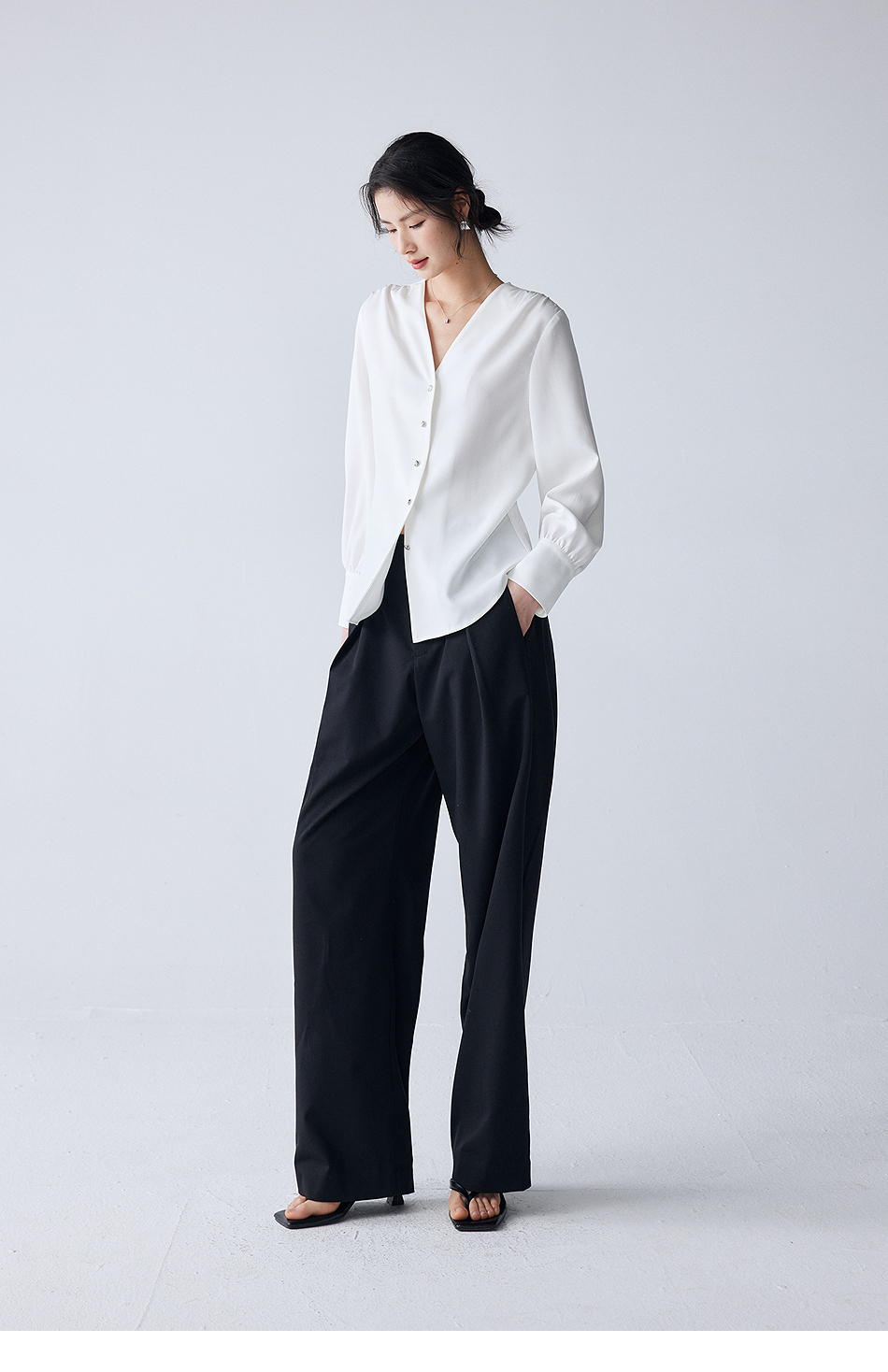 棉仓352604004伯爵领肩部贝壳褶醋酸衬衫女设计感春秋气质宽松灯笼袖衬衣