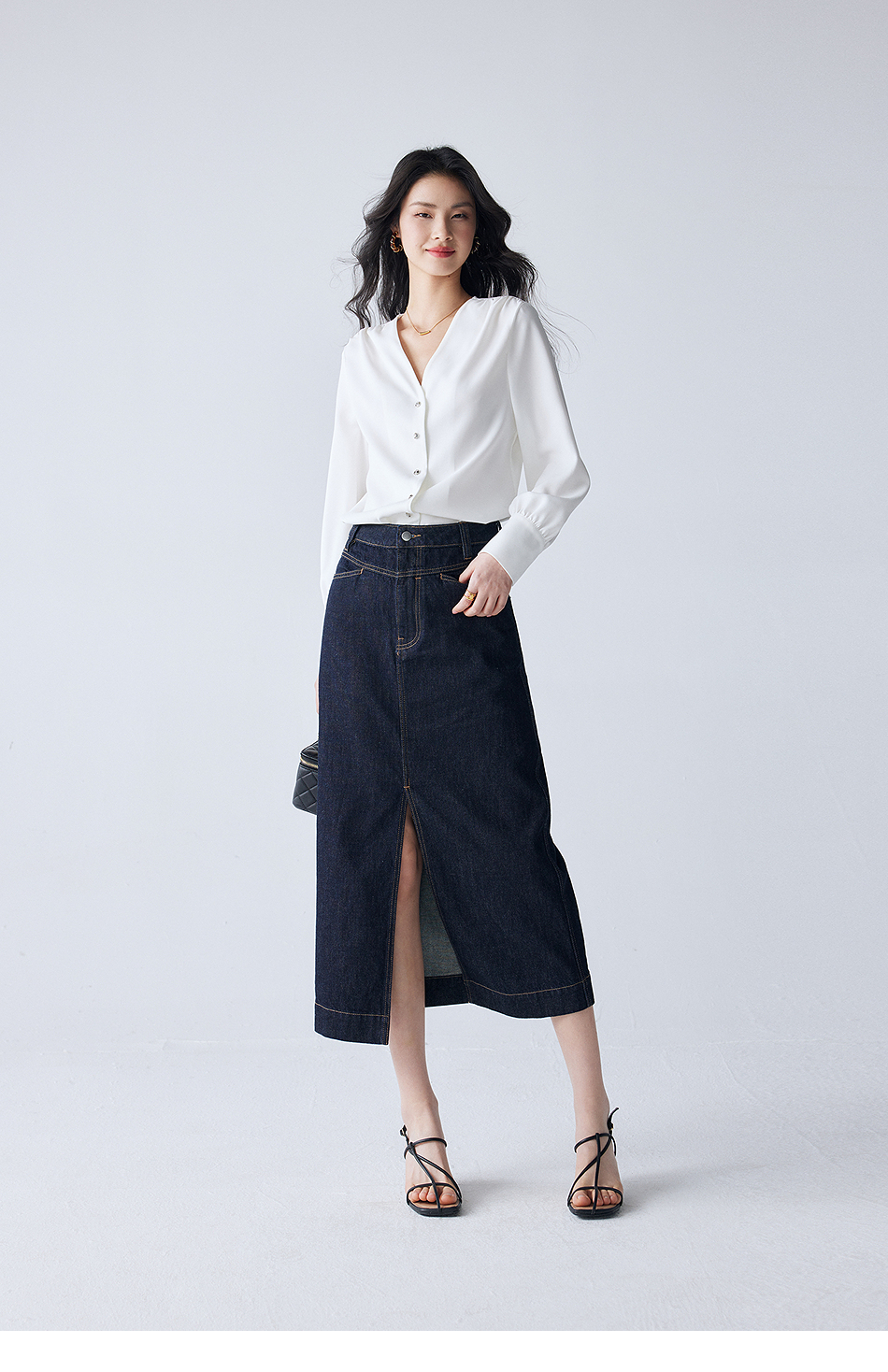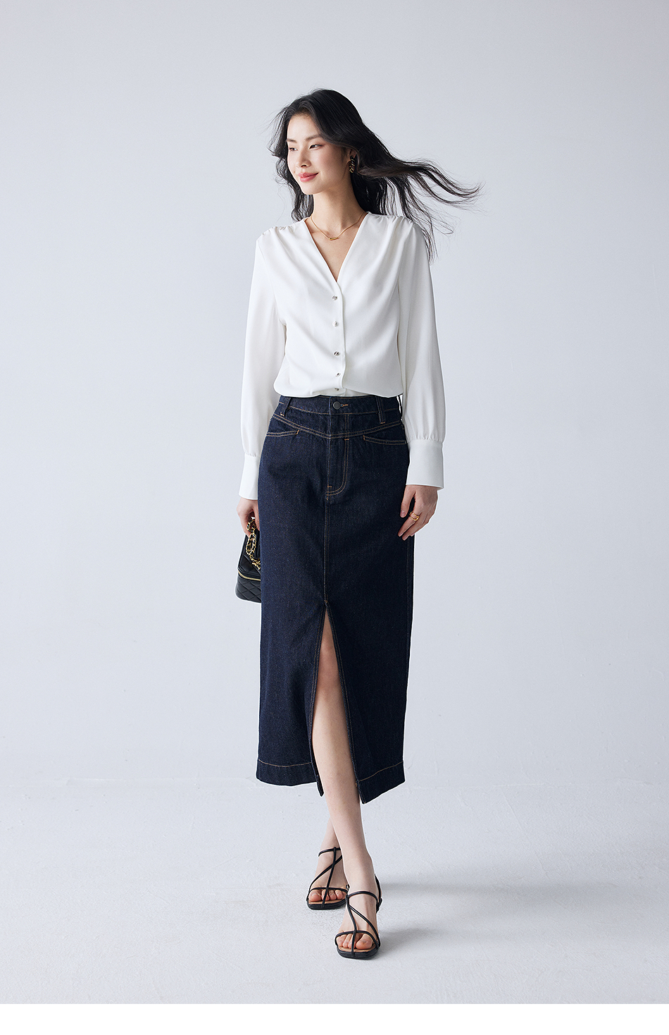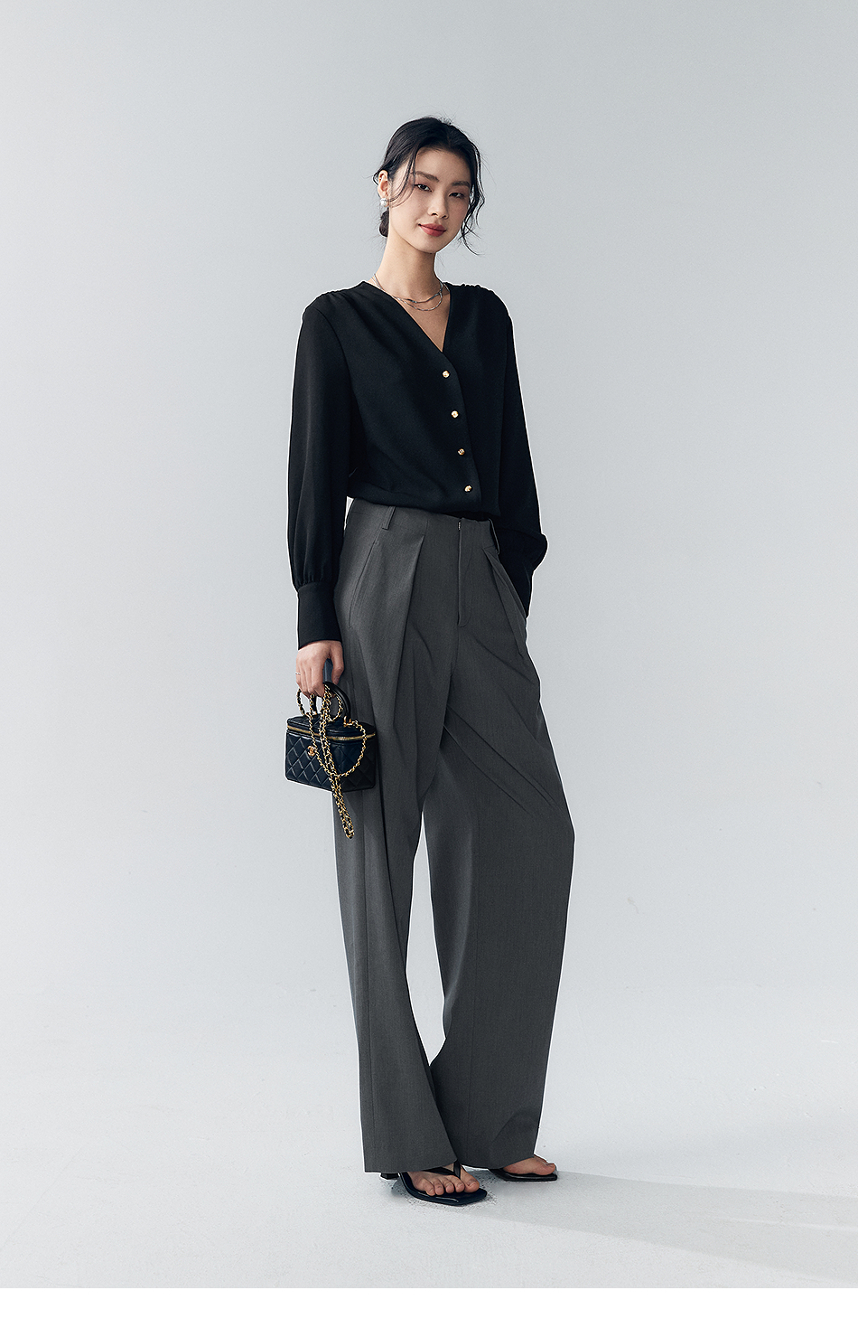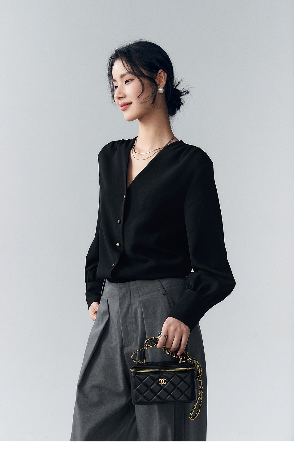 棉仓352604004伯爵领肩部贝壳褶醋酸衬衫女设计感春秋气质宽松灯笼袖衬衣