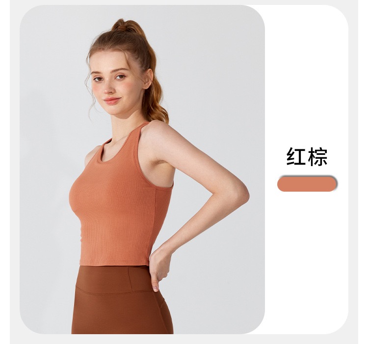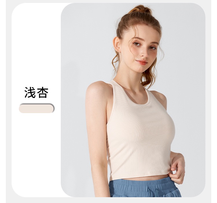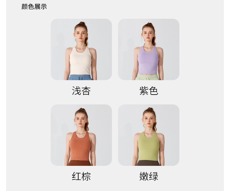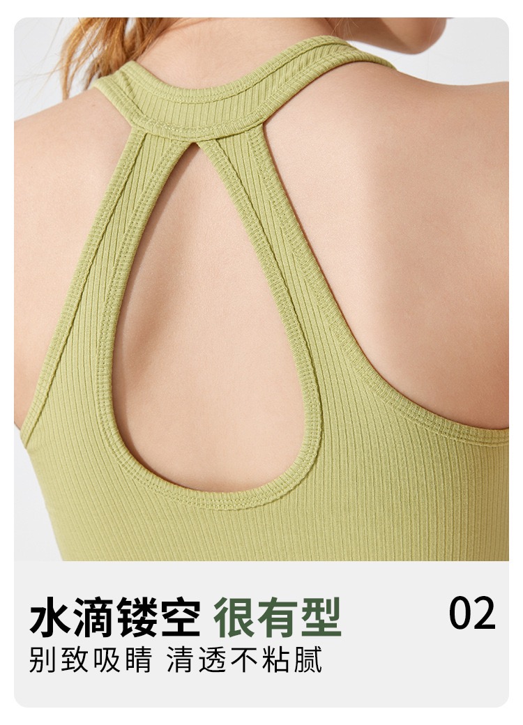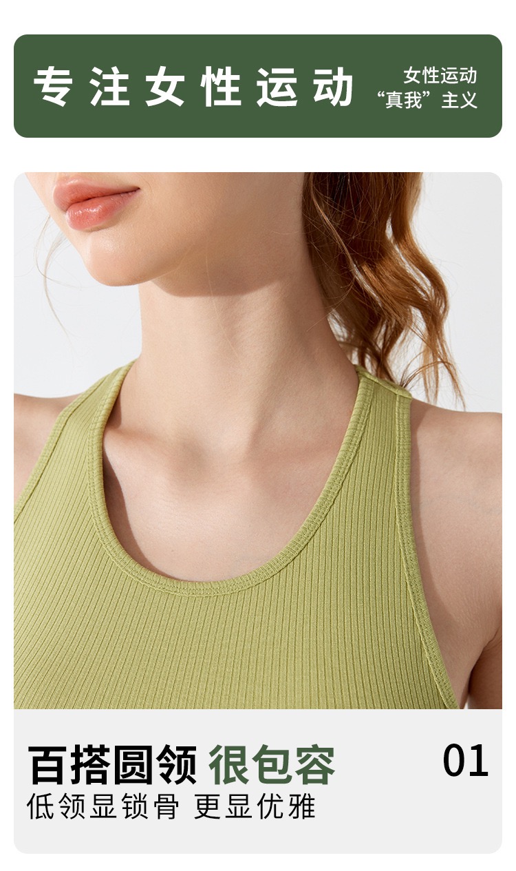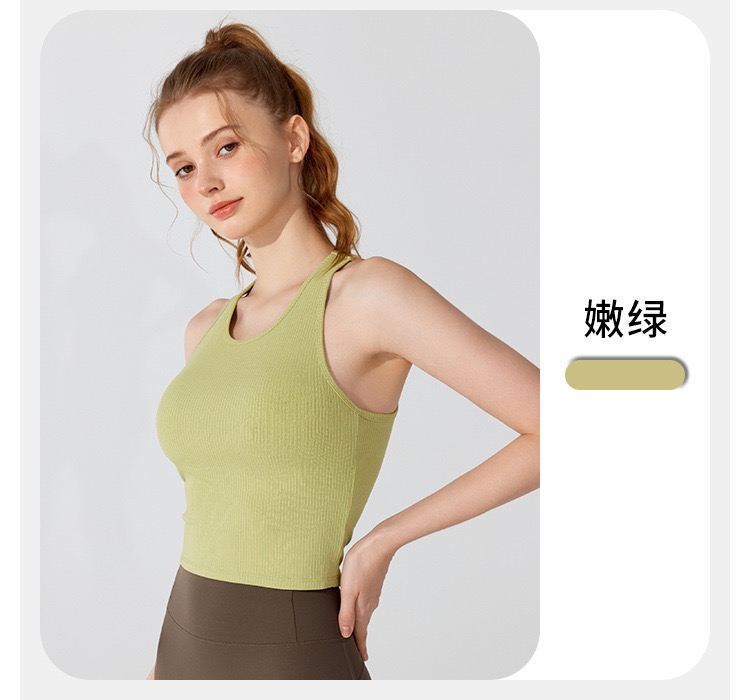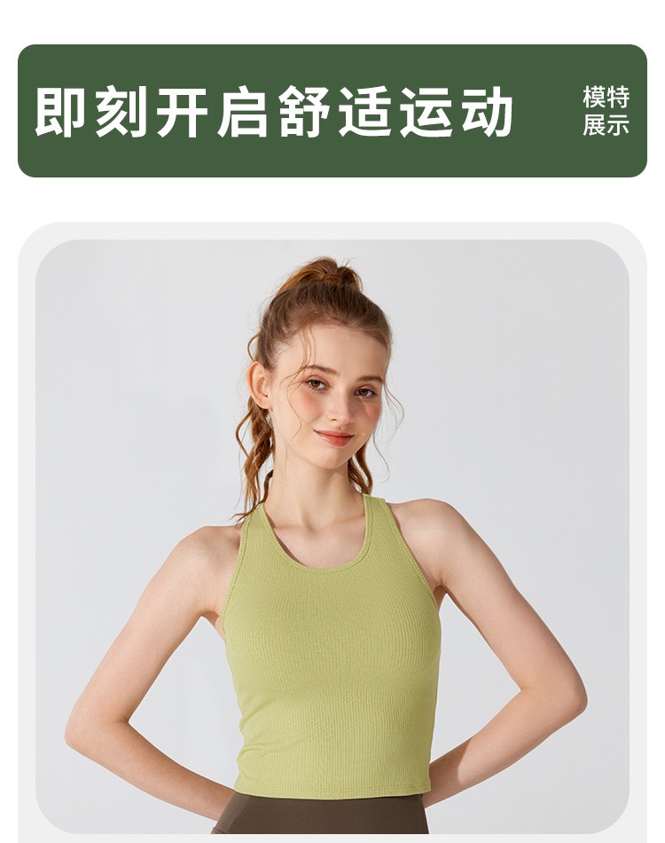 【新款】法式罗纹高强度防震带胸垫不跑杯运动内衣休闲健身瑜伽服背心 JLYW292