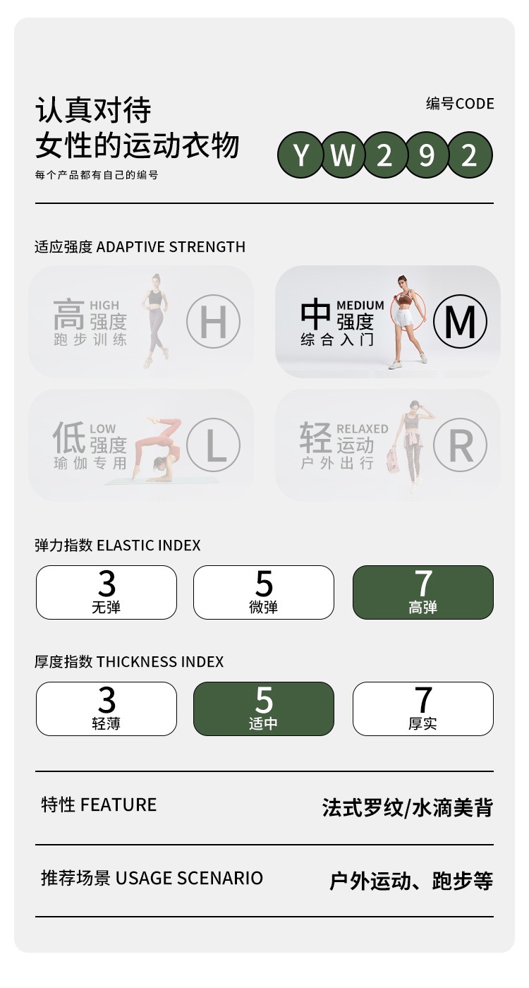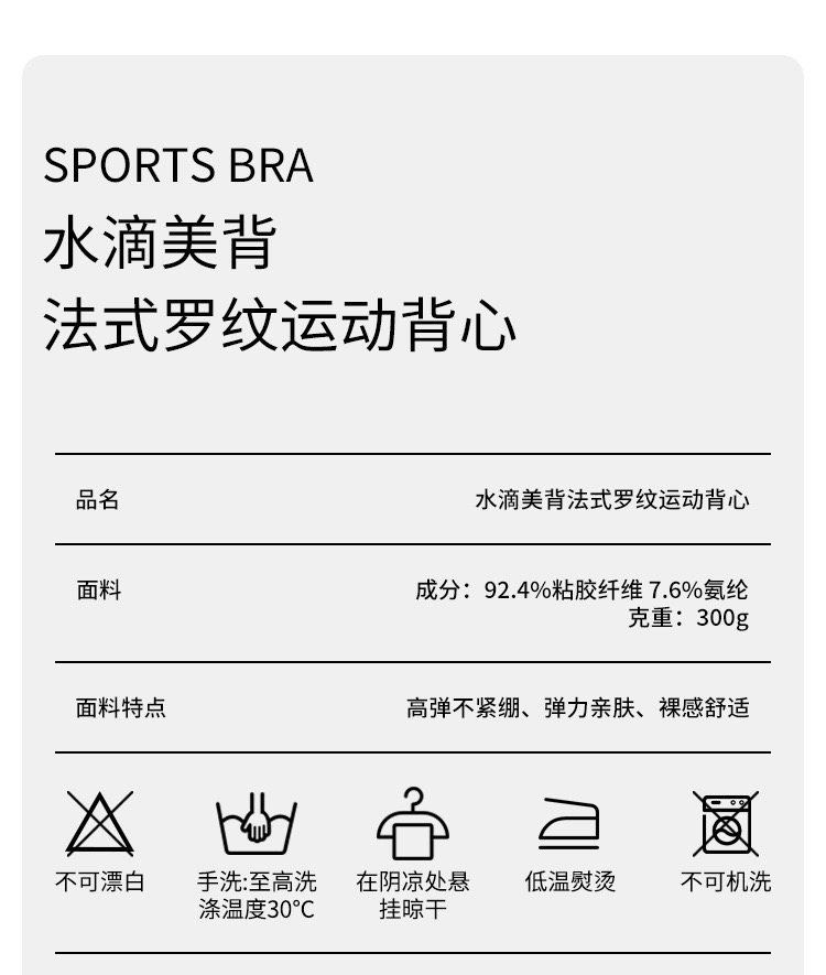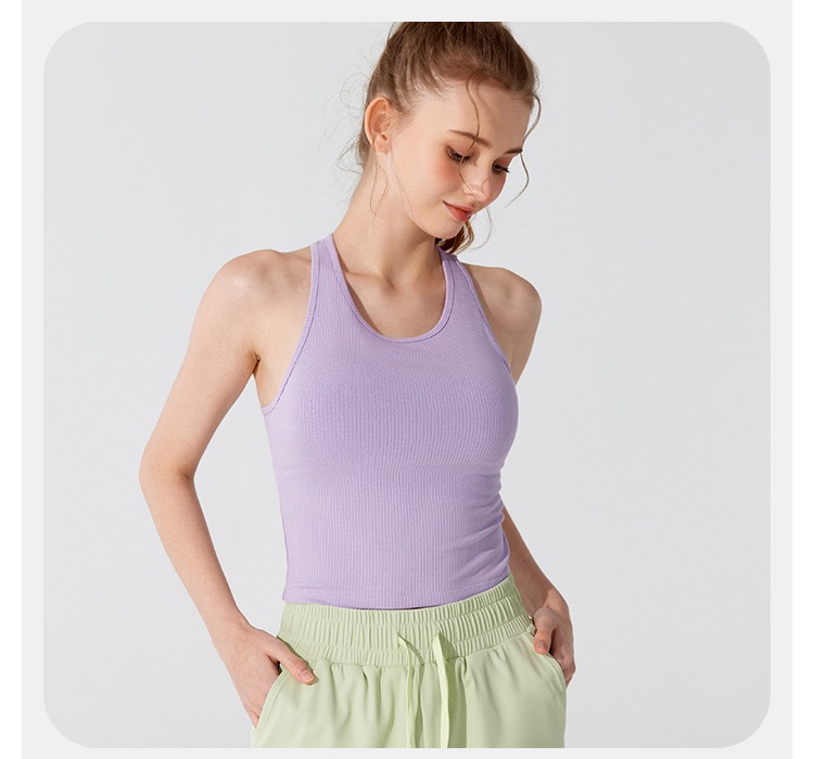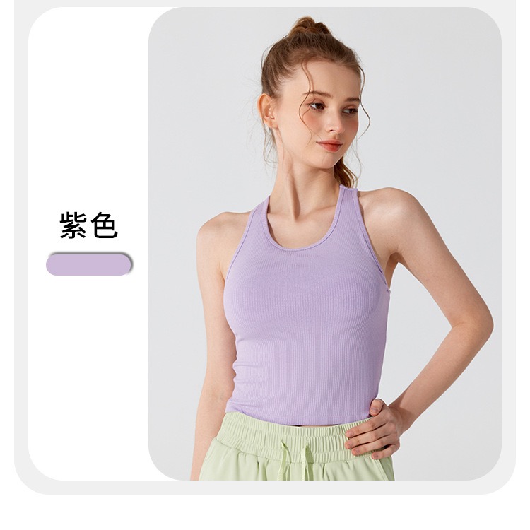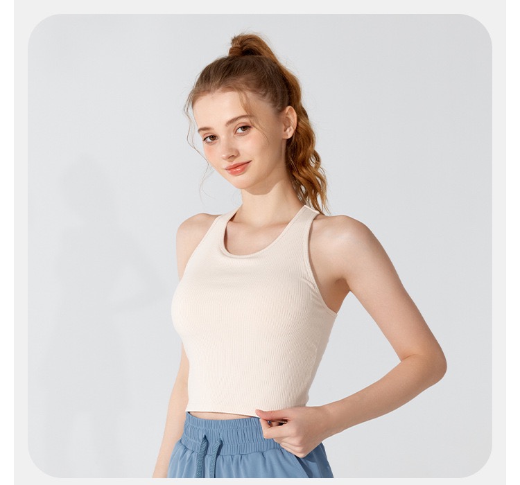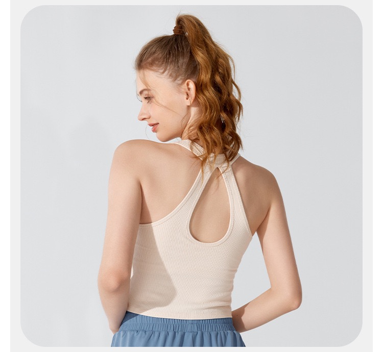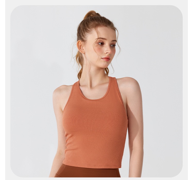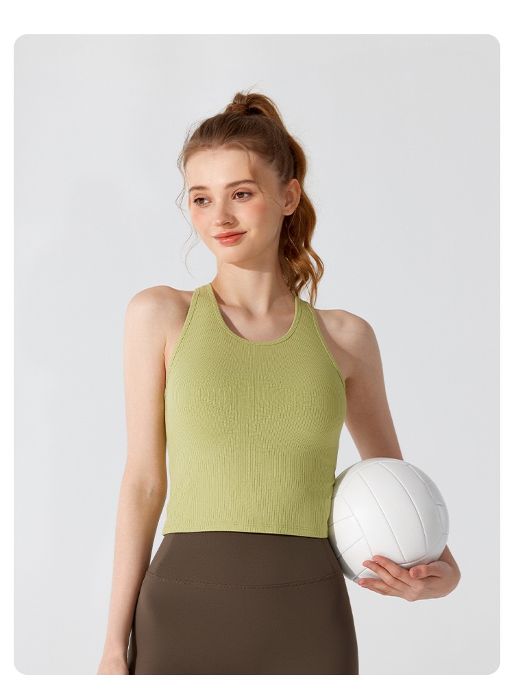 【新款】法式罗纹高强度防震带胸垫不跑杯运动内衣休闲健身瑜伽服背心 JLYW292