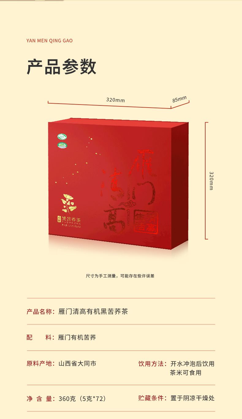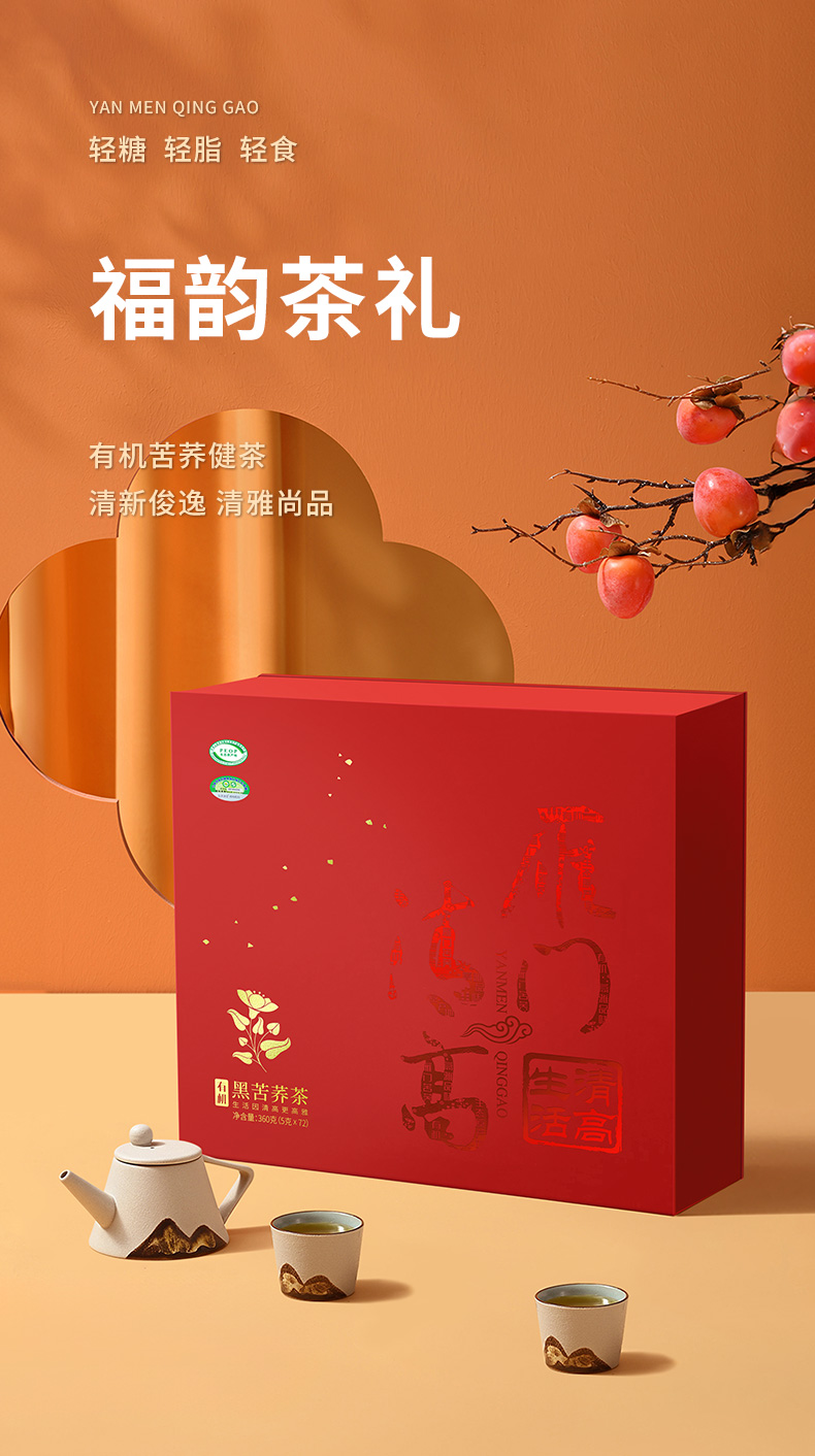 雁门清高有机黑苦荞茶叶喜庆节日送礼盒360g荞麦茶轻糖轻脂轻食茶