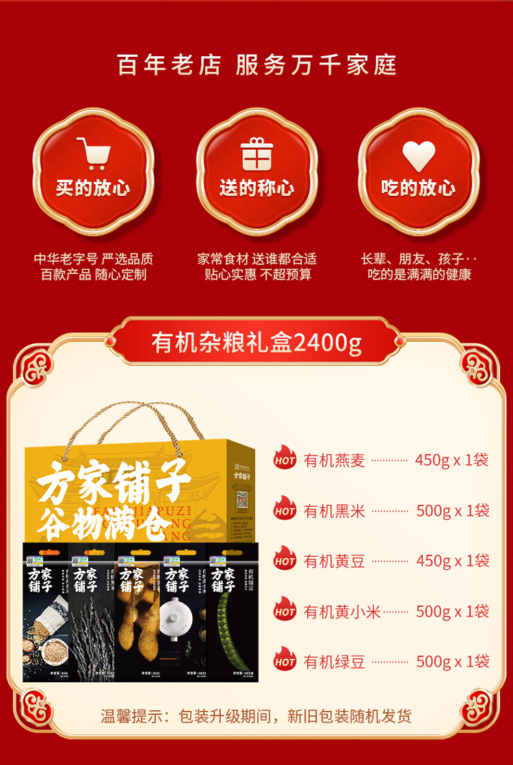 方家铺子 谷物满仓有机杂粮礼盒2400g/礼盒装