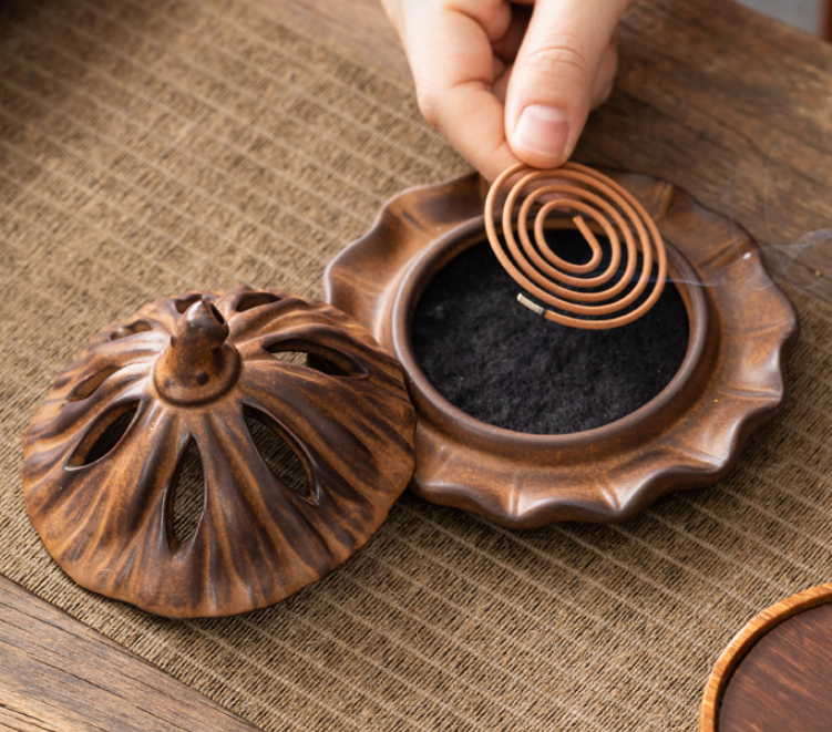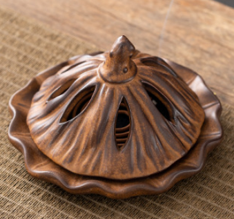 米马杂货 禅意复古香炉 陶瓷熏香容器 莲蓬摆件 水晶净化香炉~