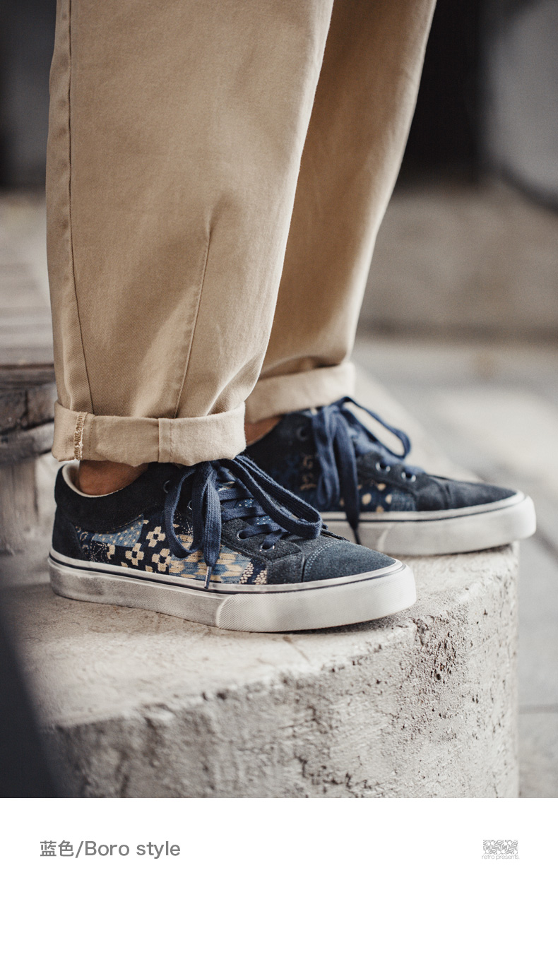 【马登男鞋】2025夏季新款复古日系高帮帆布鞋潮流印花休闲鞋子腰果花板鞋