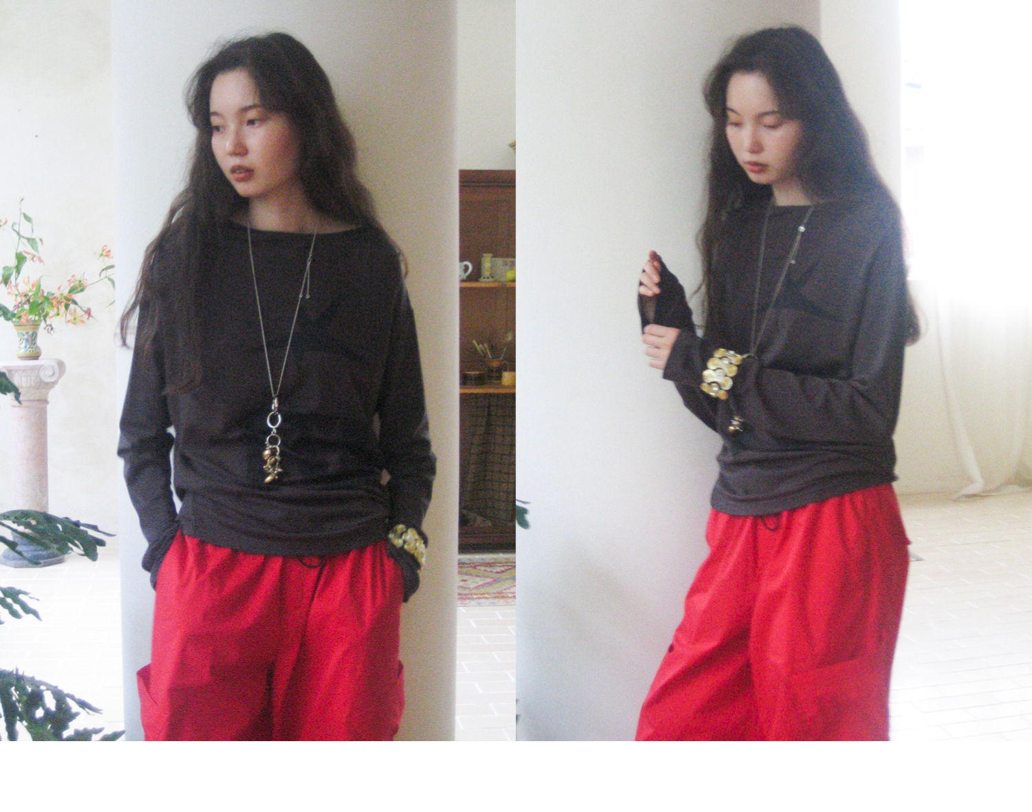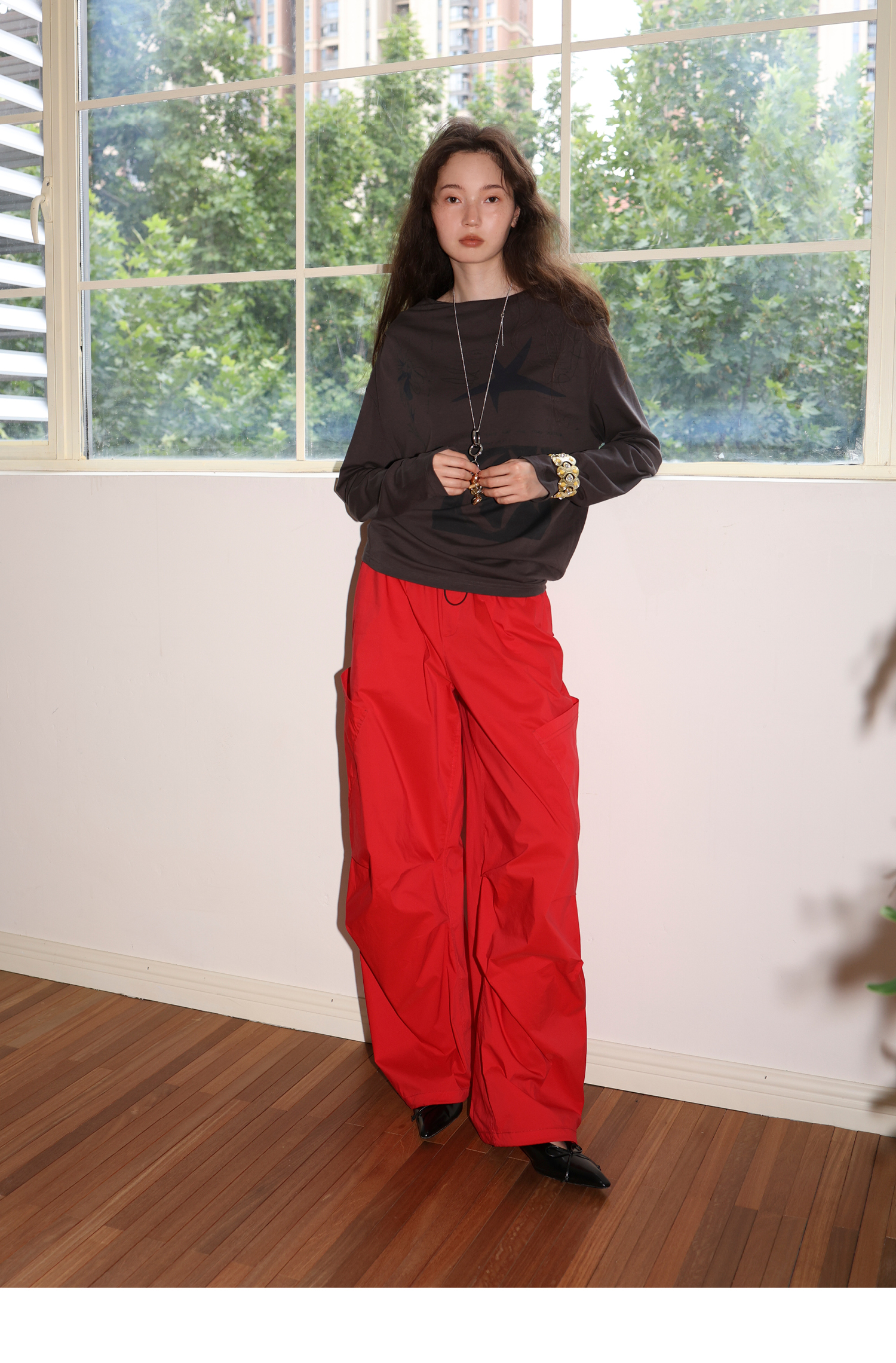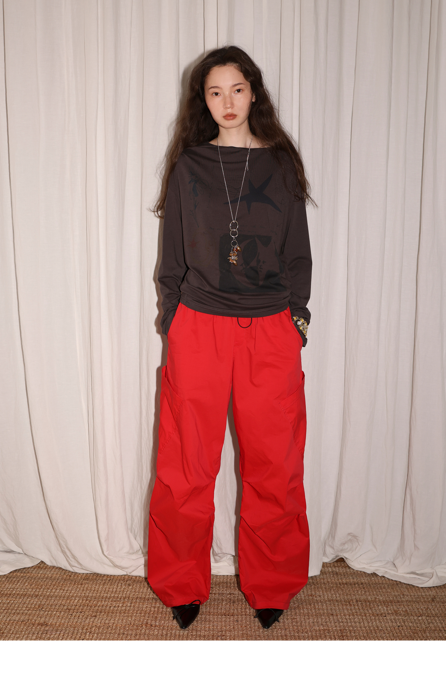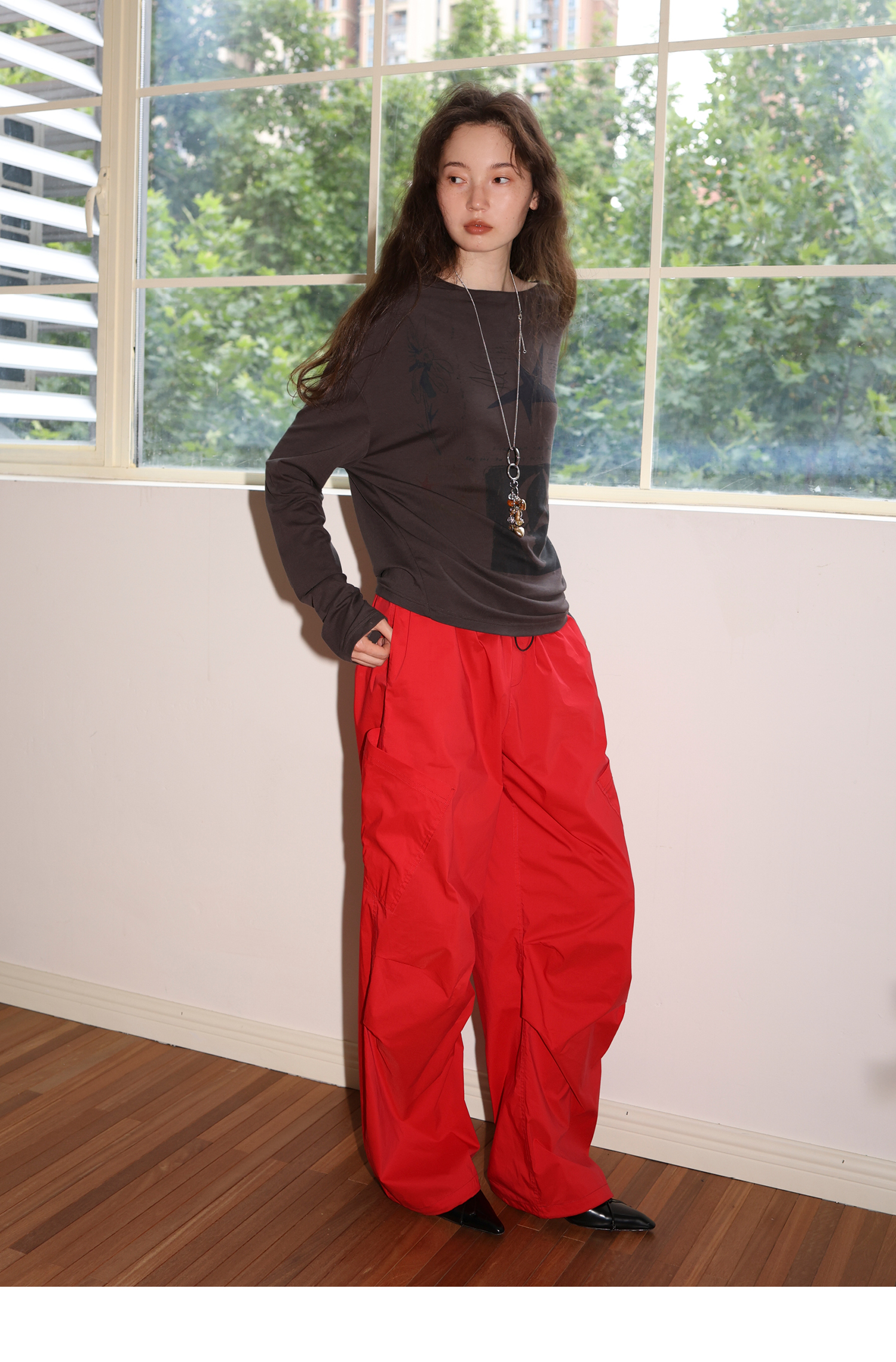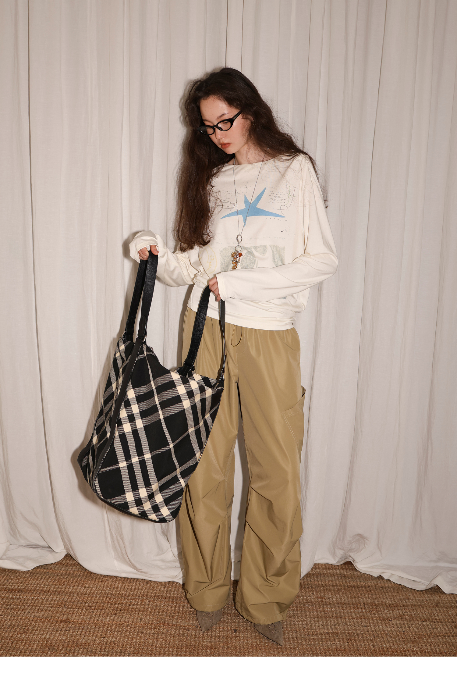 素舶 柔软精梳棉EcoCosy亲肤斜肩褶皱堆褶星辰手绘印花长袖T恤