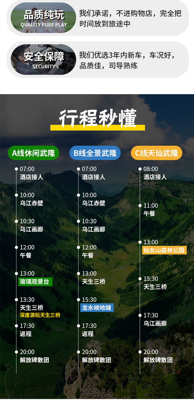 温馨提示乌江画廊是观景台不是坐游船,乌江画廊是赠品的景点,有时那段路会塌方去不了,旺季5-9坐随机安排,请谅解